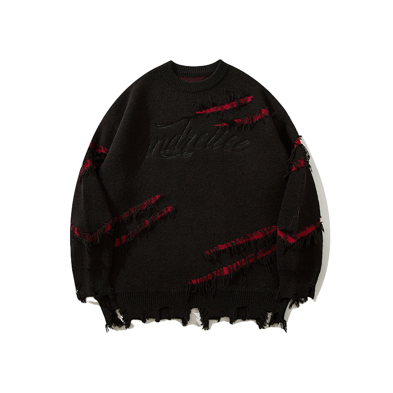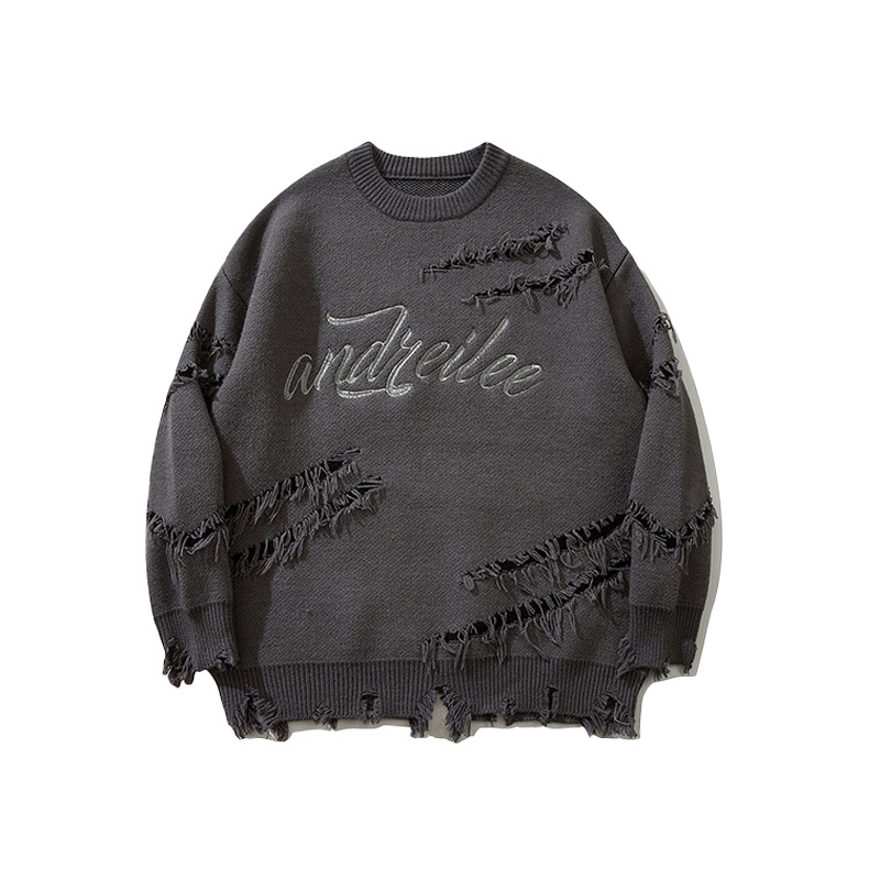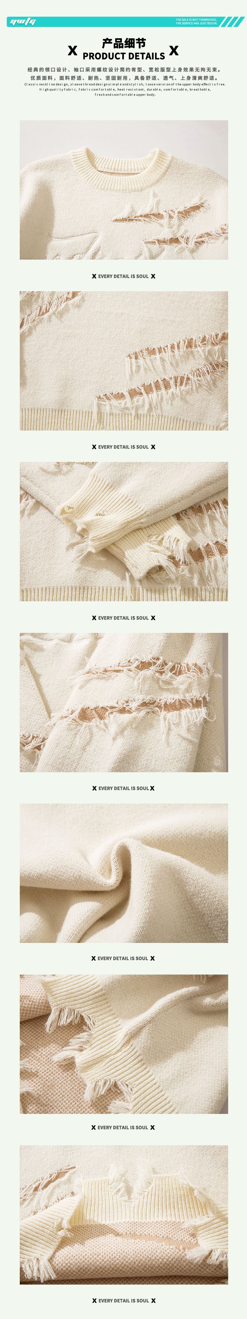 • 2024 Autumn Winter Mens Women Sweater Loose Versatile Couple Round Neck Long Sleeved Knitted Pullover Street Retro Hole Knitwear