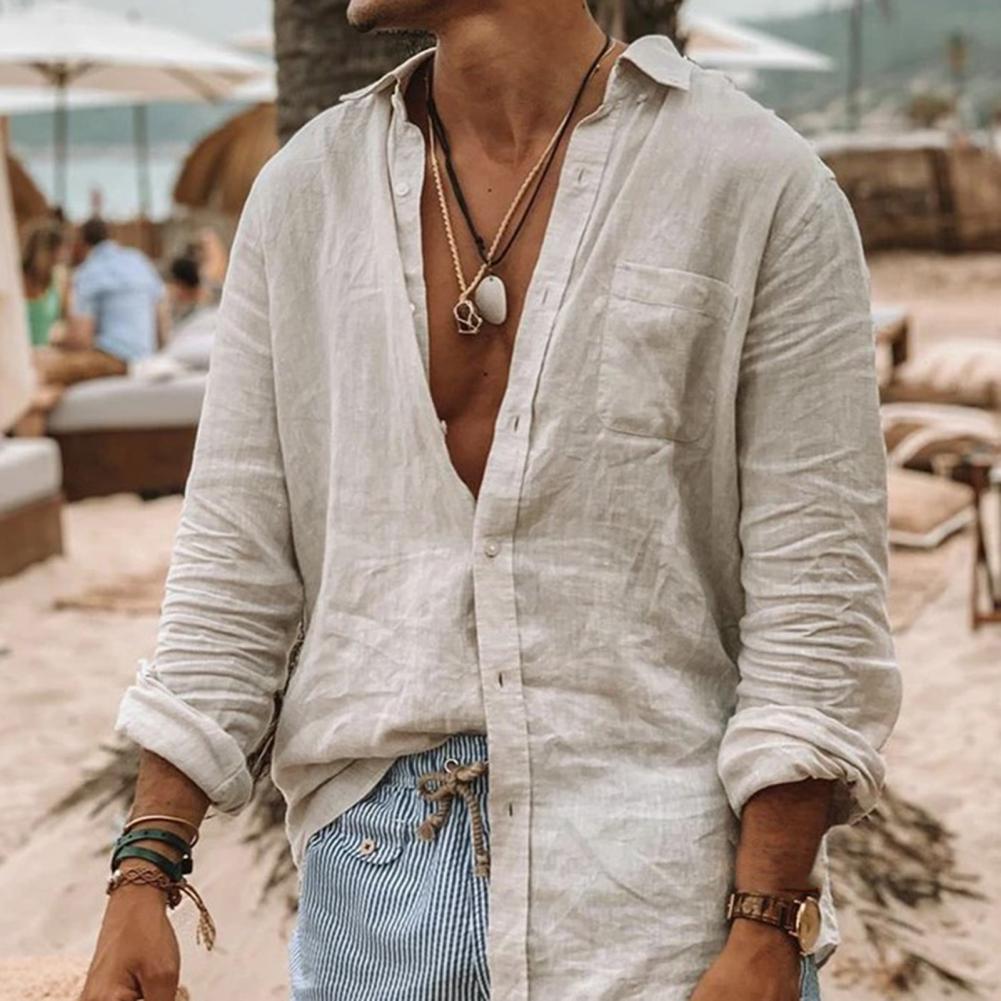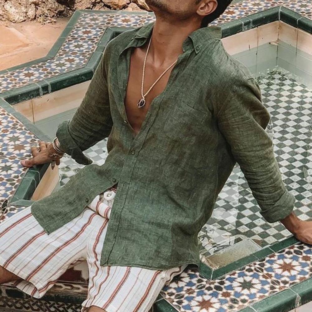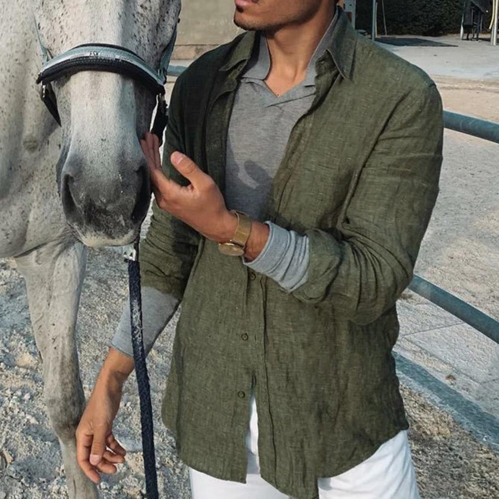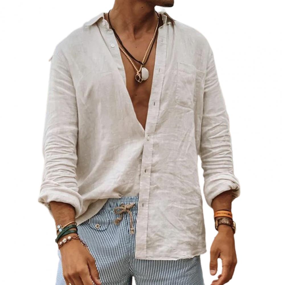 Shirt Long Sleeve Single Breasted Summer Casual Men Summer Loose Shirt for Daily Used