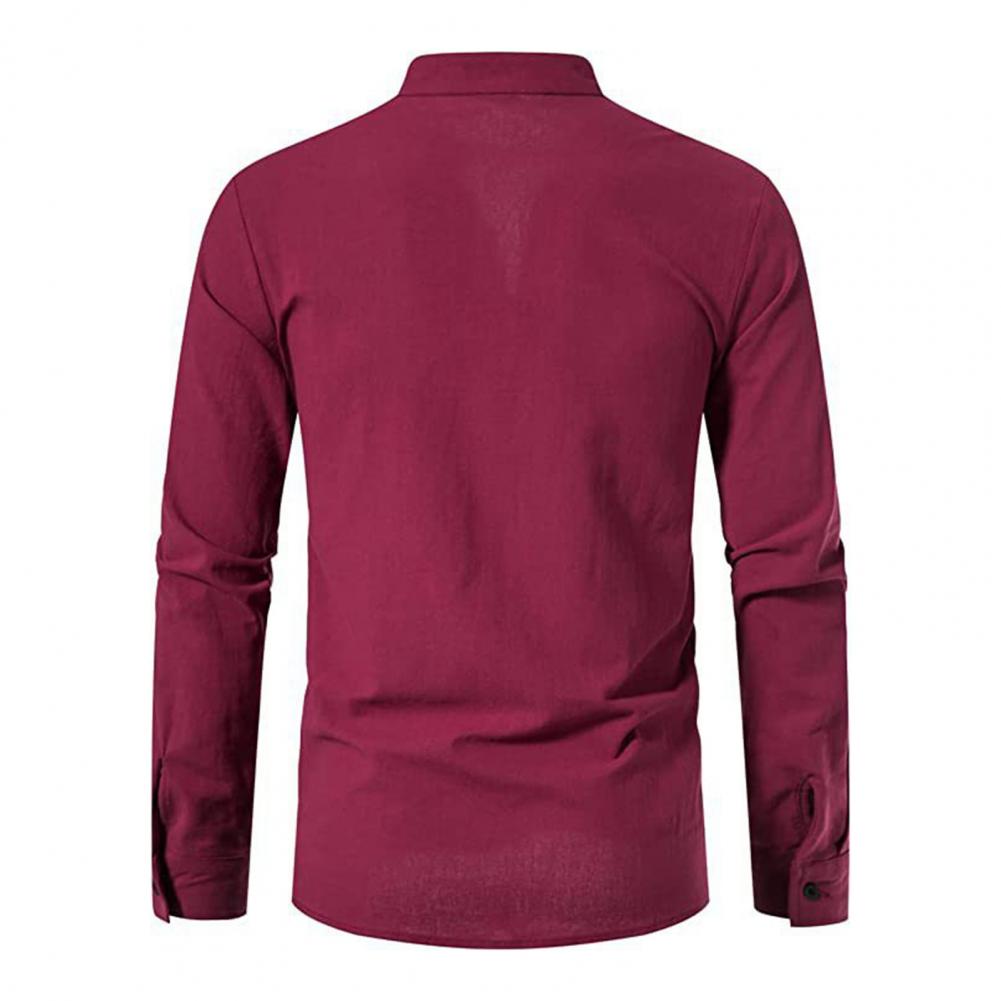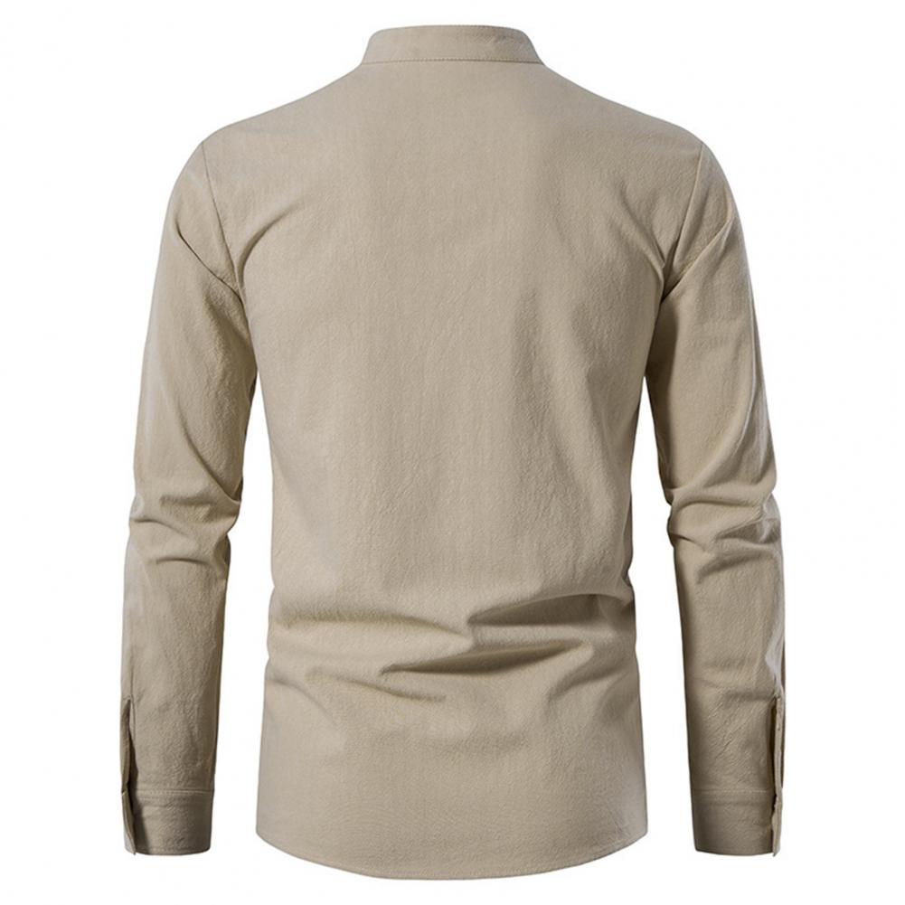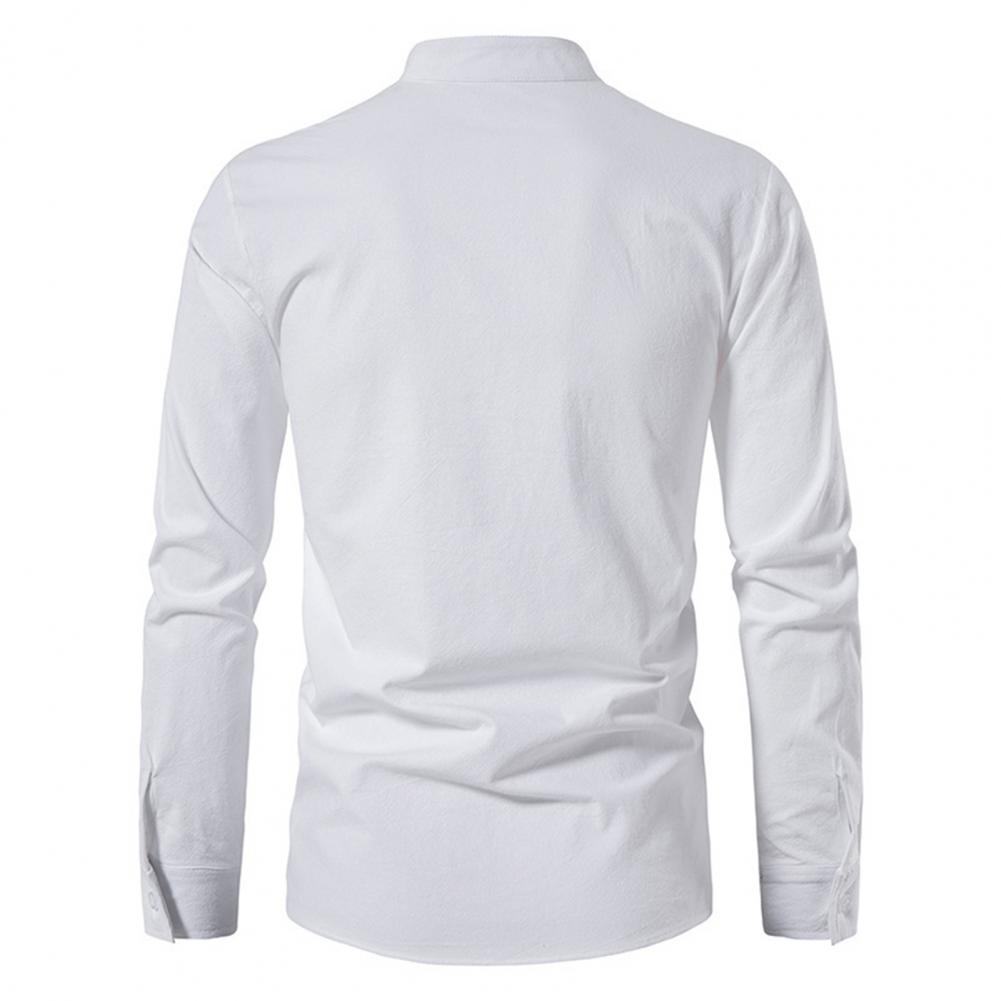 Dodaj odrobinę stylu retro do swojej garderoby dzięki tej męskiej koszuli z długim rękawem, bawełnianym i lnianym hipisowskim, plażowym kołnierzykiem ze stójką.Stójka i paski krzyżowe dodają niepowtarzalnego charakteru, a rękawy zapinane na guziki umożliwiają regulację długości rękawa w celu indywidualnego dopasowania.