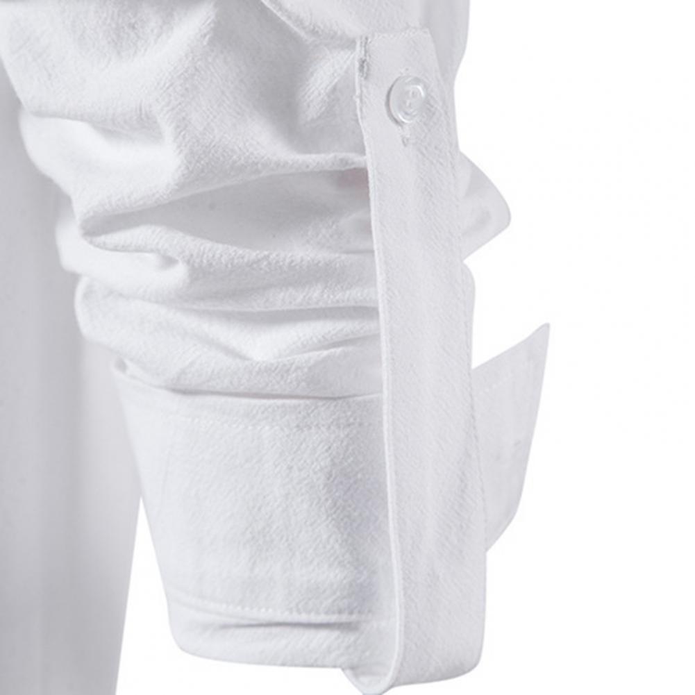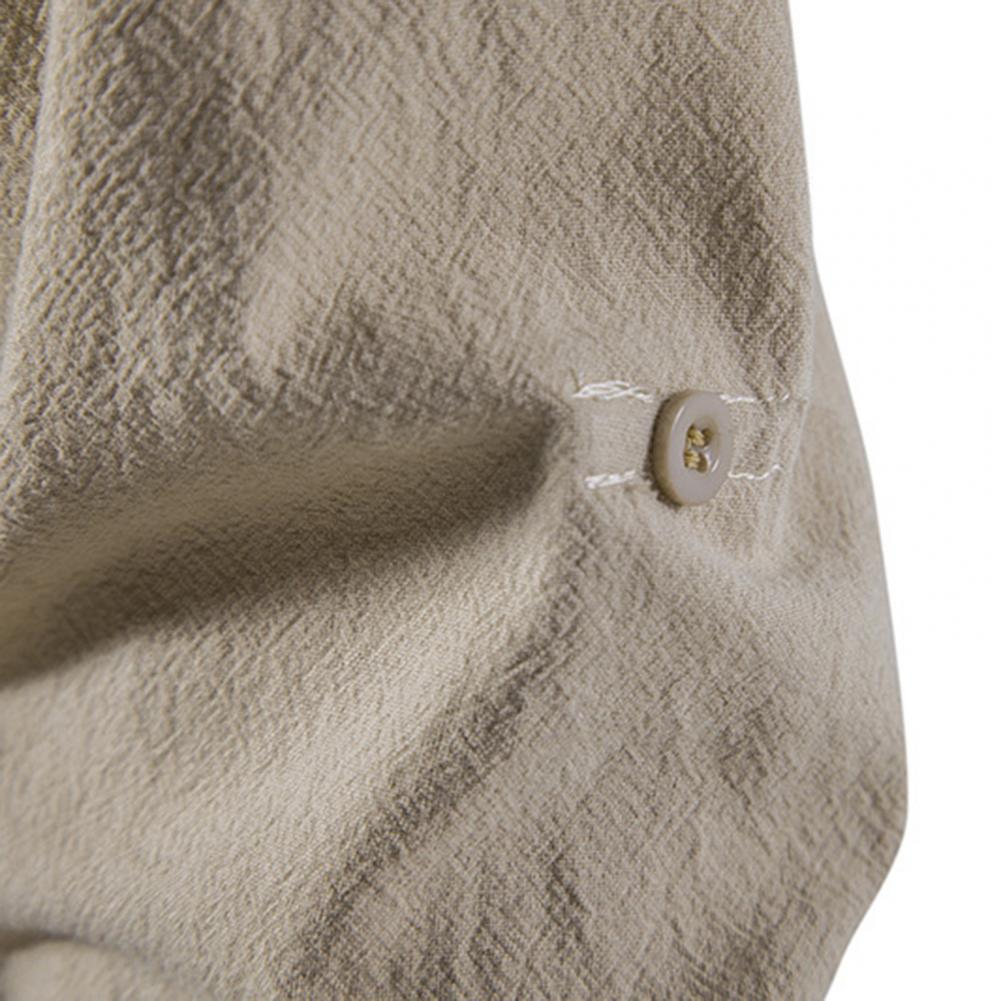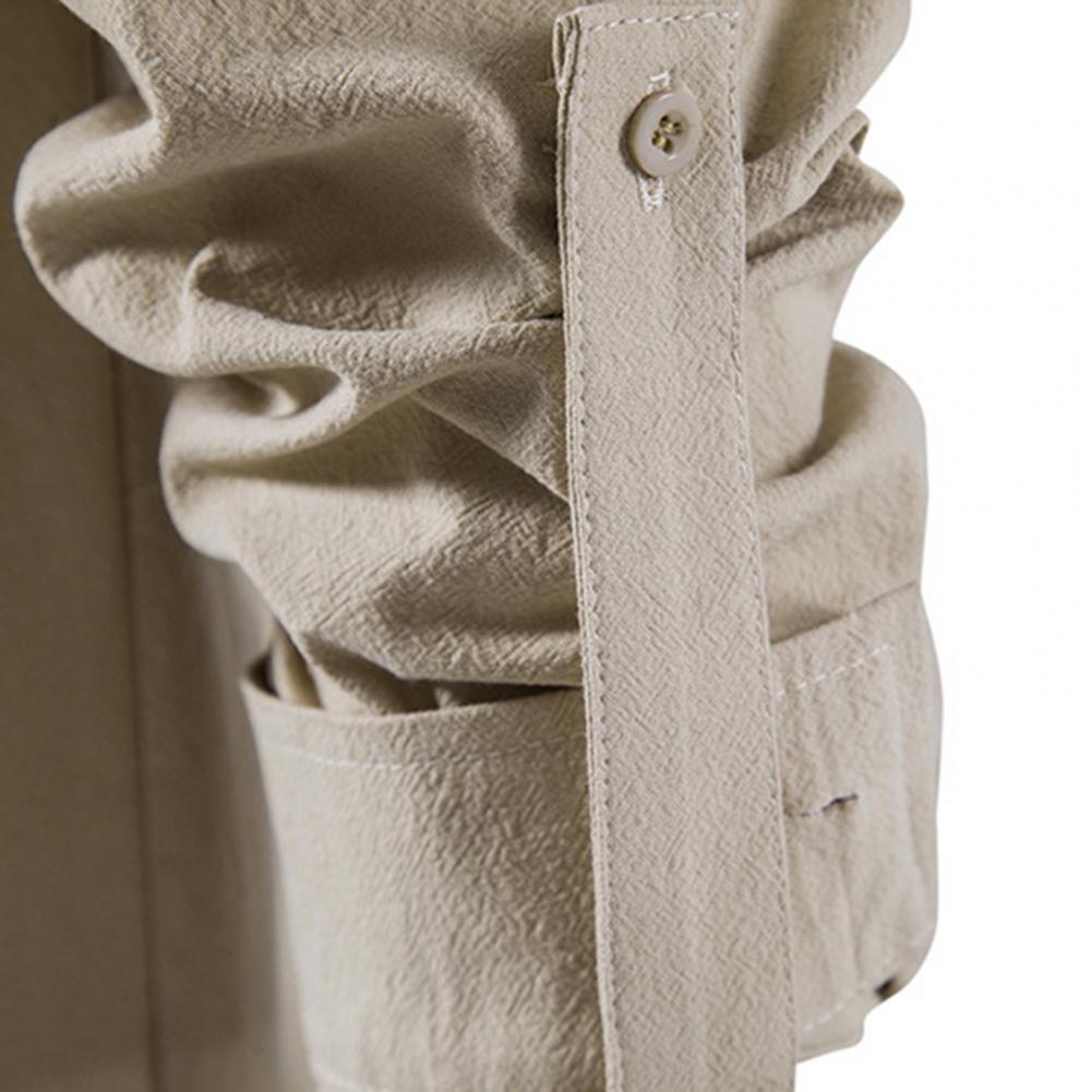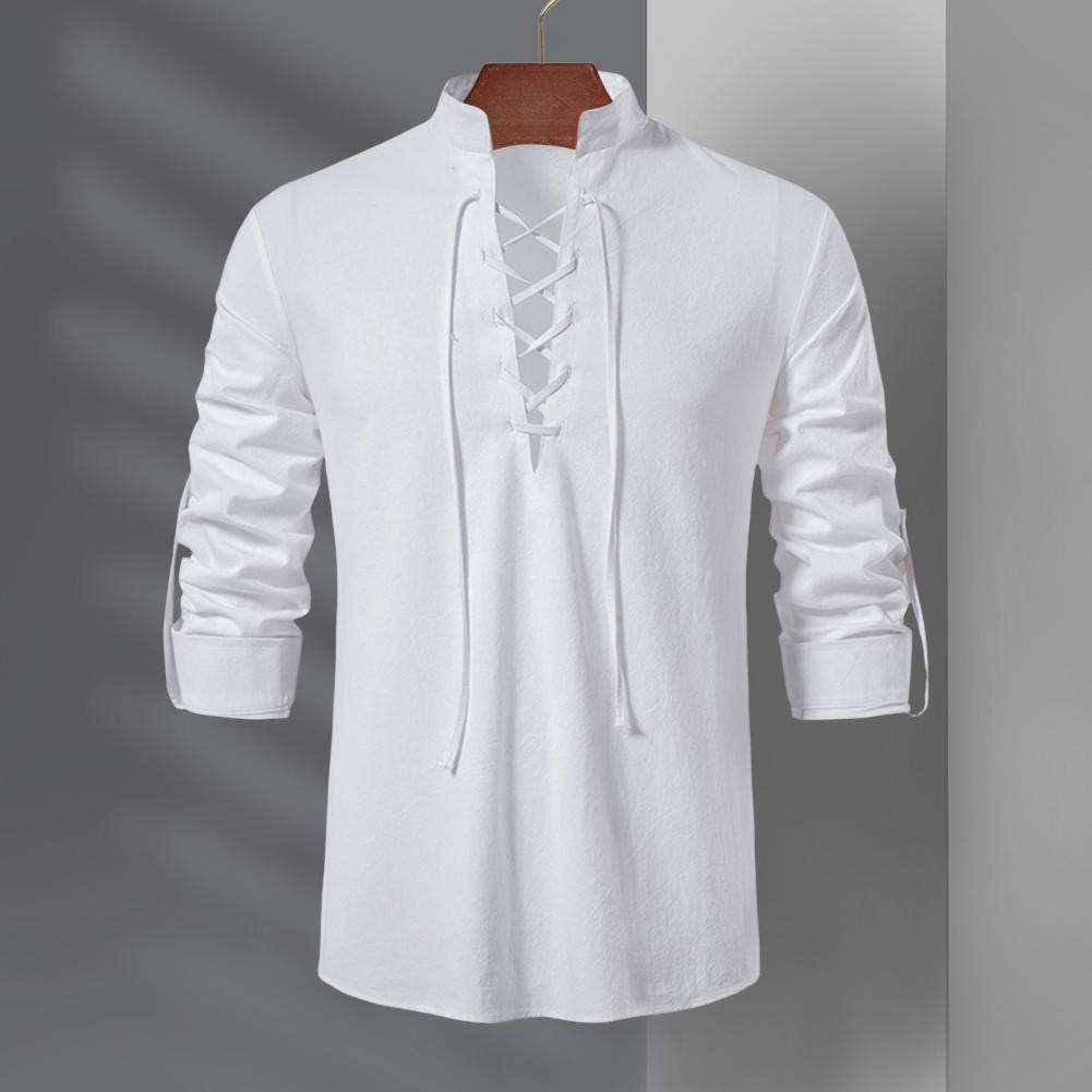Dodaj odrobinę stylu retro do swojej garderoby dzięki tej męskiej koszuli z długim rękawem, bawełnianym i lnianym hipisowskim, plażowym kołnierzykiem ze stójką.Stójka i paski krzyżowe dodają niepowtarzalnego charakteru, a rękawy zapinane na guziki umożliwiają regulację długości rękawa w celu indywidualnego dopasowania.