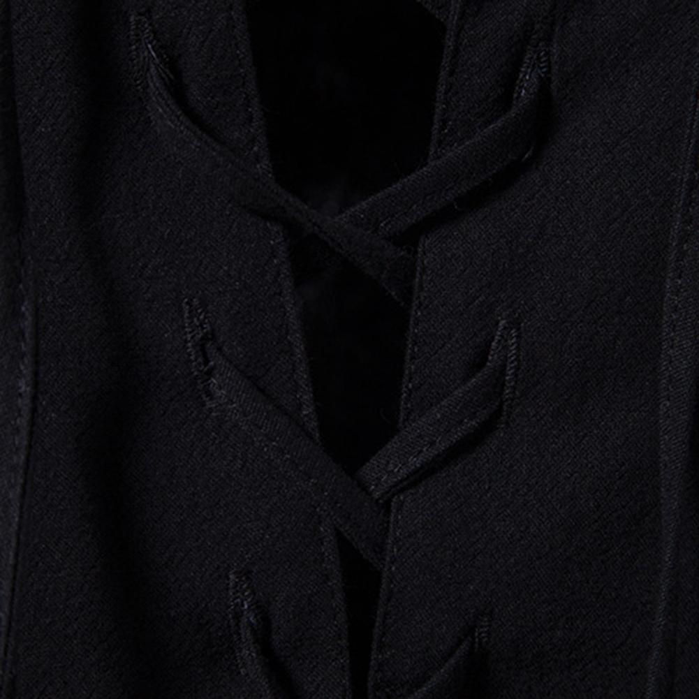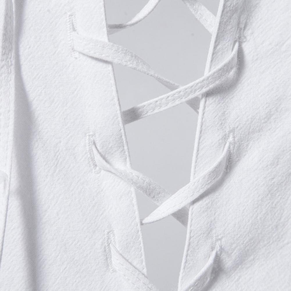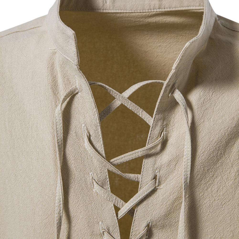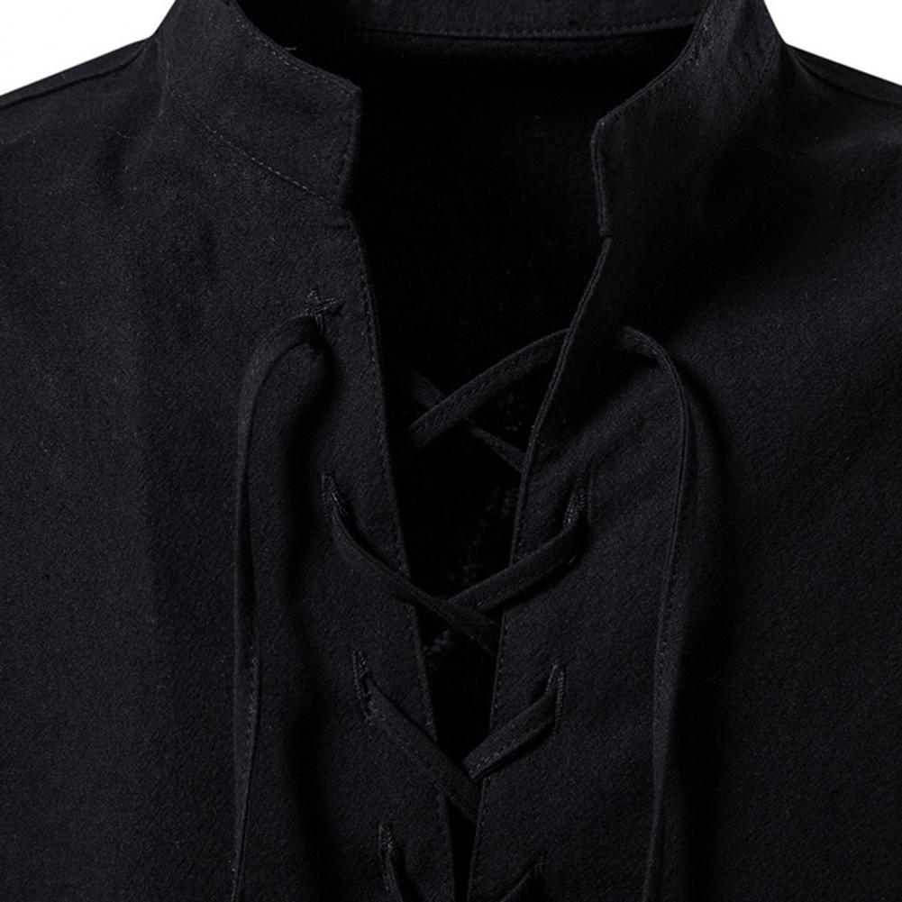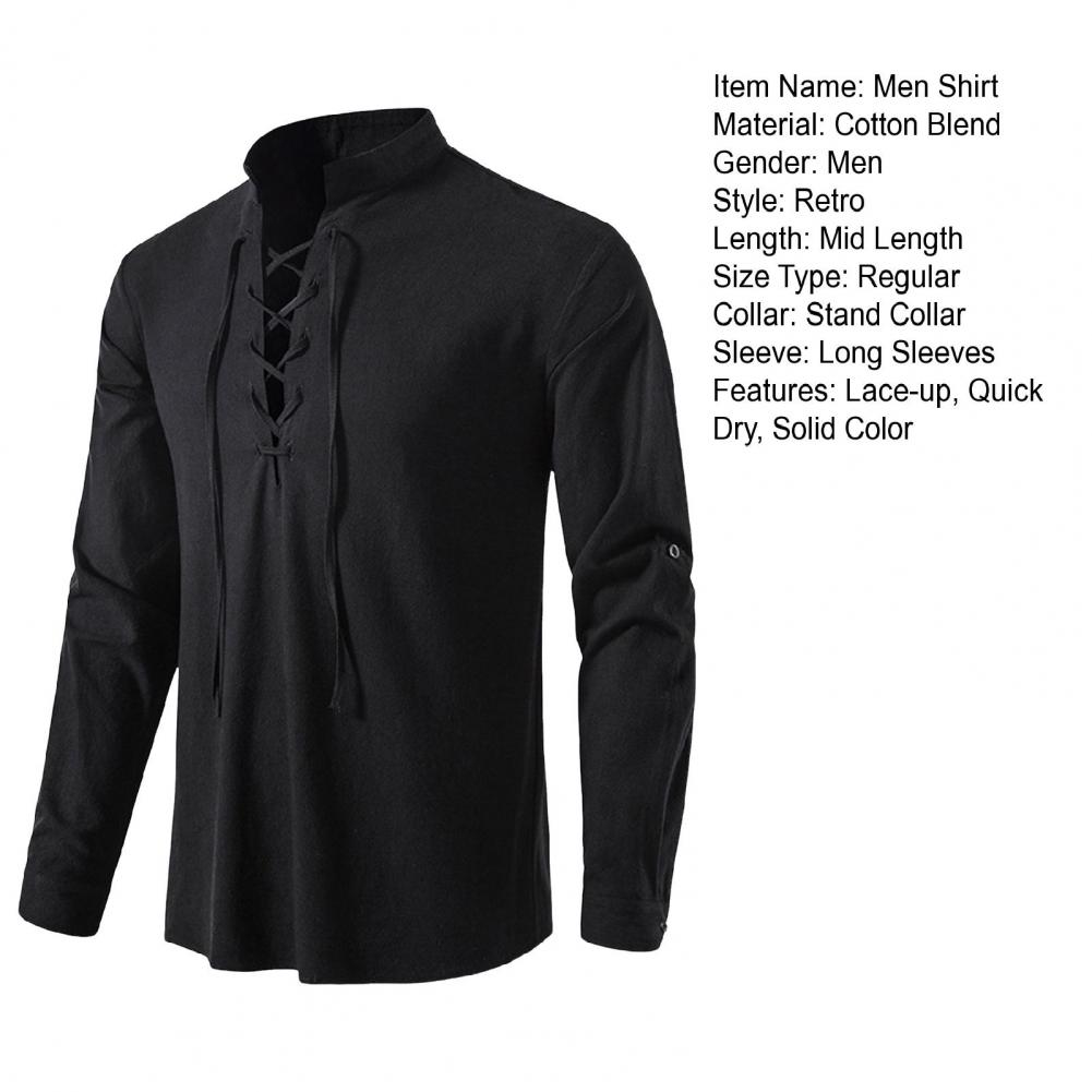 Wiosenna koszula męska sznurowany pasek stójka jednokolorowe długie rękawy Retro Hippie Casual sweter w stylu plażowym średniej długości codzienny top