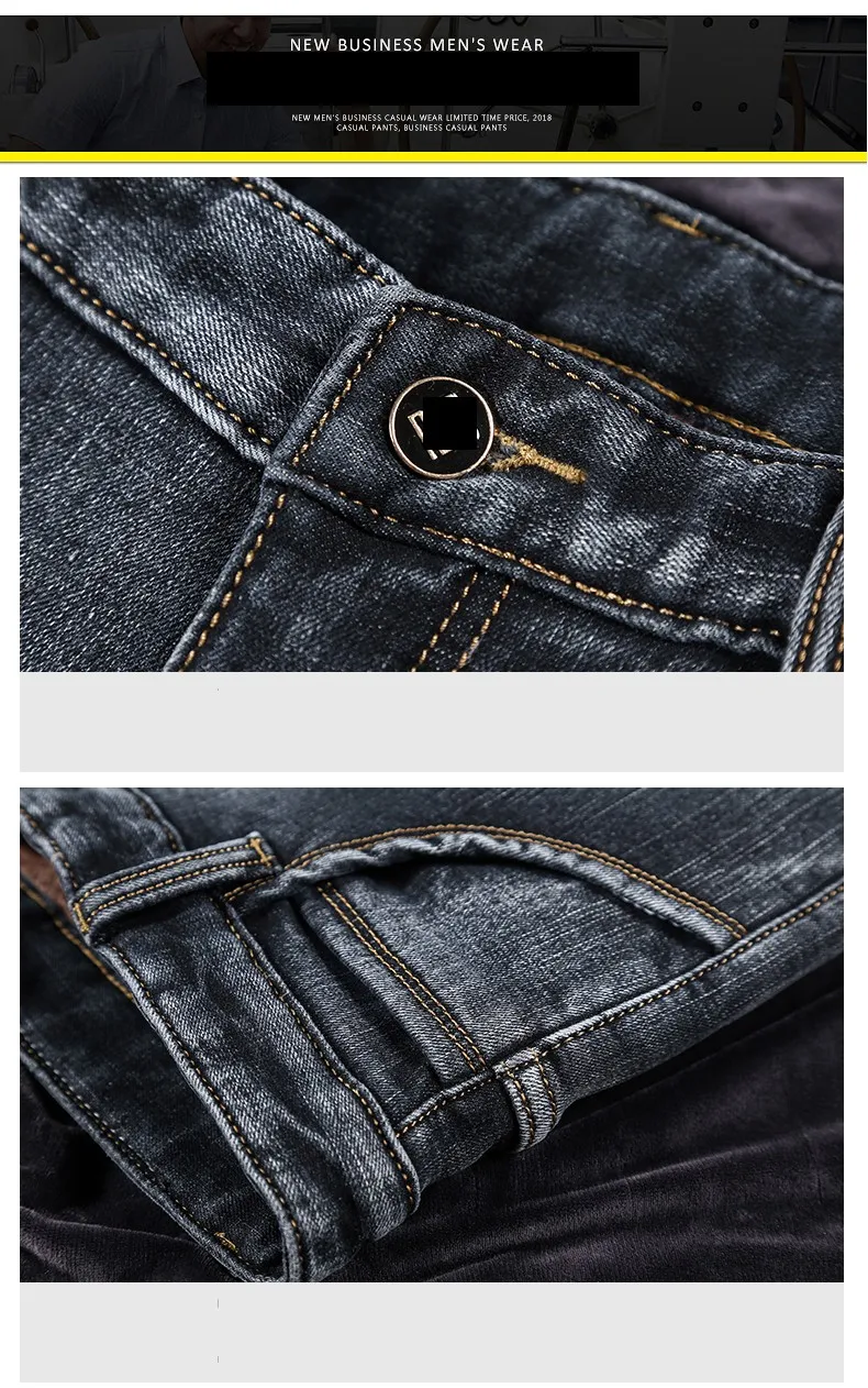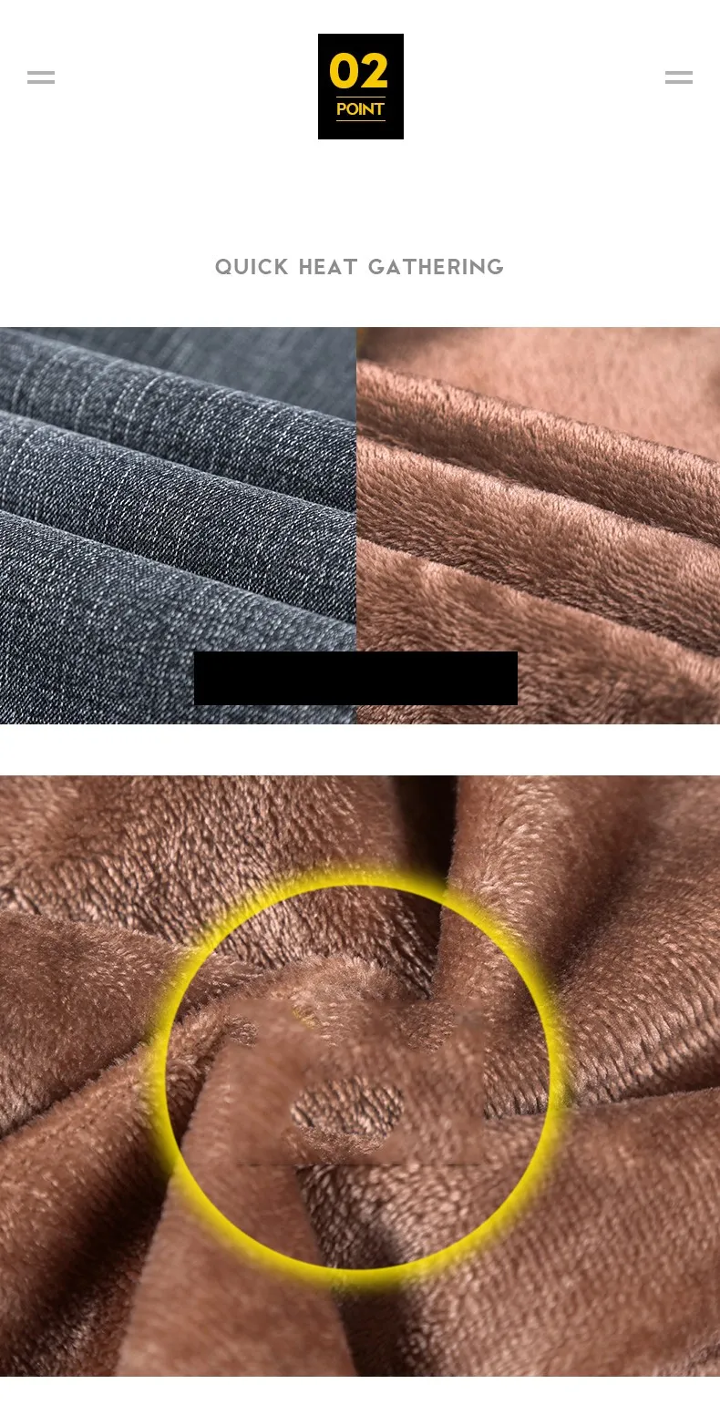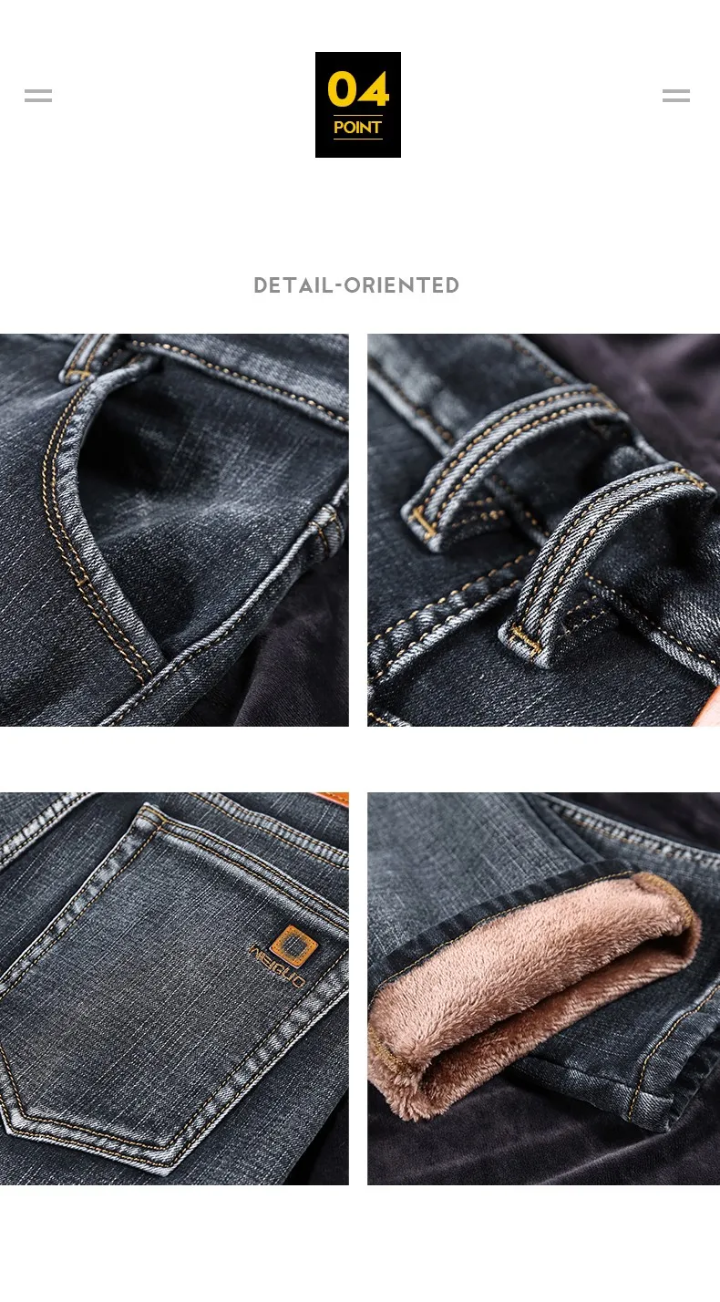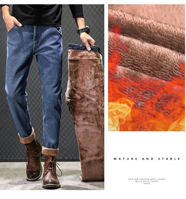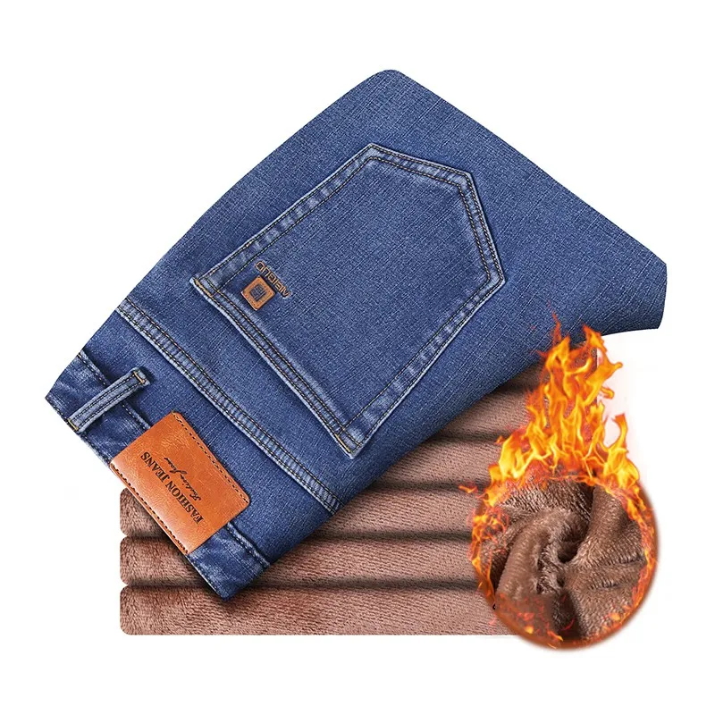 • 2024 New Men's Warm Fleece Jeans Classic Style High Quality Cotton Slim Fit Denim Stretch Trousers Dark Grey Brand Pants
