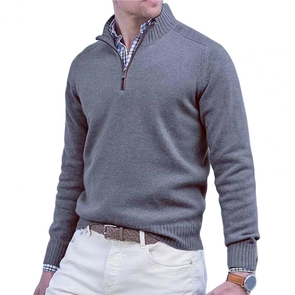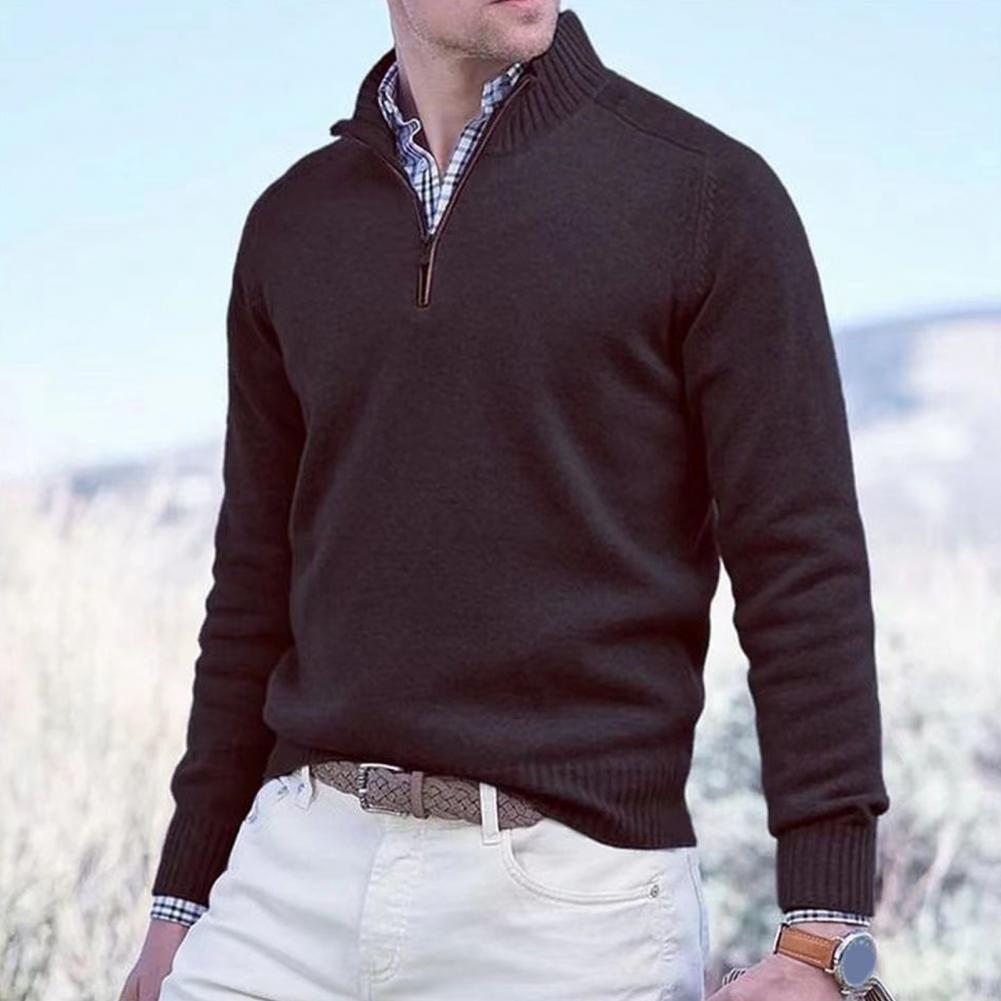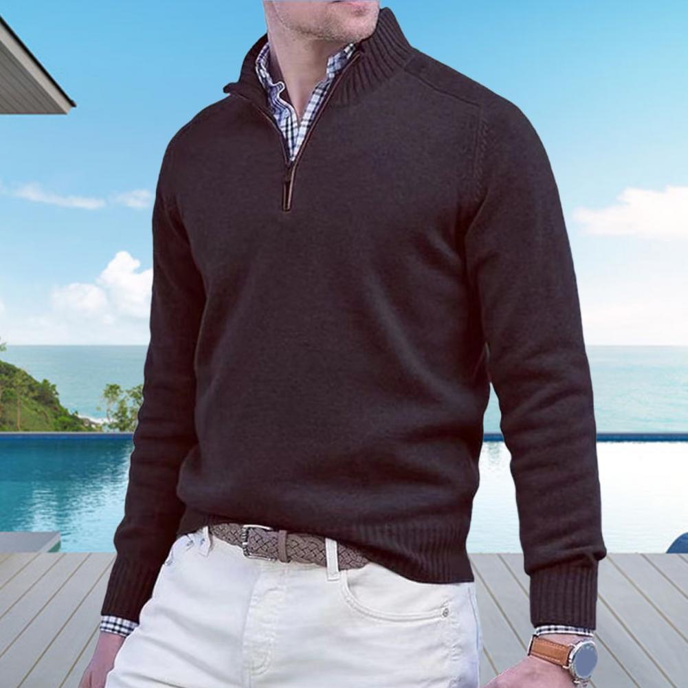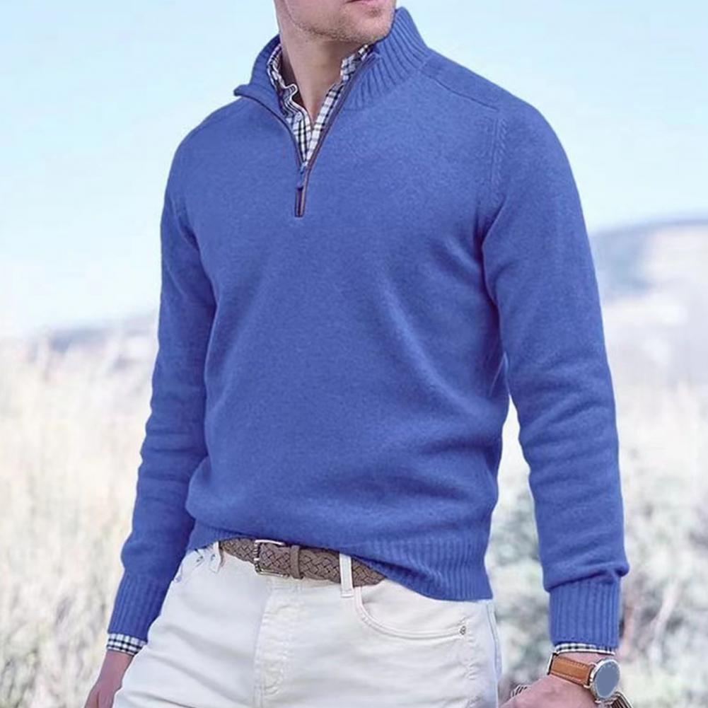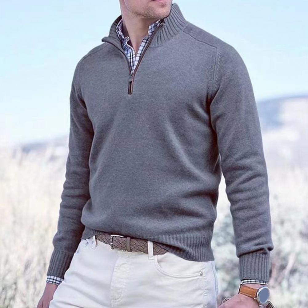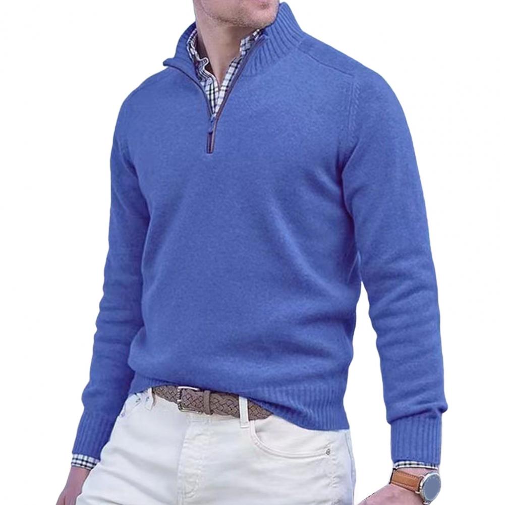 Fall Winter Men Sweater Zippered Half-high Collar Long Sleeves Top Knitted Thick Warm Pure Color Pullover Stretchy Daily Wear Knitwear