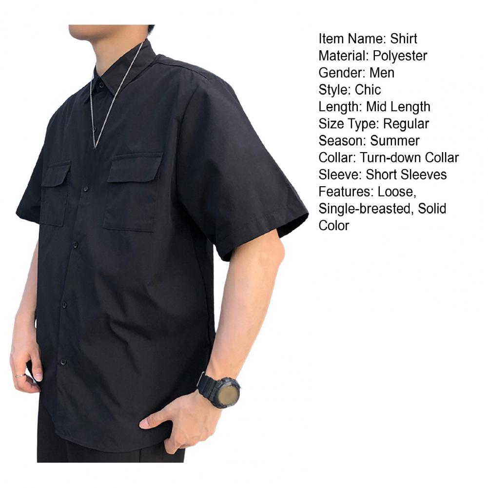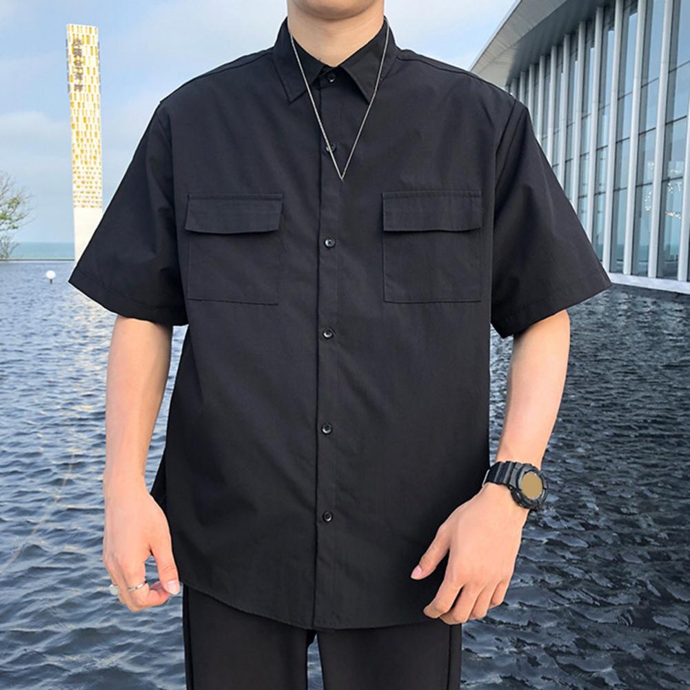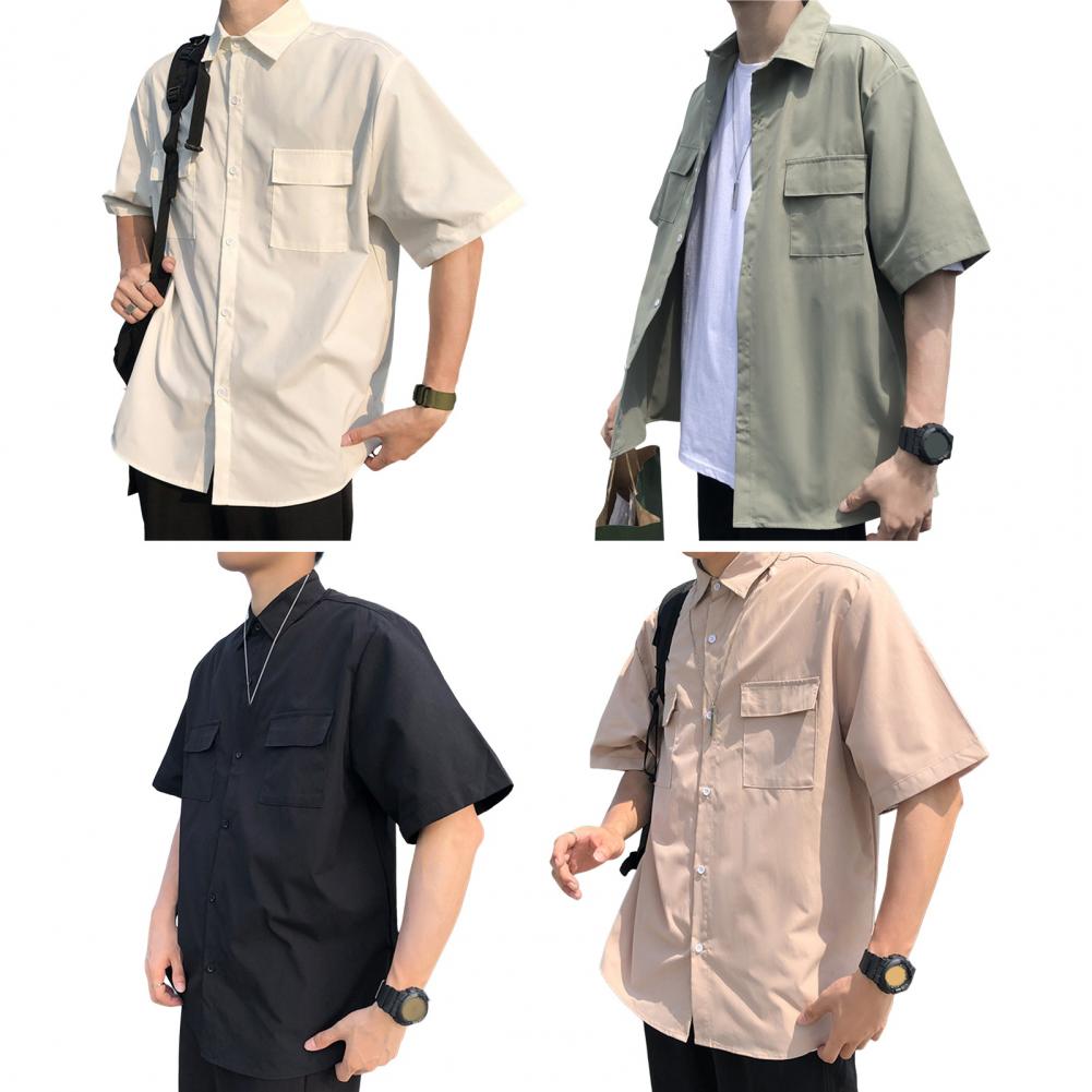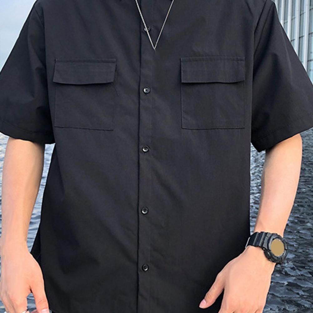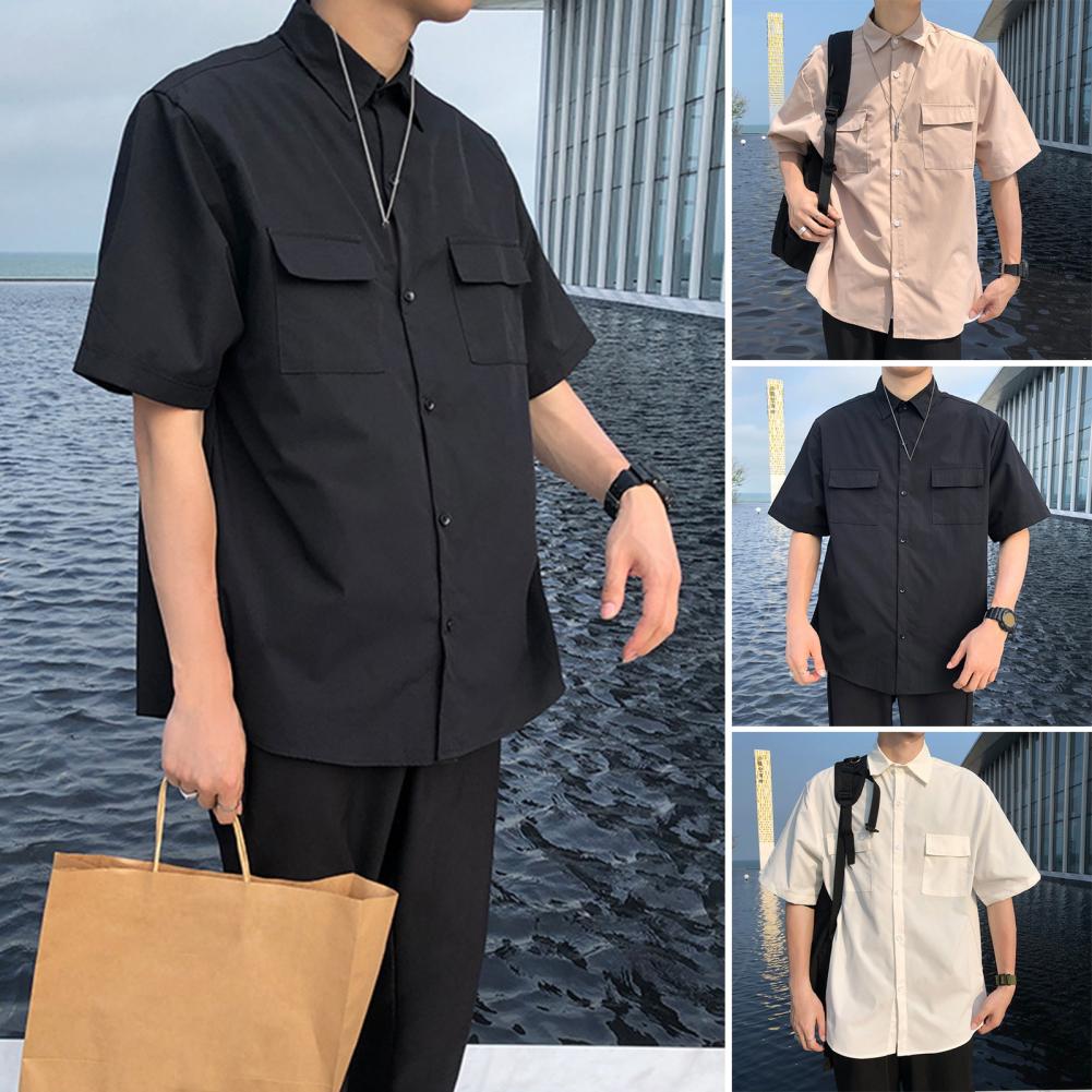 Crafted with fine workmanship using skin-friendly polyester fiber fabric, this shirt is soft and maintains its shape well. Ideal for daily wear, vacation outings, street style, or as workwear, this loose-fitting basic solid color short-sleeved shirt is a must-have for men seeking casual yet stylish attire.