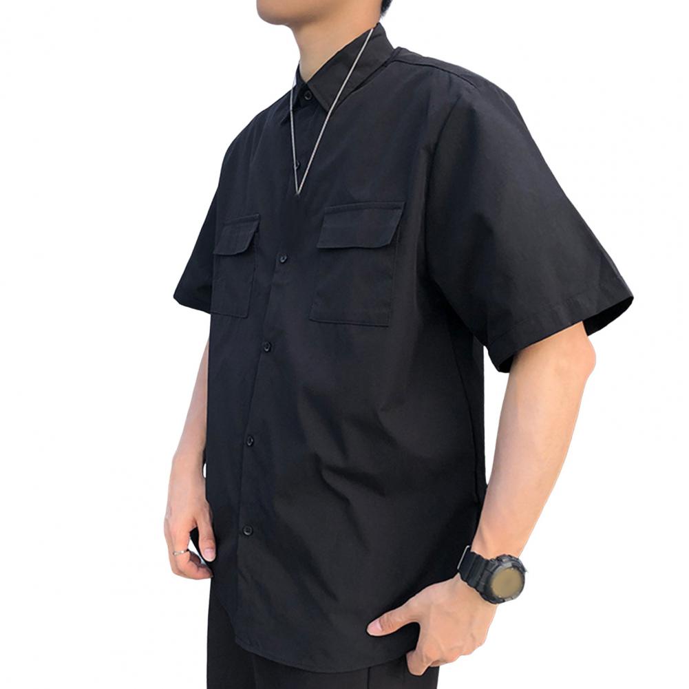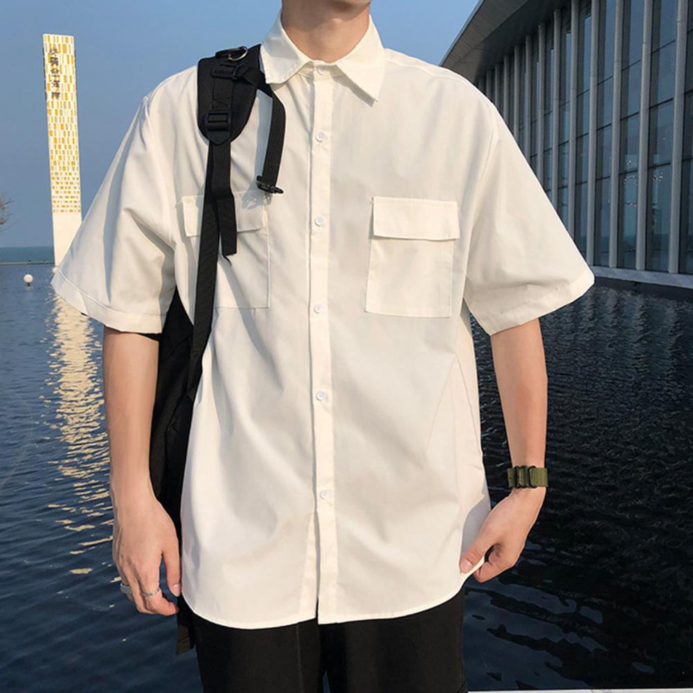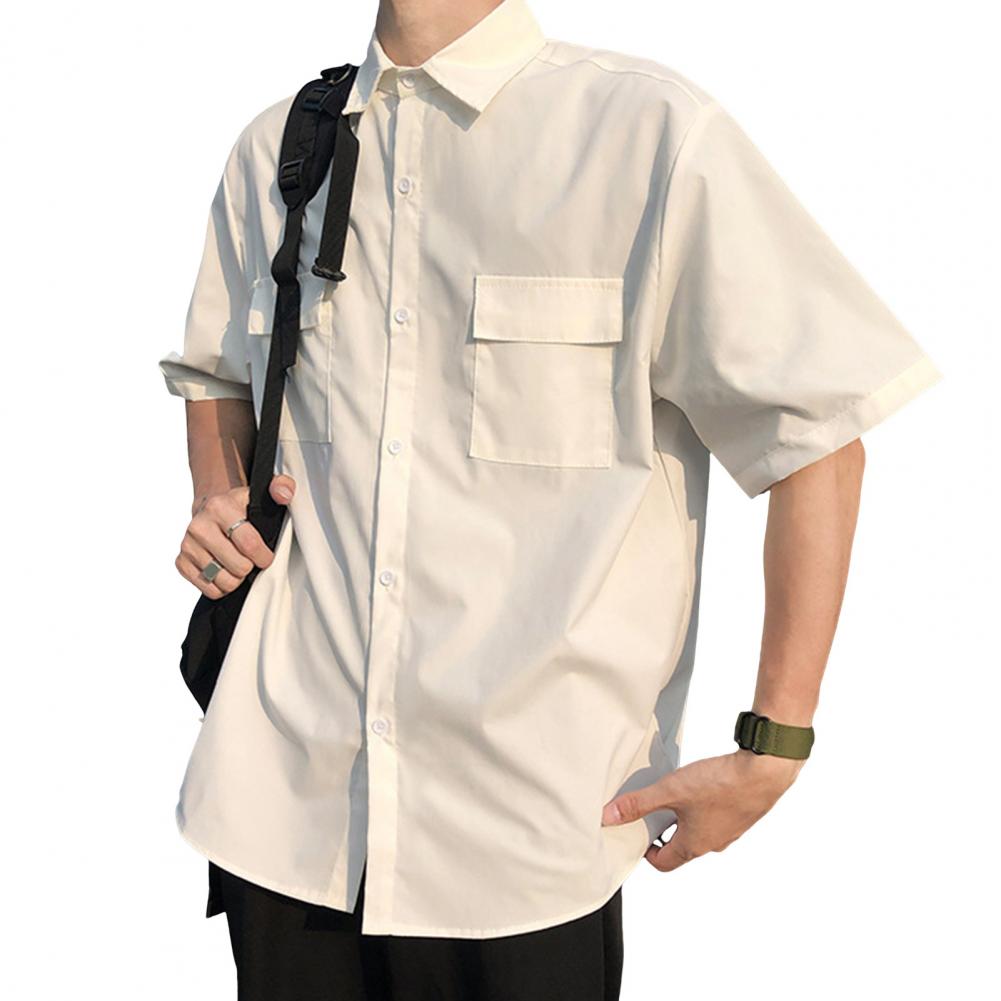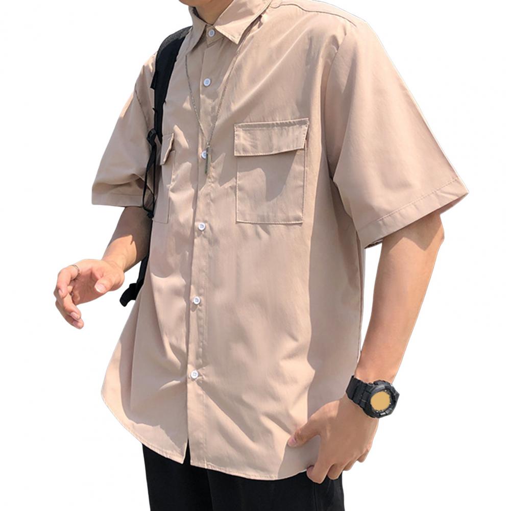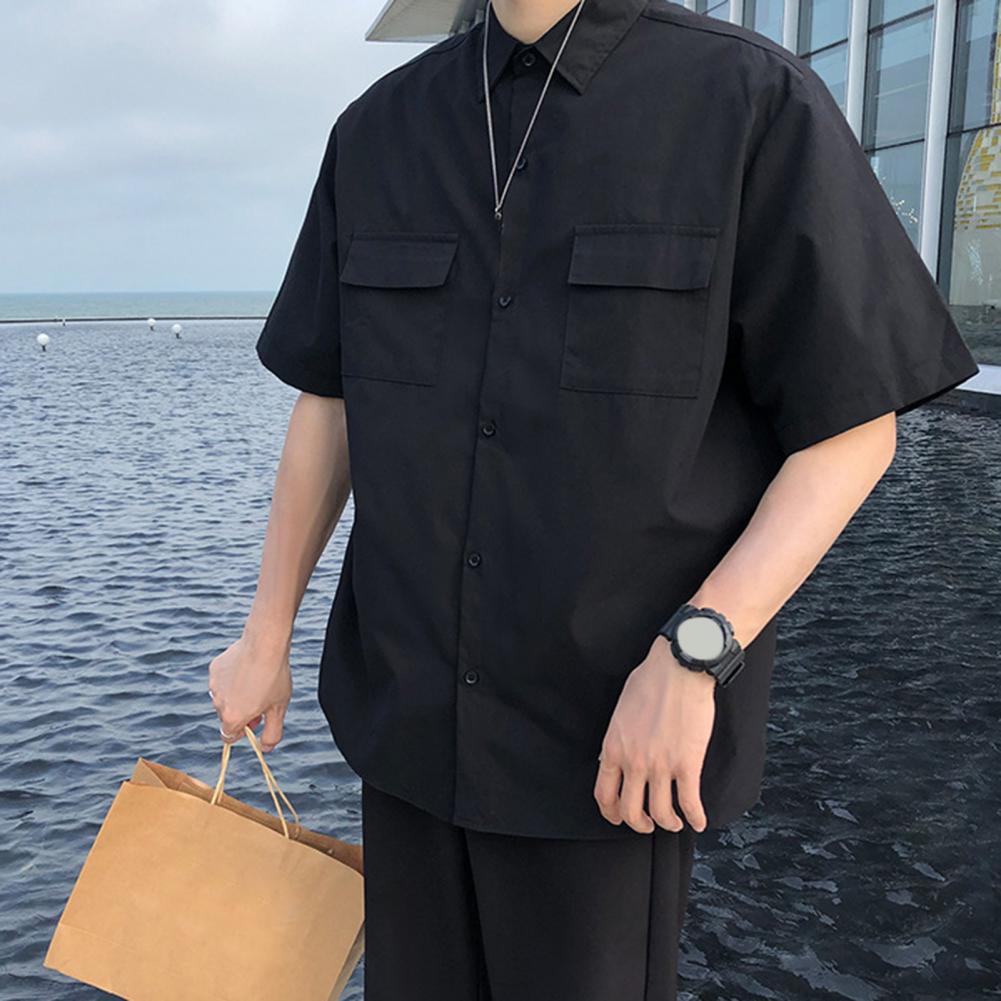 Crafted with fine workmanship using skin-friendly polyester fiber fabric, this shirt is soft and maintains its shape well. Ideal for daily wear, vacation outings, street style, or as workwear, this loose-fitting basic solid color short-sleeved shirt is a must-have for men seeking casual yet stylish attire.