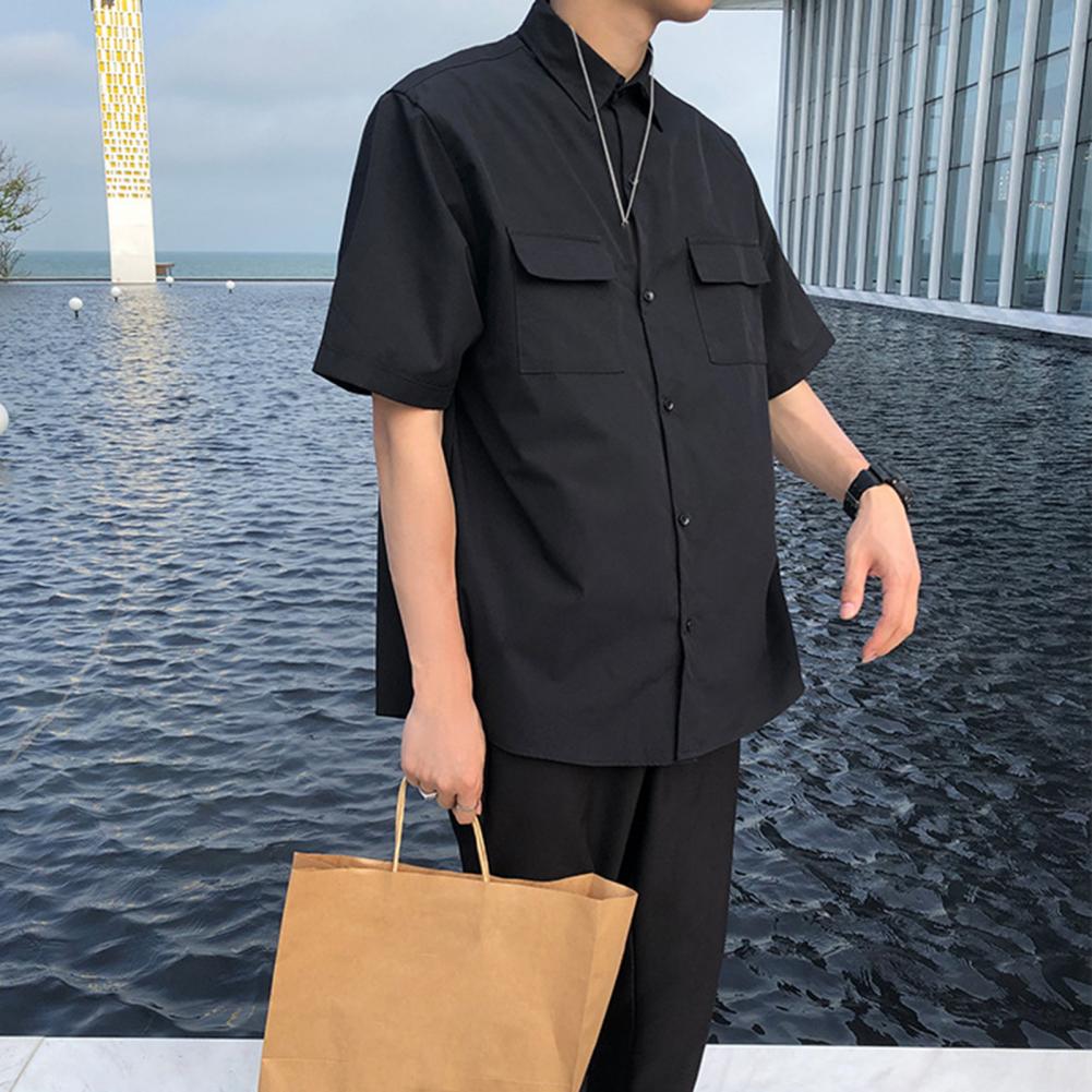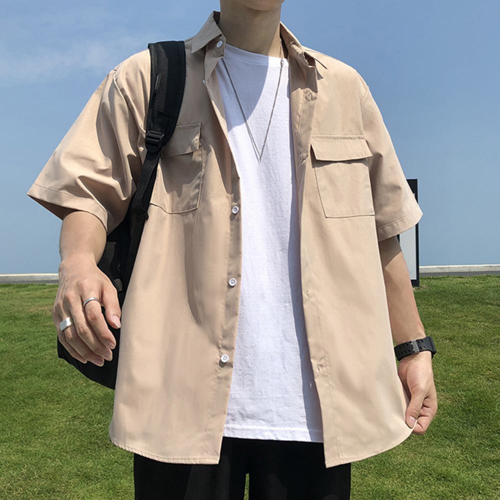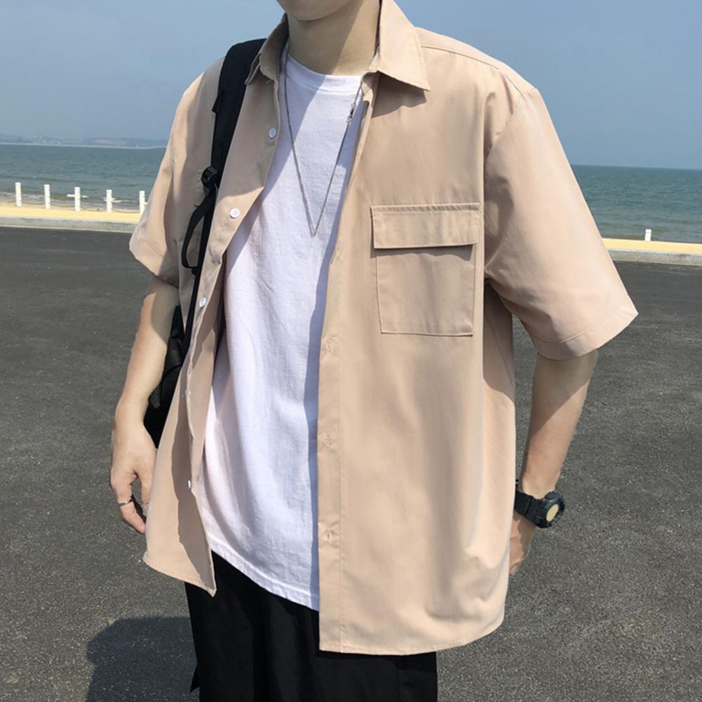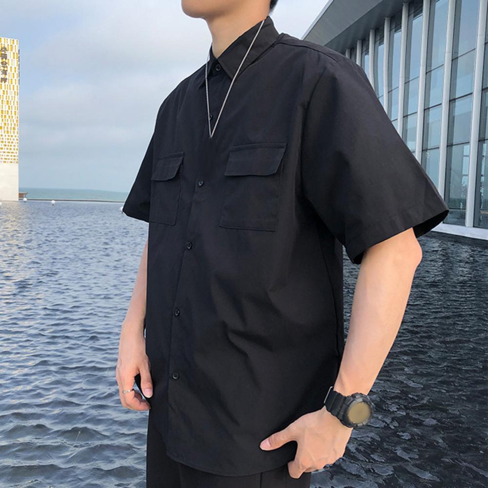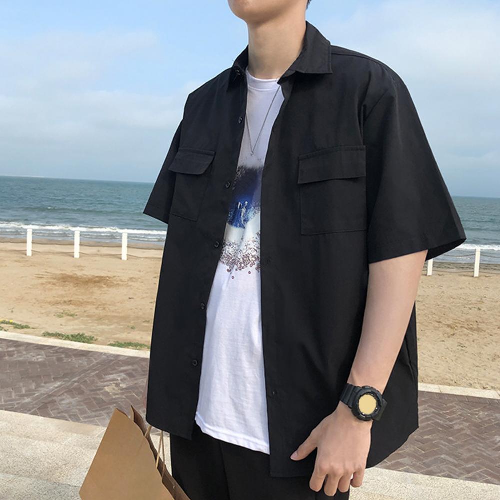 Crafted with fine workmanship using skin-friendly polyester fiber fabric, this shirt is soft and maintains its shape well. Ideal for daily wear, vacation outings, street style, or as workwear, this loose-fitting basic solid color short-sleeved shirt is a must-have for men seeking casual yet stylish attire.