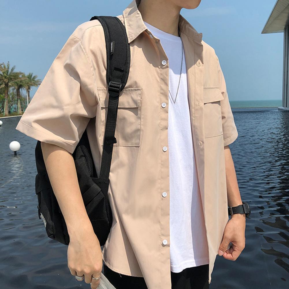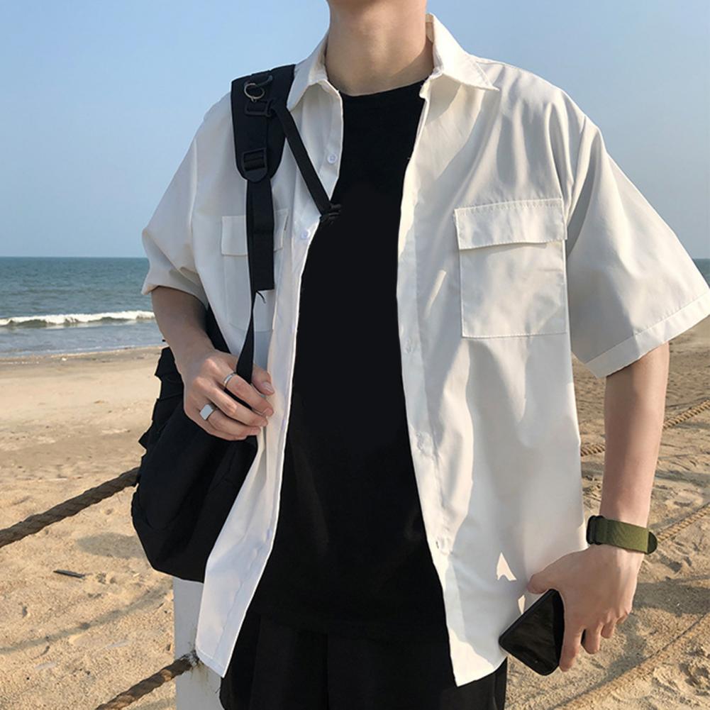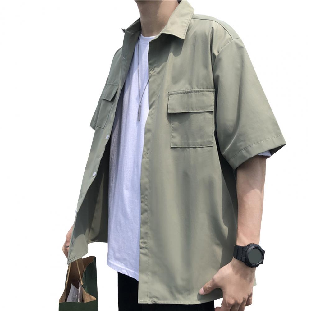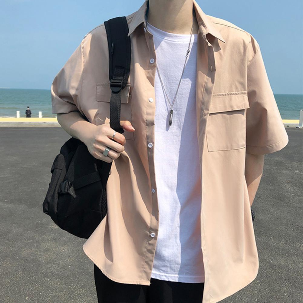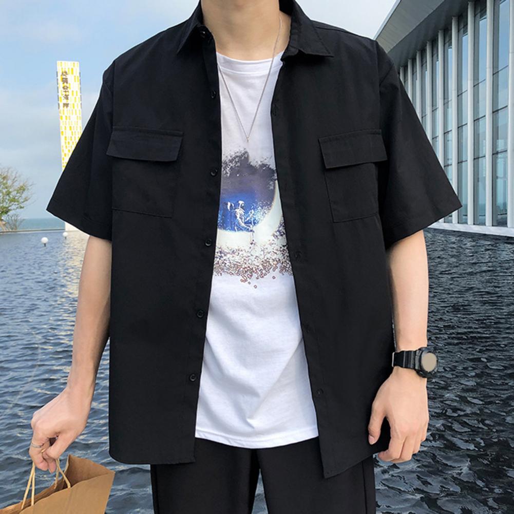 Crafted with fine workmanship using skin-friendly polyester fiber fabric, this shirt is soft and maintains its shape well. Ideal for daily wear, vacation outings, street style, or as workwear, this loose-fitting basic solid color short-sleeved shirt is a must-have for men seeking casual yet stylish attire.