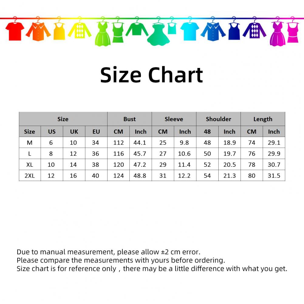 Size: M, Bust: 112cm/44.09", Clothes Length: 74cm/29.13", Sleeve: 25cm/9.84", Shoulder: 48cm/18.9" (Approx.)