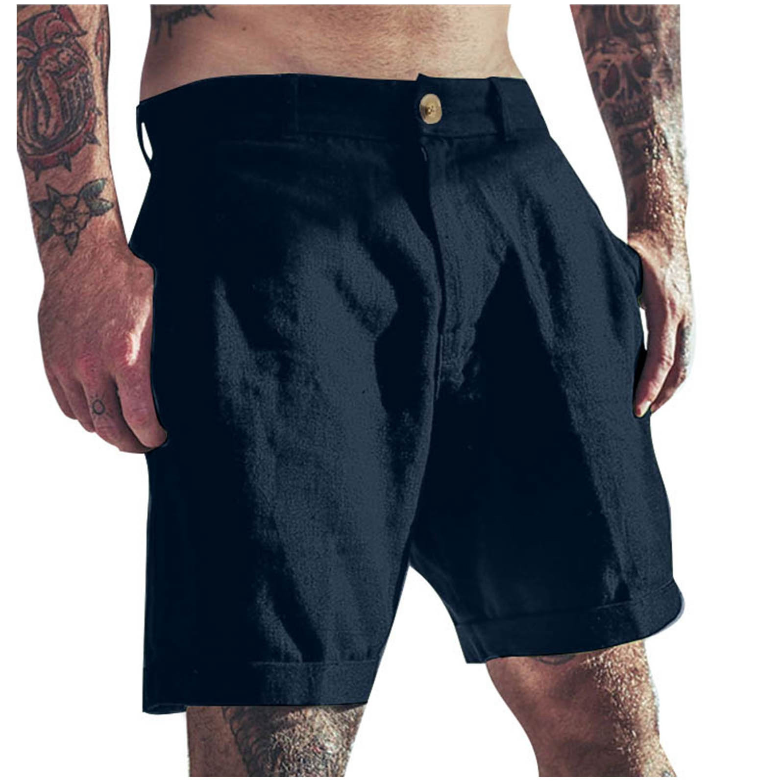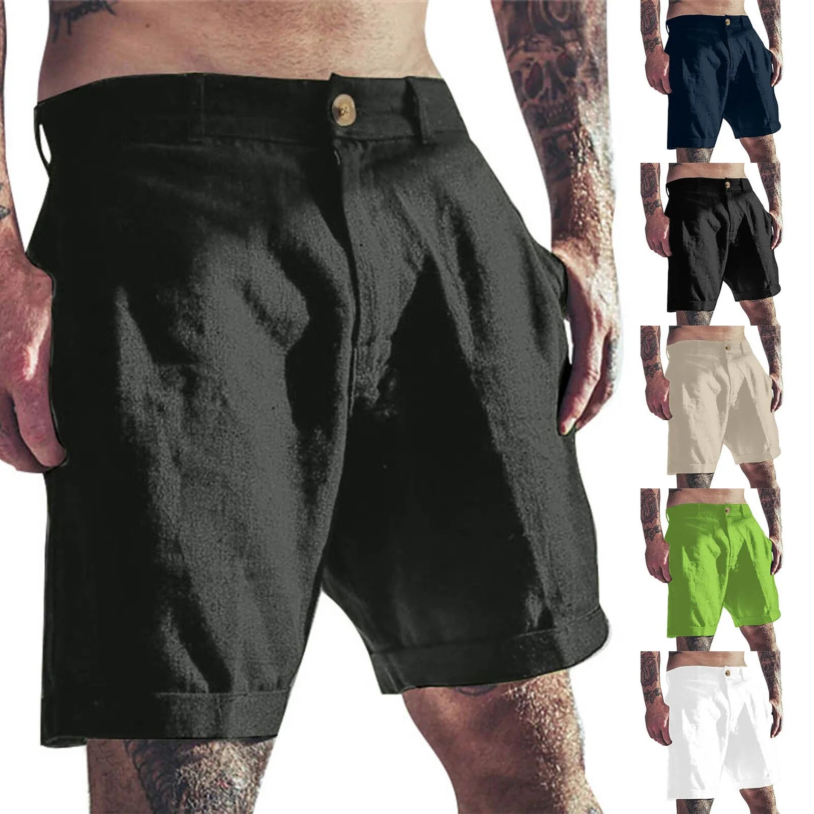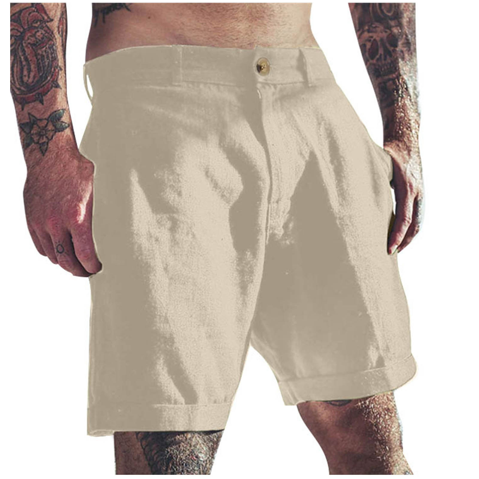 • Men Boardshorts Short Length Men'S Linen Shorts Classic Slim Casual Elastic Waist Summer Beach Shorts Bermudas Para Hombre