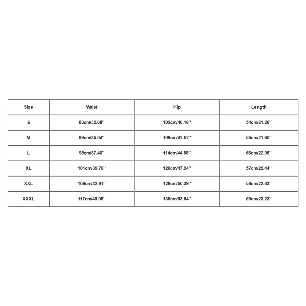 Size:XXL Waist:109cm/42.91'' Hip:128cm/50.39'' Length:58cm/22.83''