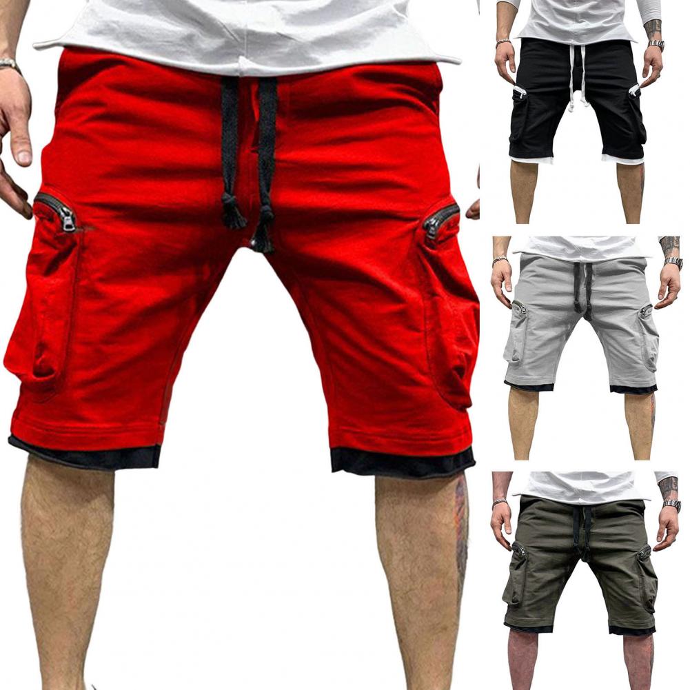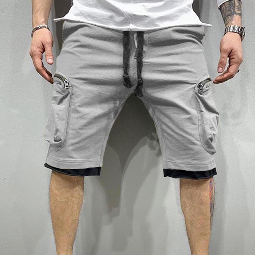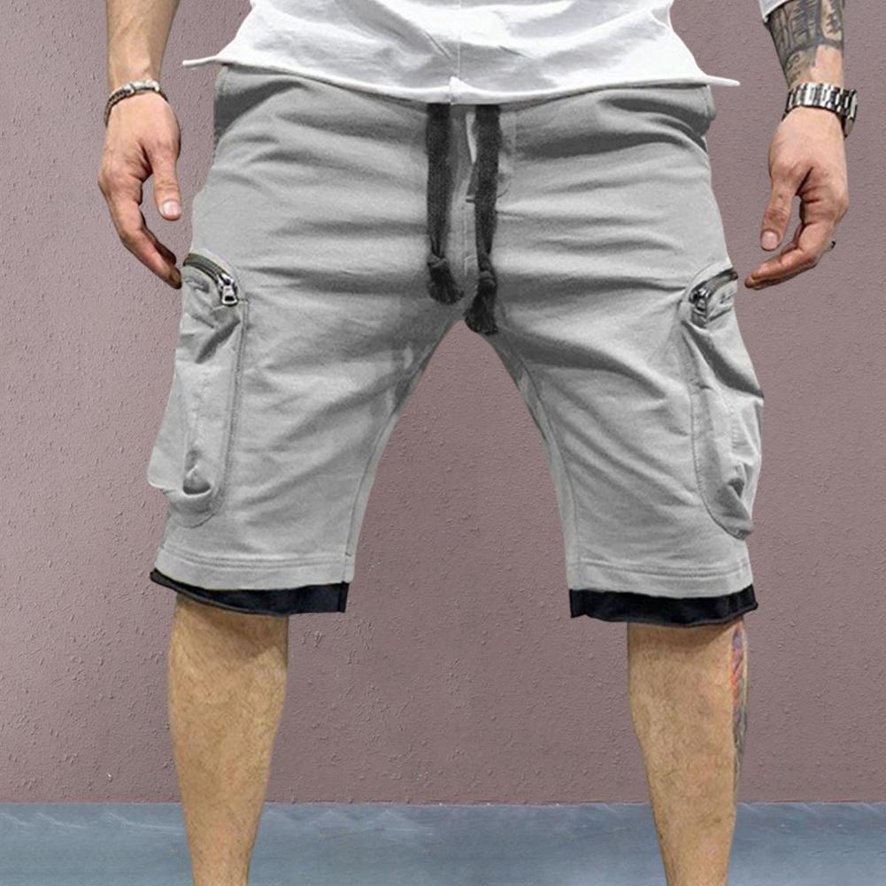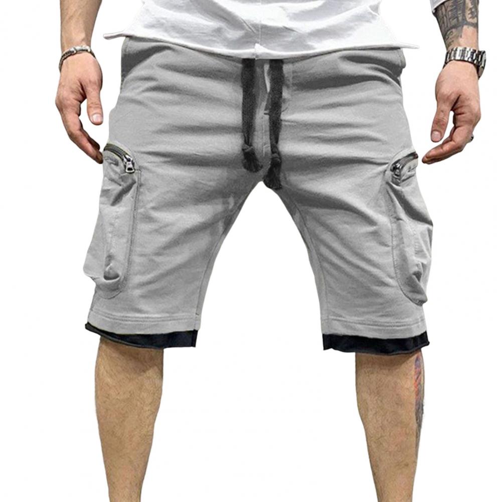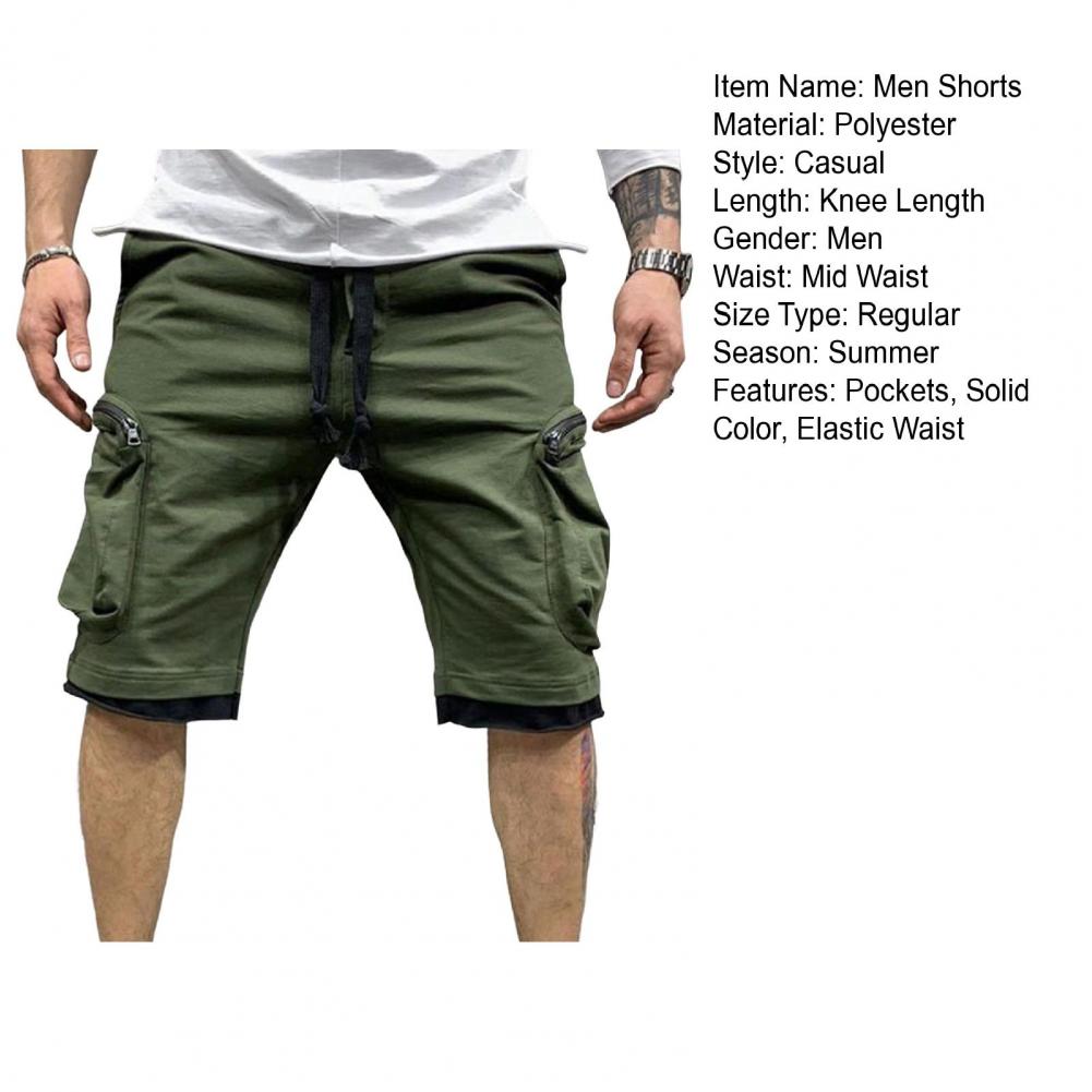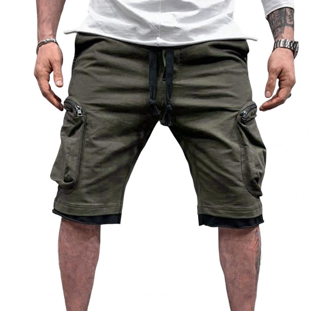 Men Cargo Shorts Elastic Waist Multiple Pockets Zipper Drawstring Streetwear Casual Knee Length Summer Shorts Male Clothes