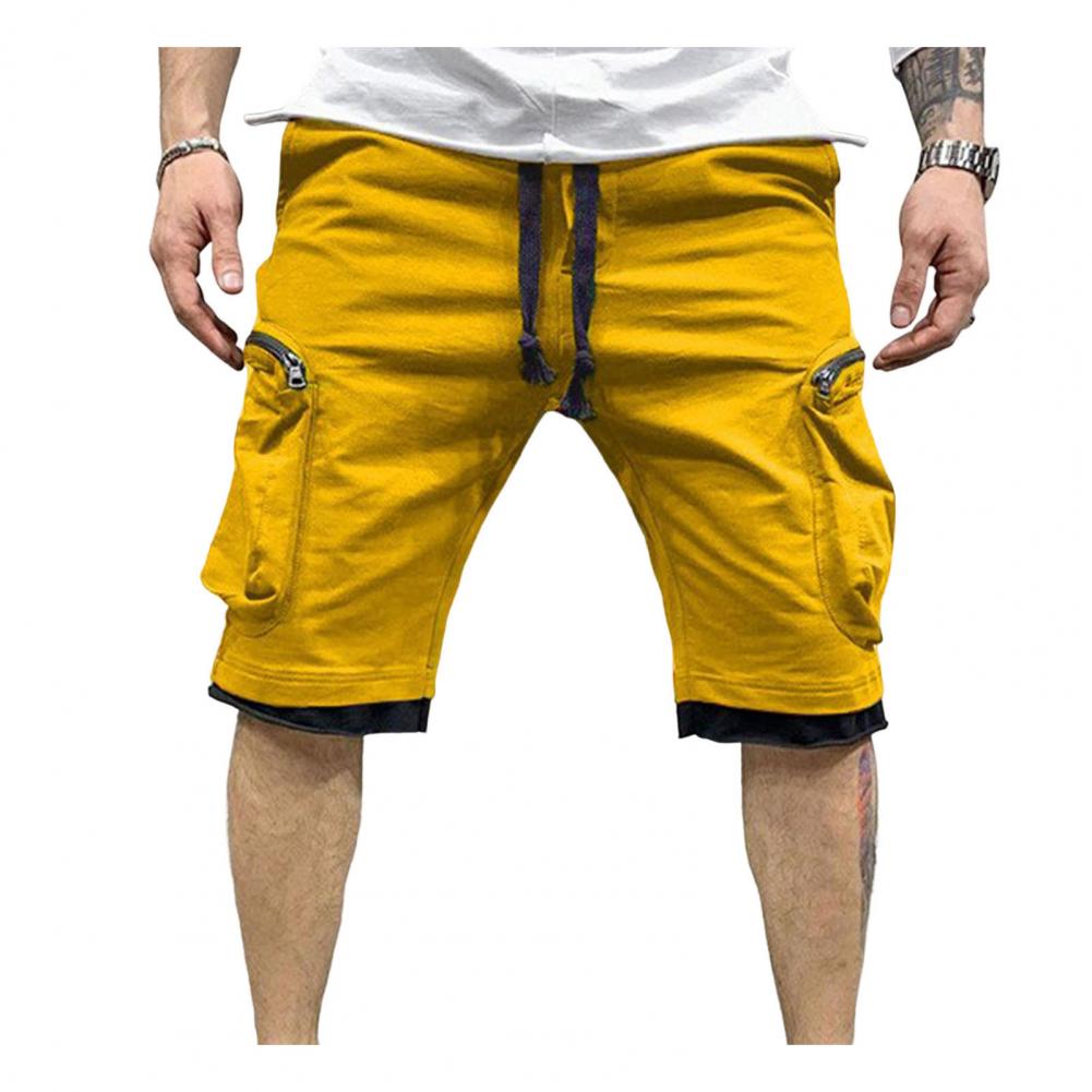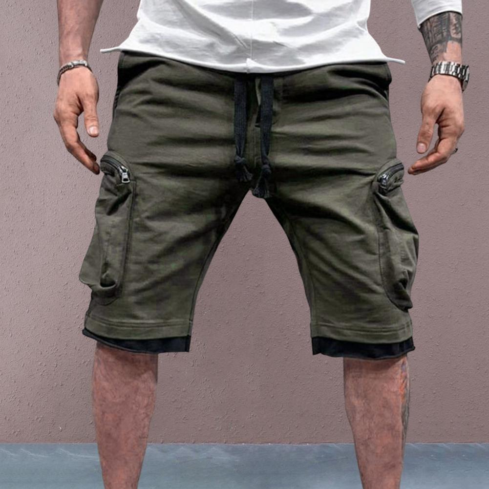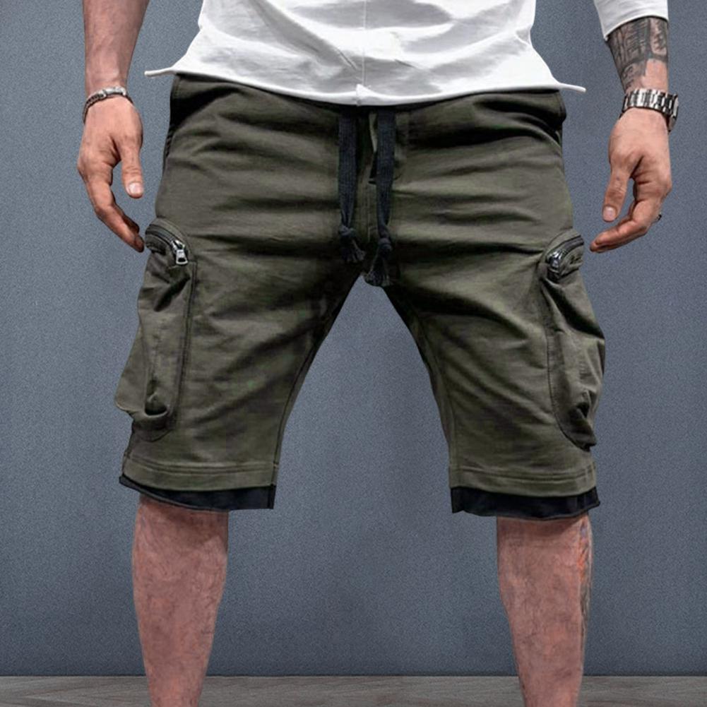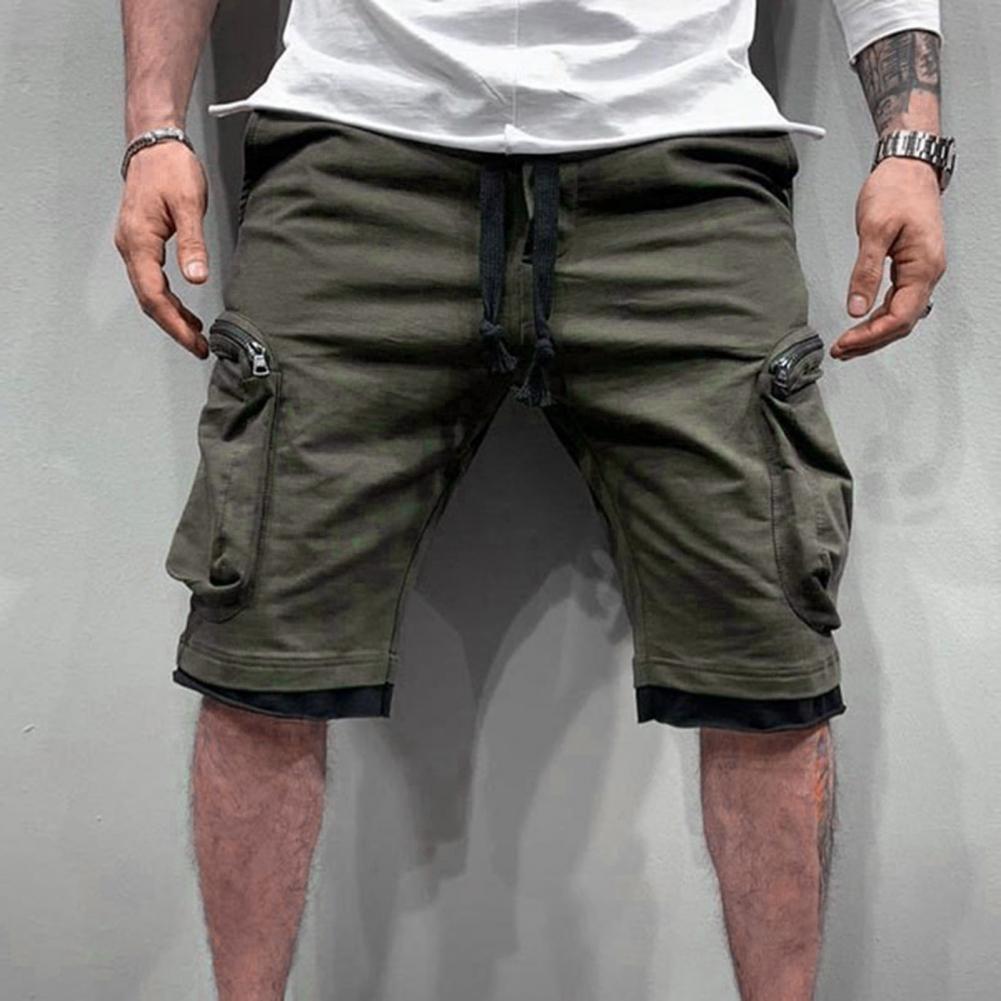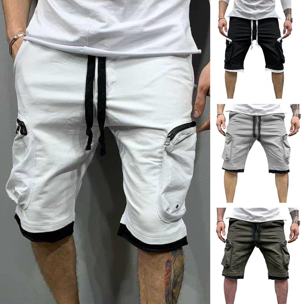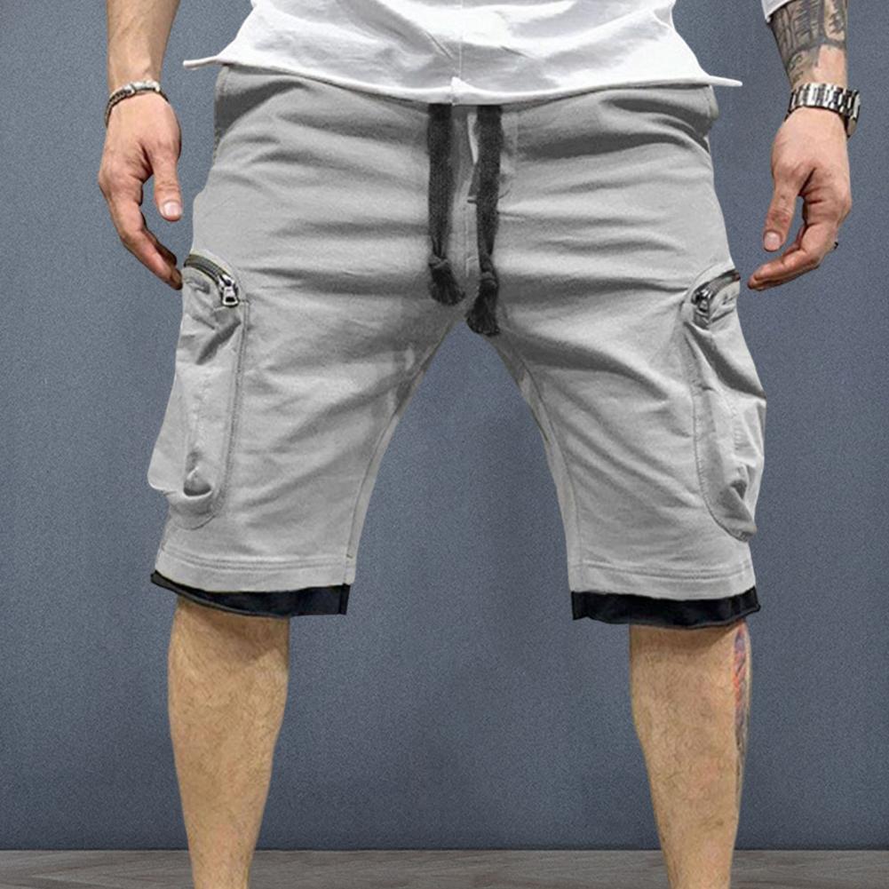 Men Cargo Shorts Elastic Waist Multiple Pockets Zipper Drawstring Streetwear Casual Knee Length Summer Shorts Male Clothes