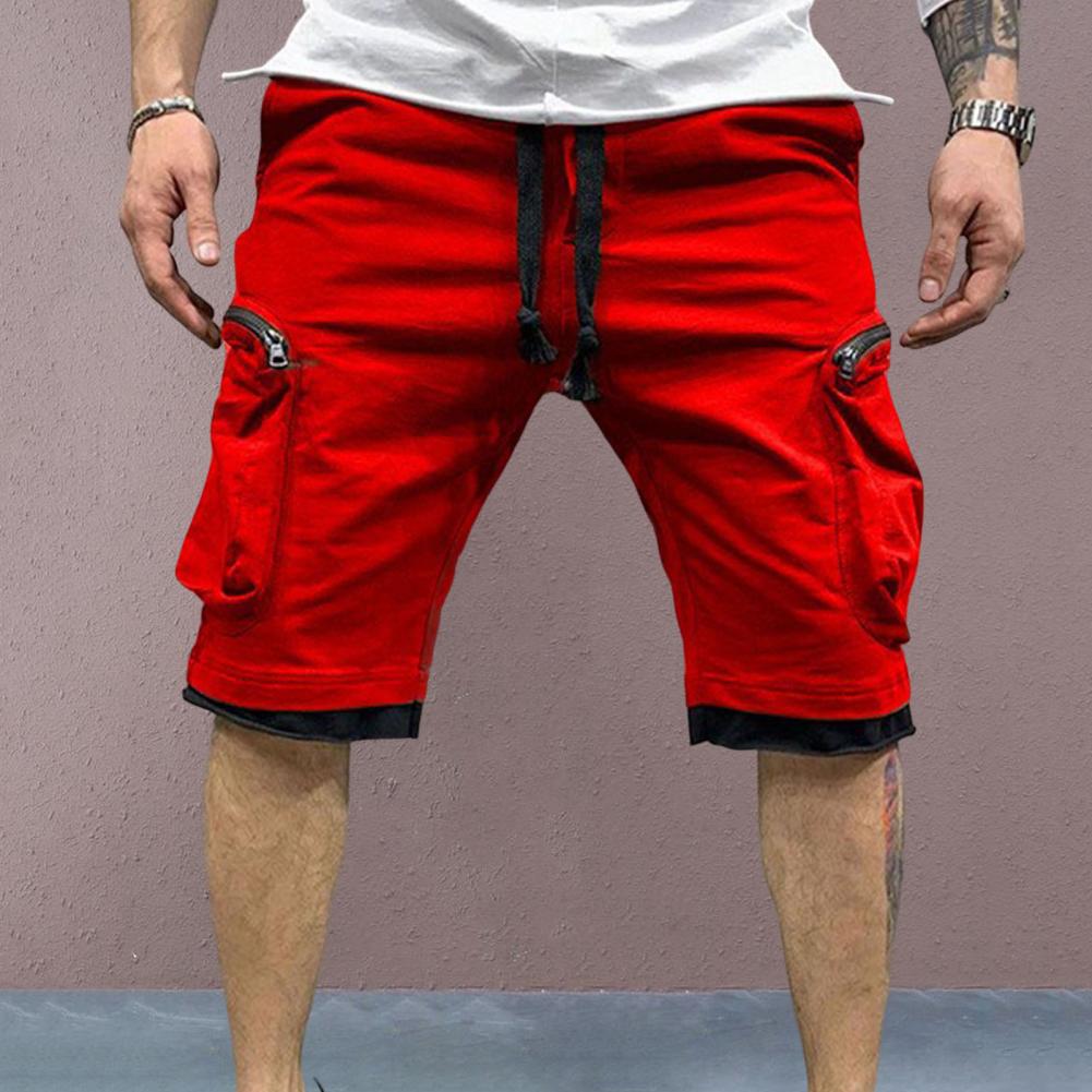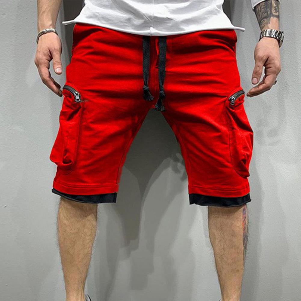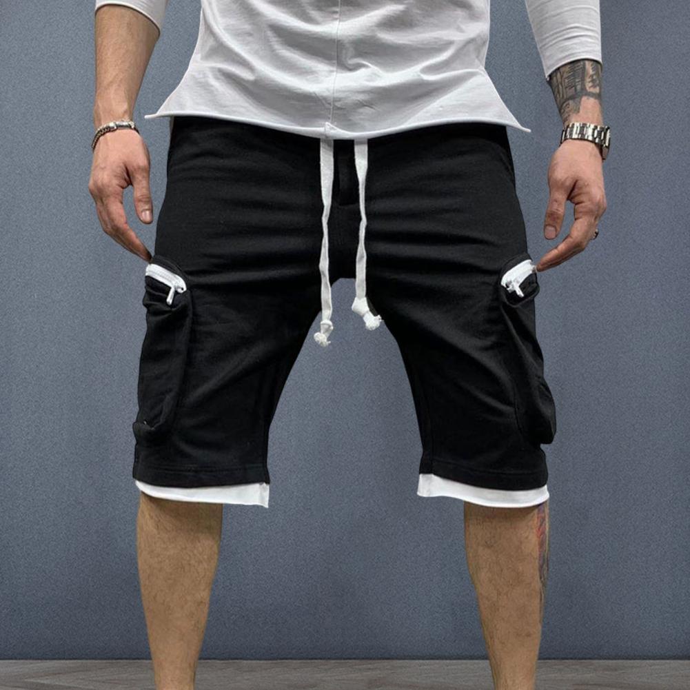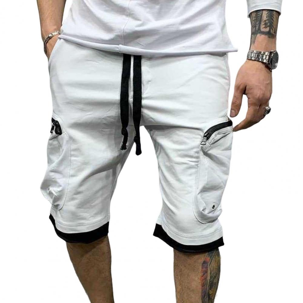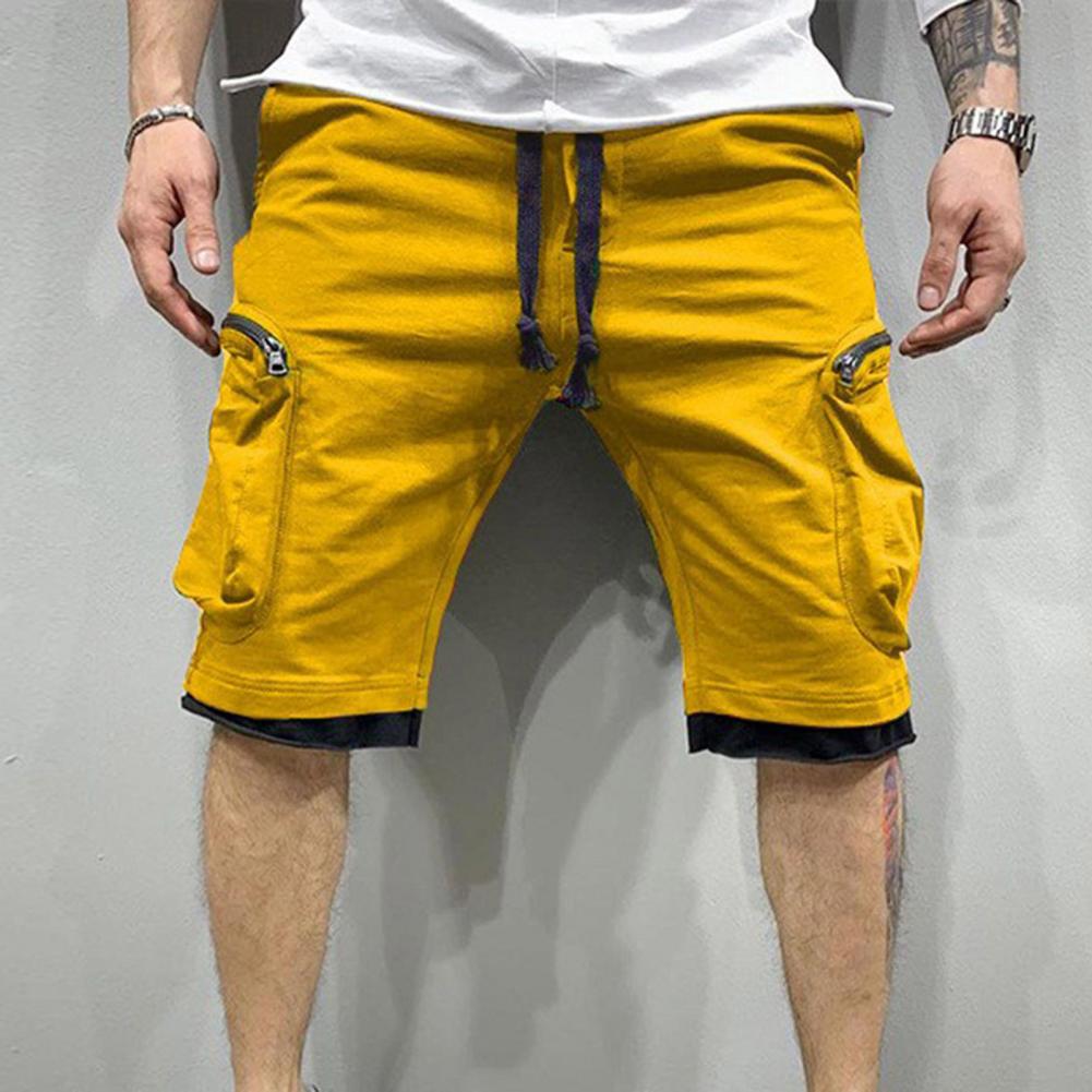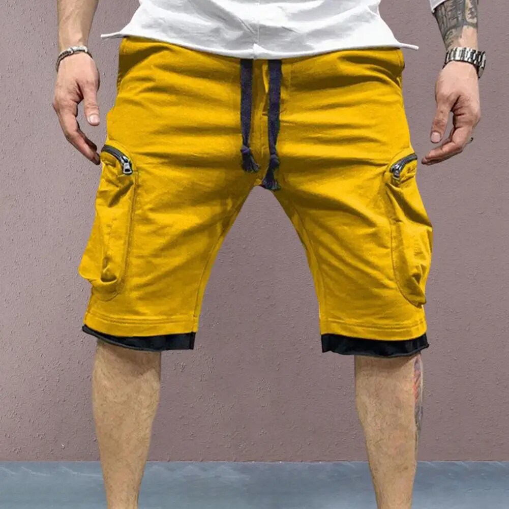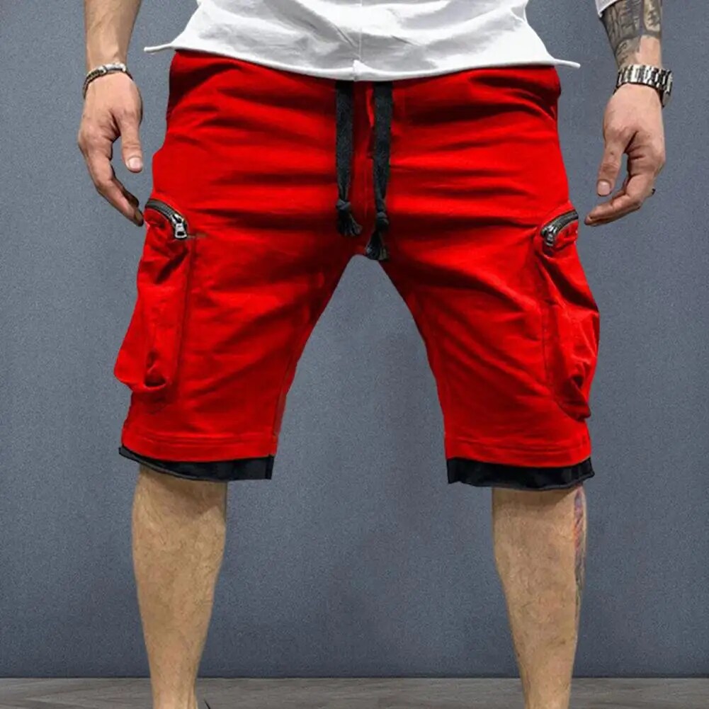Men Cargo Shorts Elastic Waist Multiple Pockets Zipper Drawstring Streetwear Casual Knee Length Summer Shorts Male Clothes
