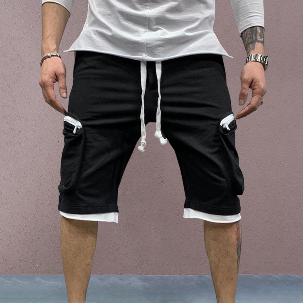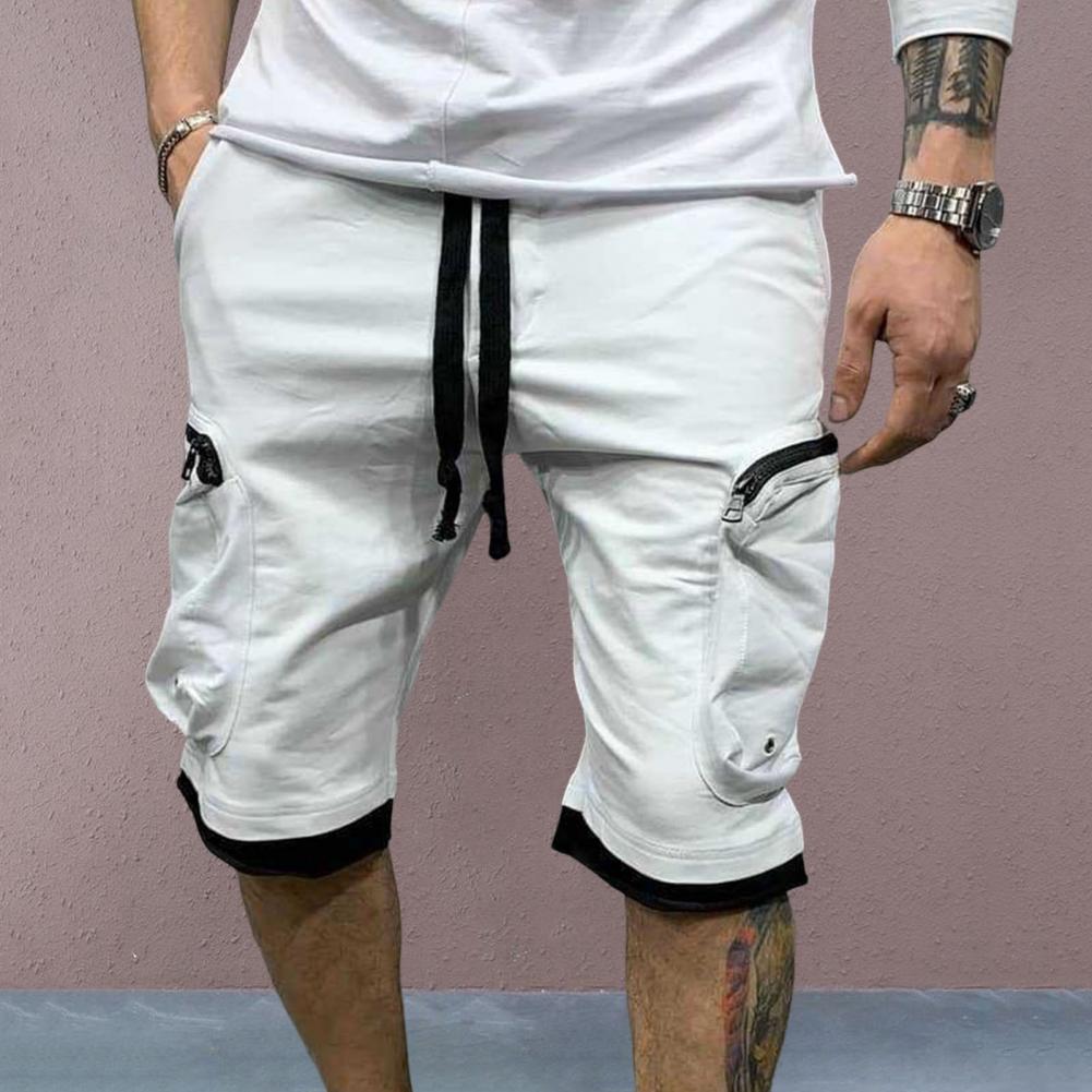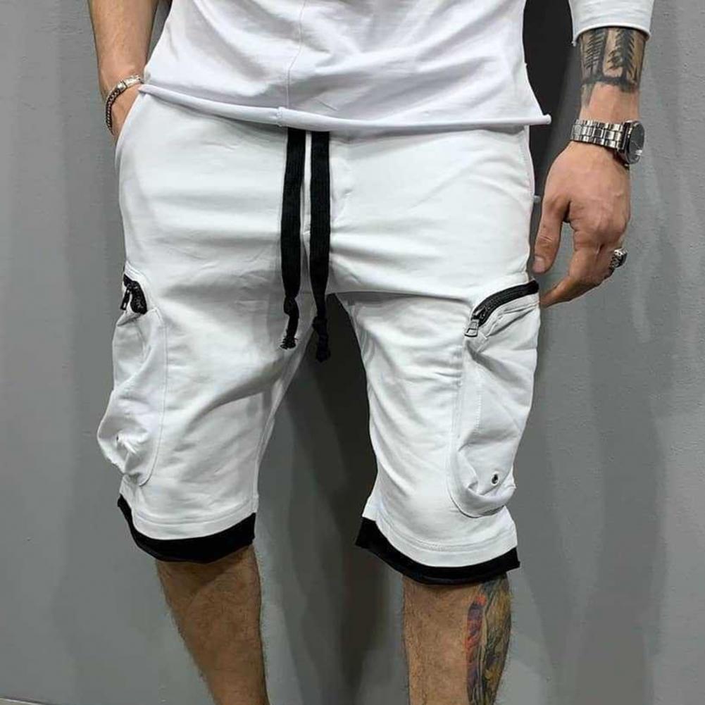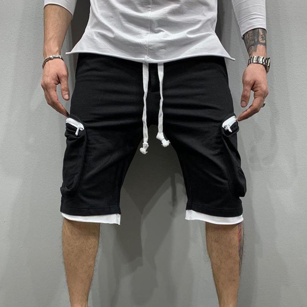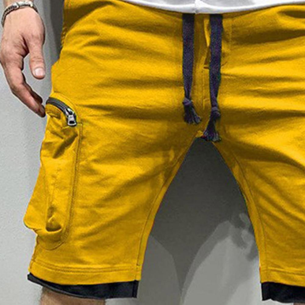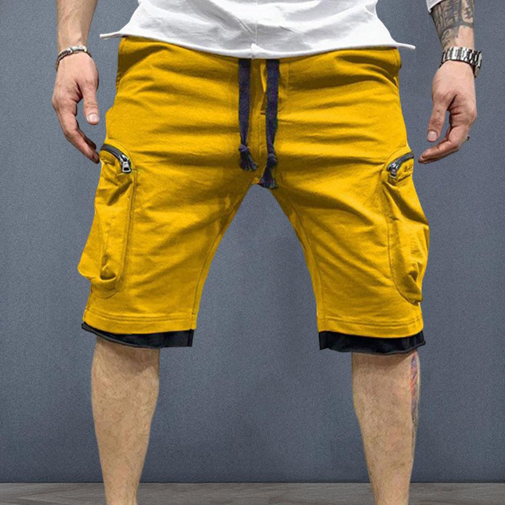 Men Cargo Shorts Elastic Waist Multiple Pockets Zipper Drawstring Streetwear Casual Knee Length Summer Shorts Male Clothes