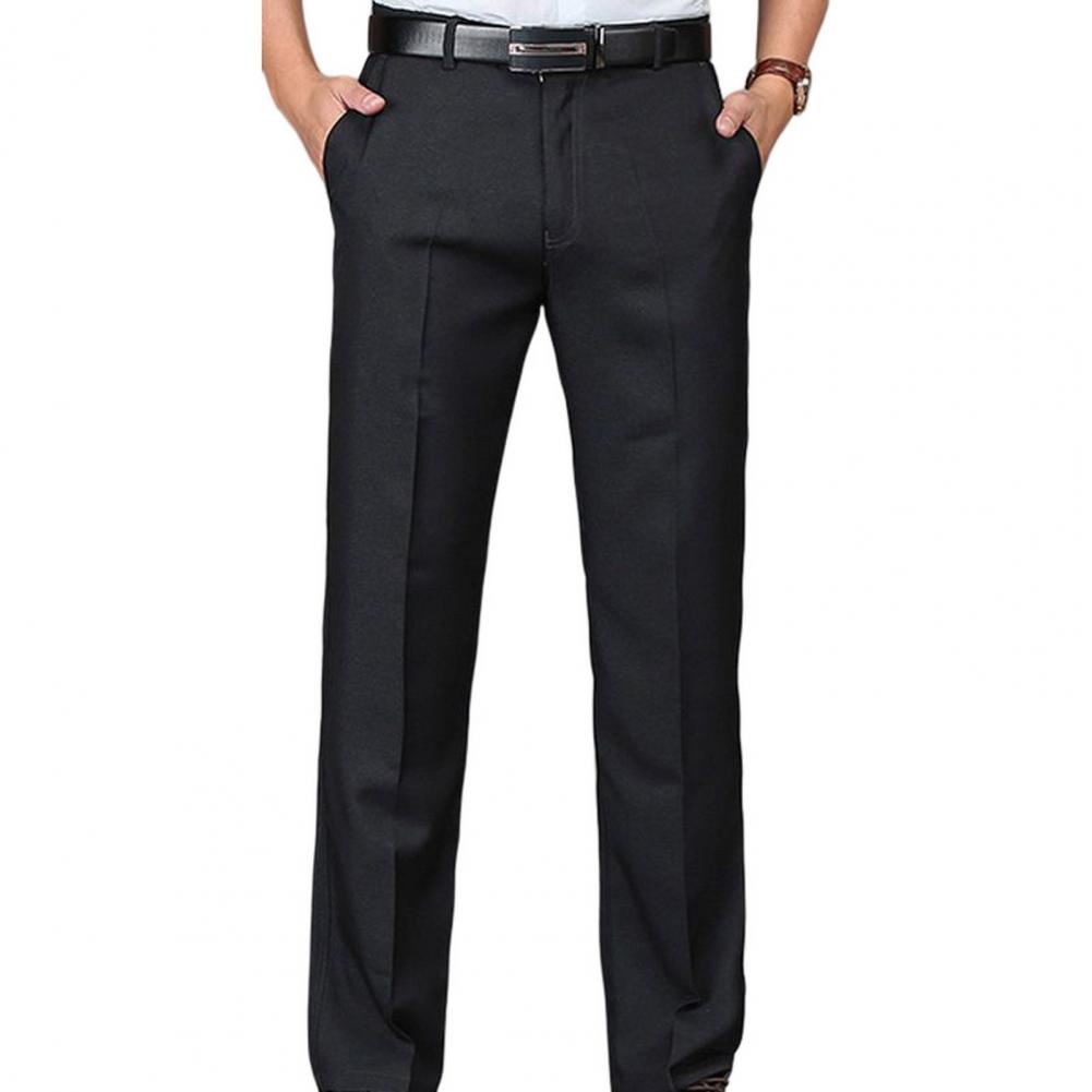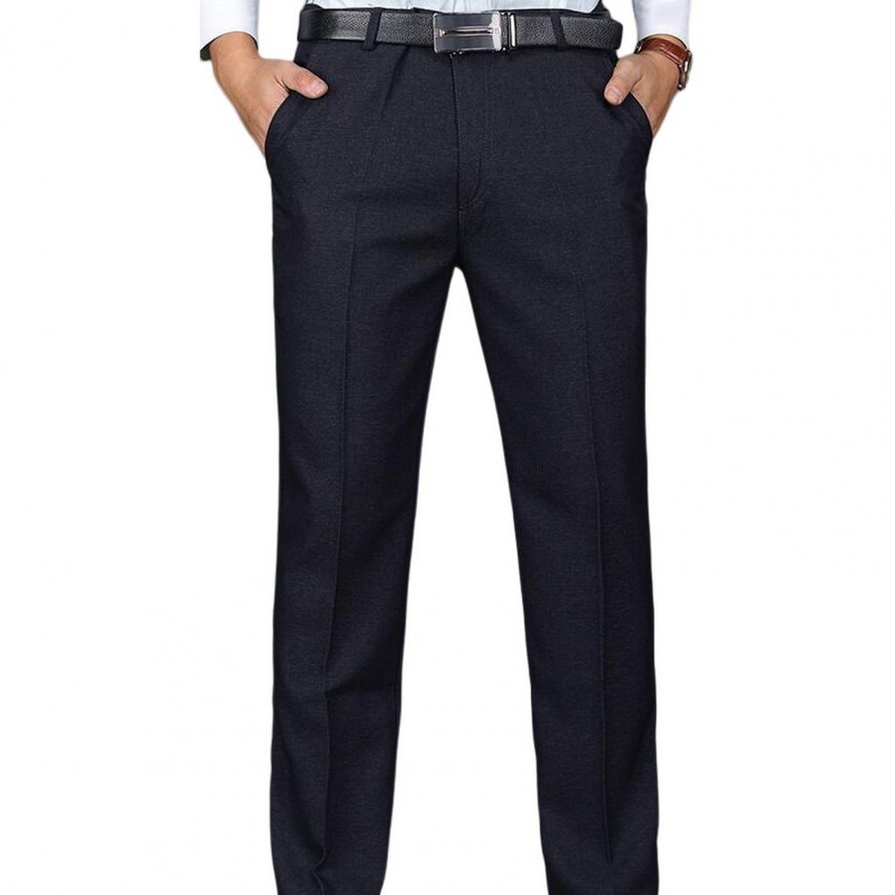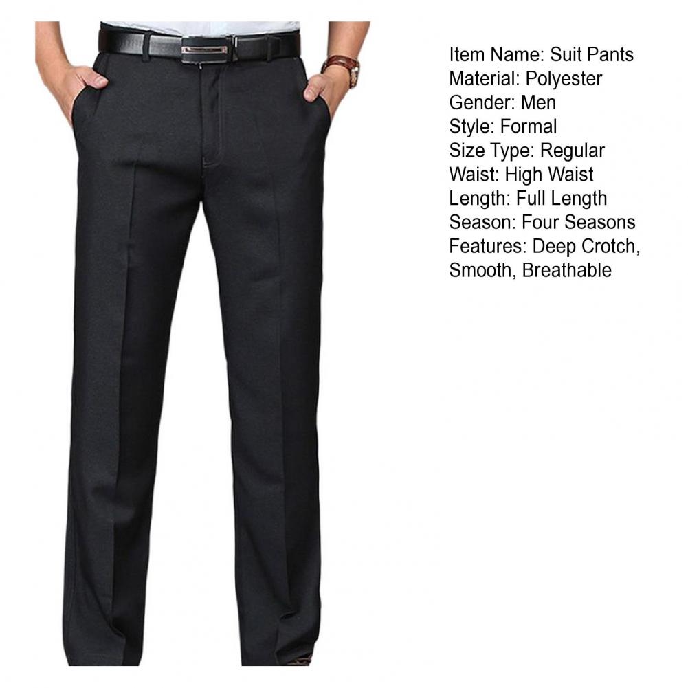 • Men Suit Pants High Waist Straight Solid Color Anti-wrinkle Deep Crotch Match Shirt Pocket Business Groom Suit Pants Men Clothin