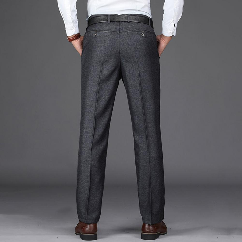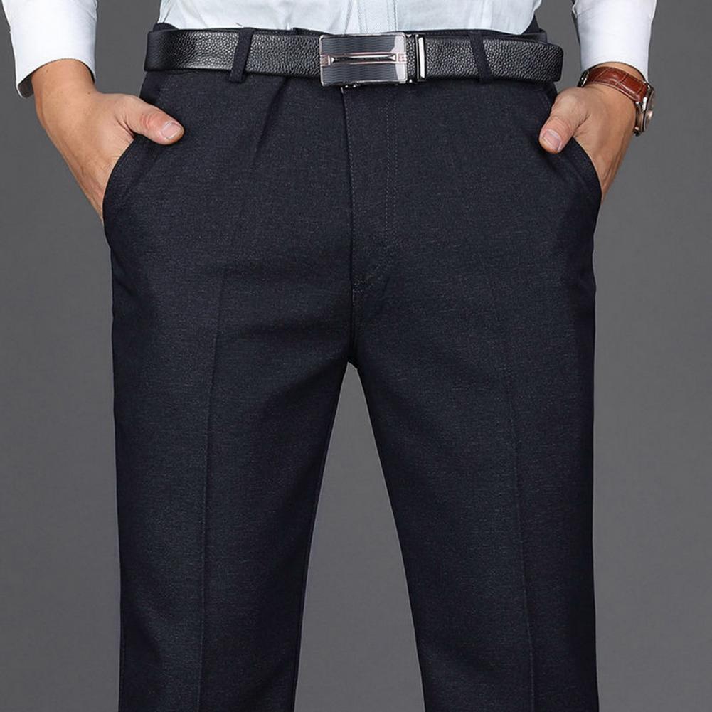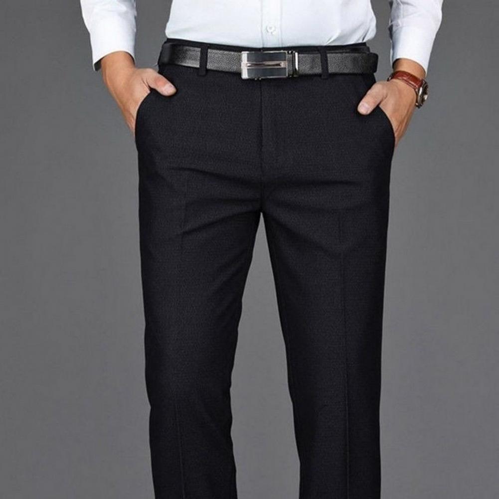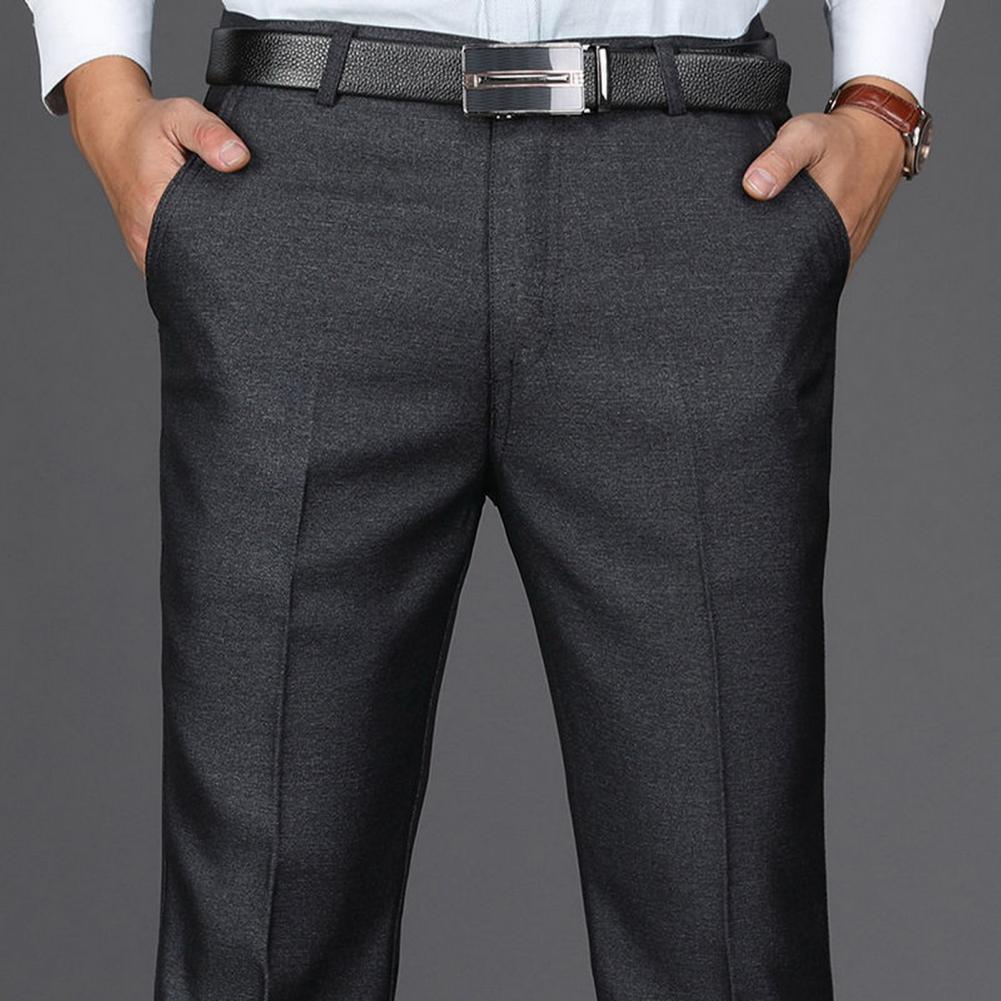 • Men Suit Pants High Waist Straight Solid Color Anti-wrinkle Deep Crotch Match Shirt Pocket Business Groom Suit Pants Men Clothin