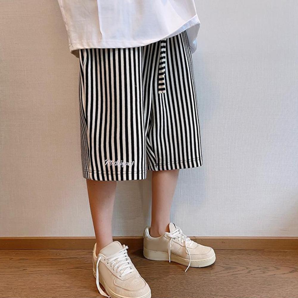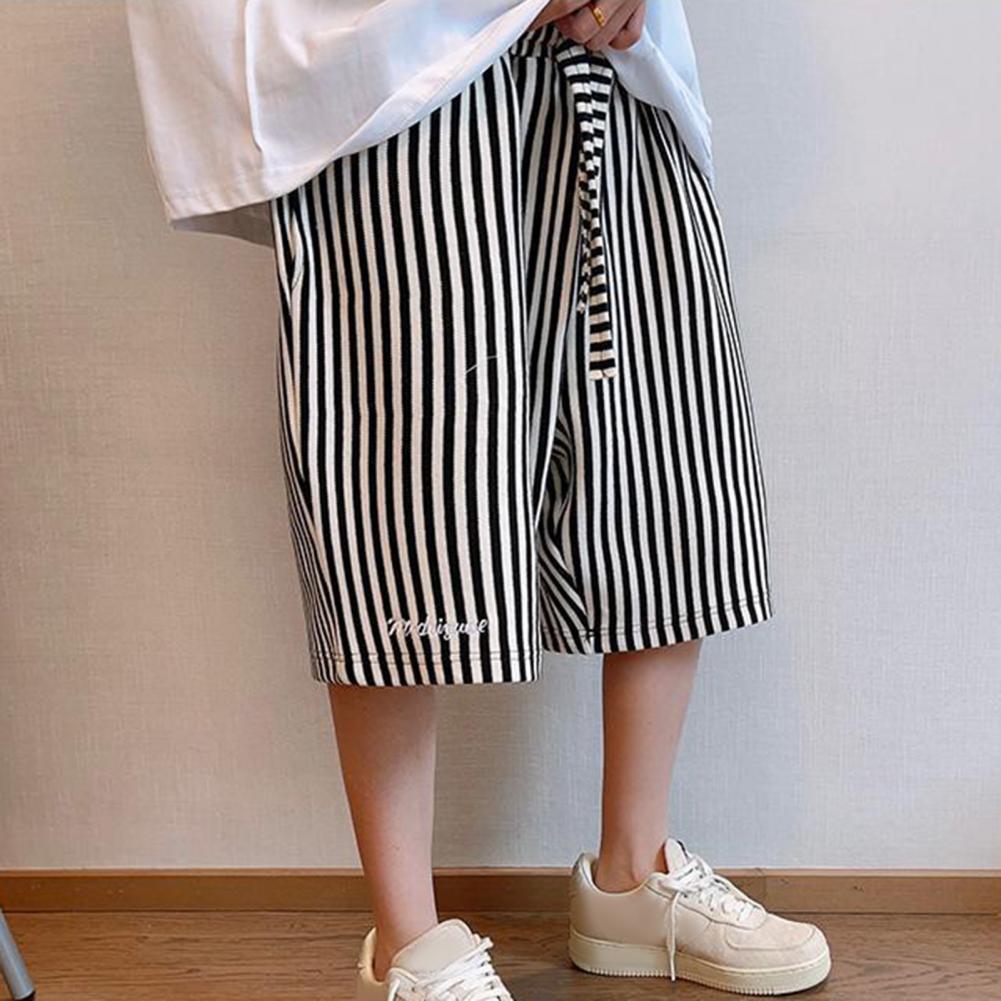 Men Summer Pants Loose Track Pants Fashion High Street Casual Oversized Vertical Stripes Versatile Slimming Cropped Pants for Me