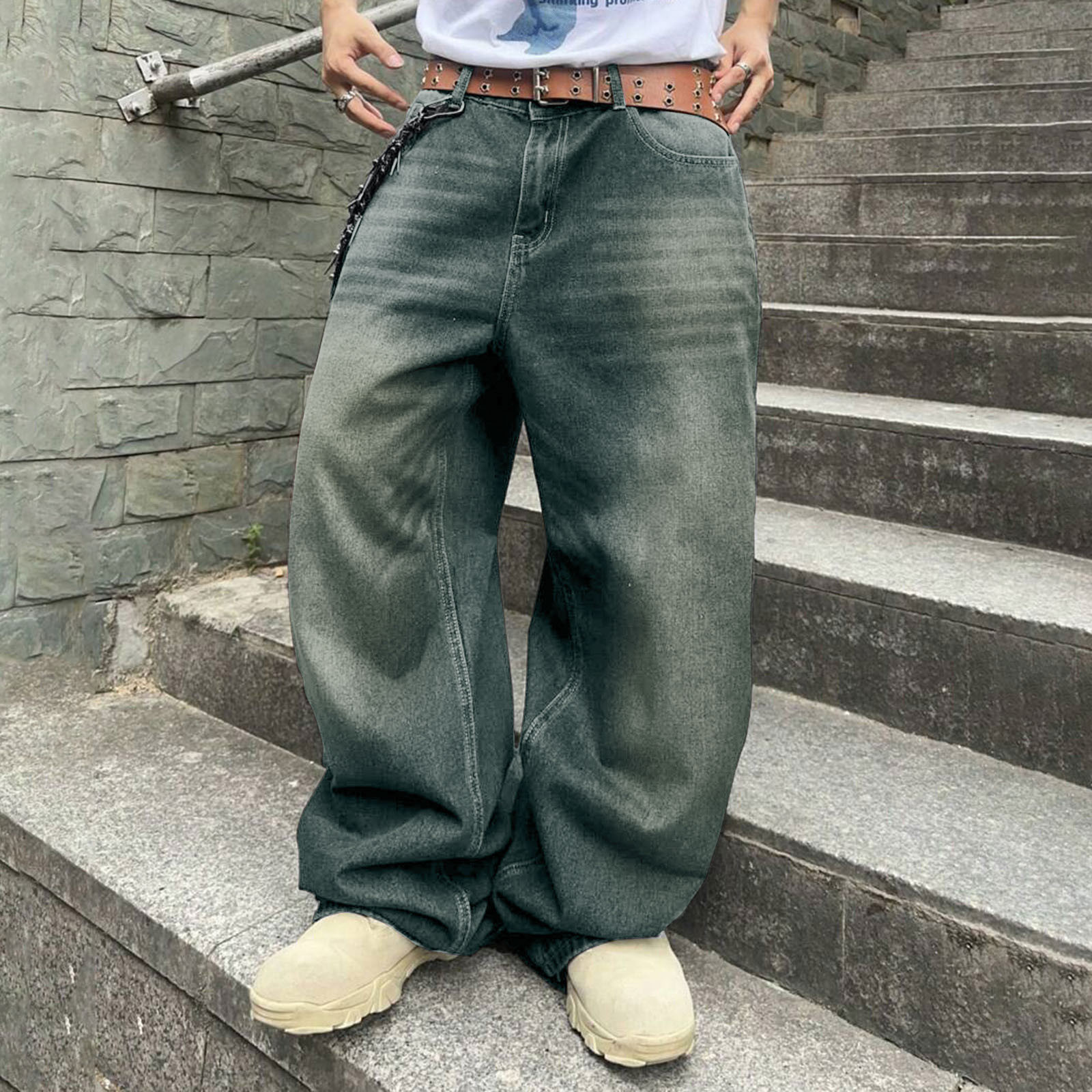 • Men'S Baggy Hip Hop Jeans Wide Leg Skater Denim Pants Casual Versatile Loose Fit Long Trousers Streetwear High Street Ins Trendy