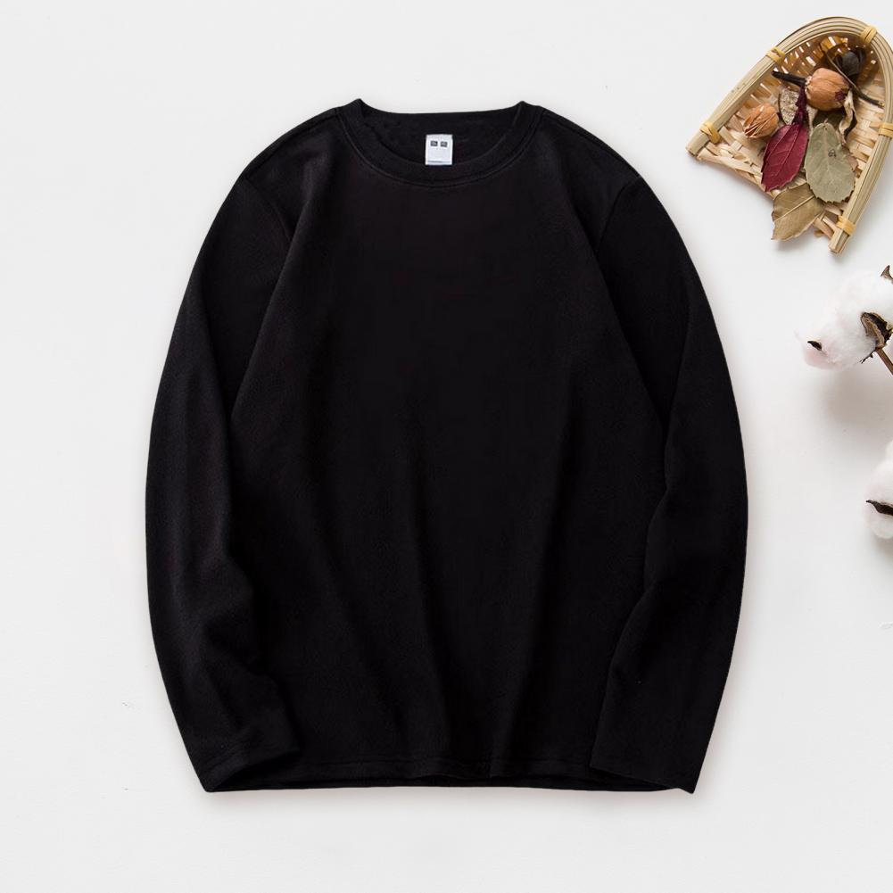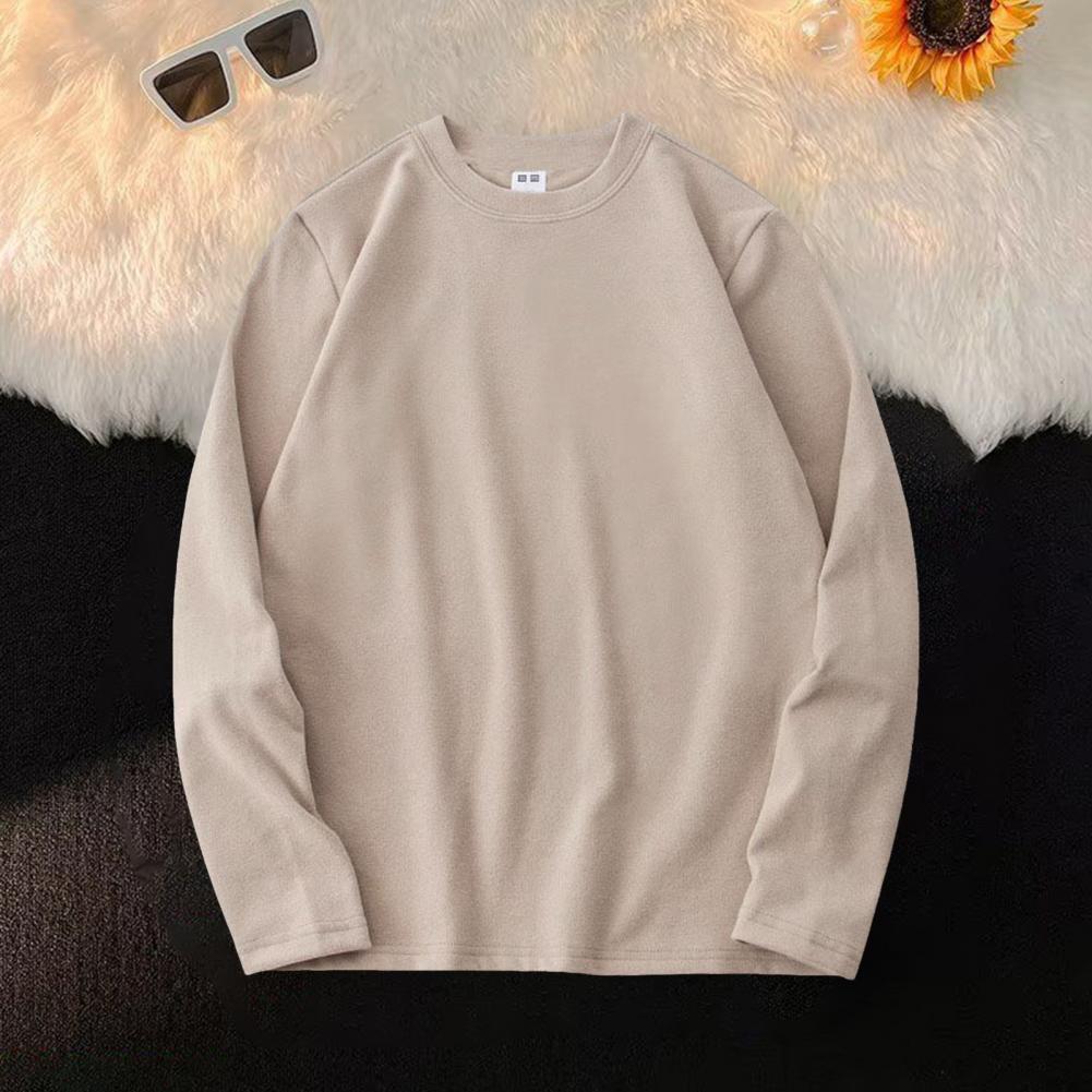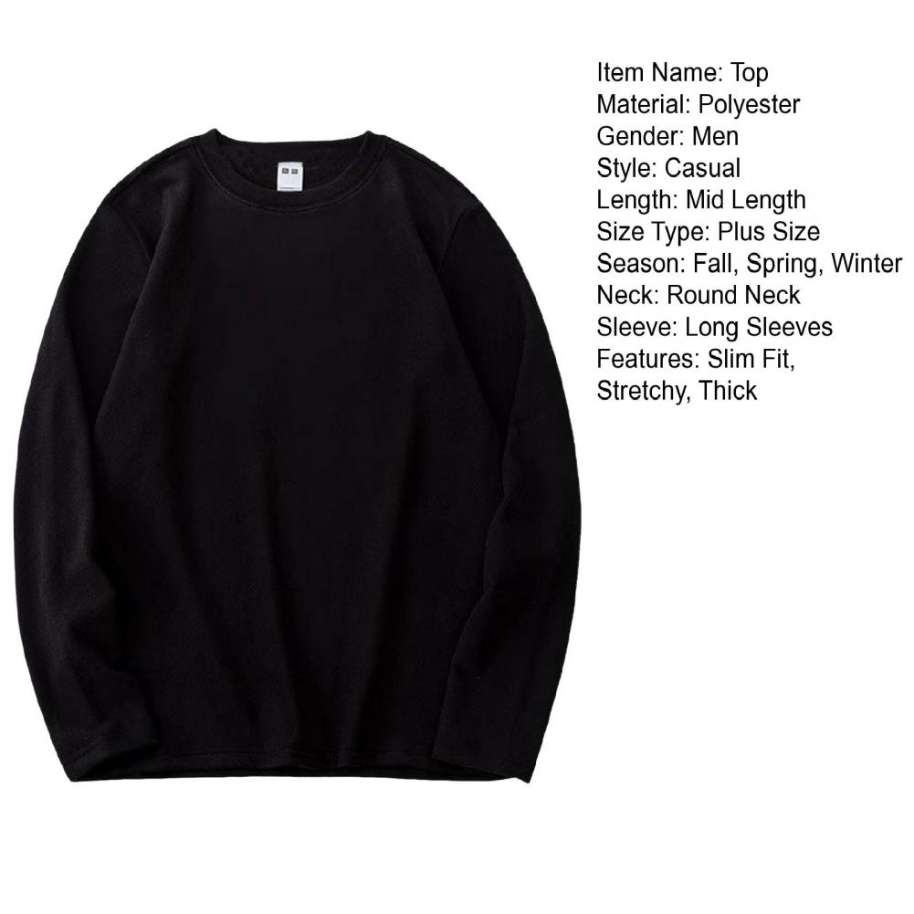 Autumn Spring Men Bottoming Top Slim Fit Thick O Neck Pullover Stretchy Long Sleeves Pure Color Plus Size Mid Length Fitness Exercise Daily Wear Shirt