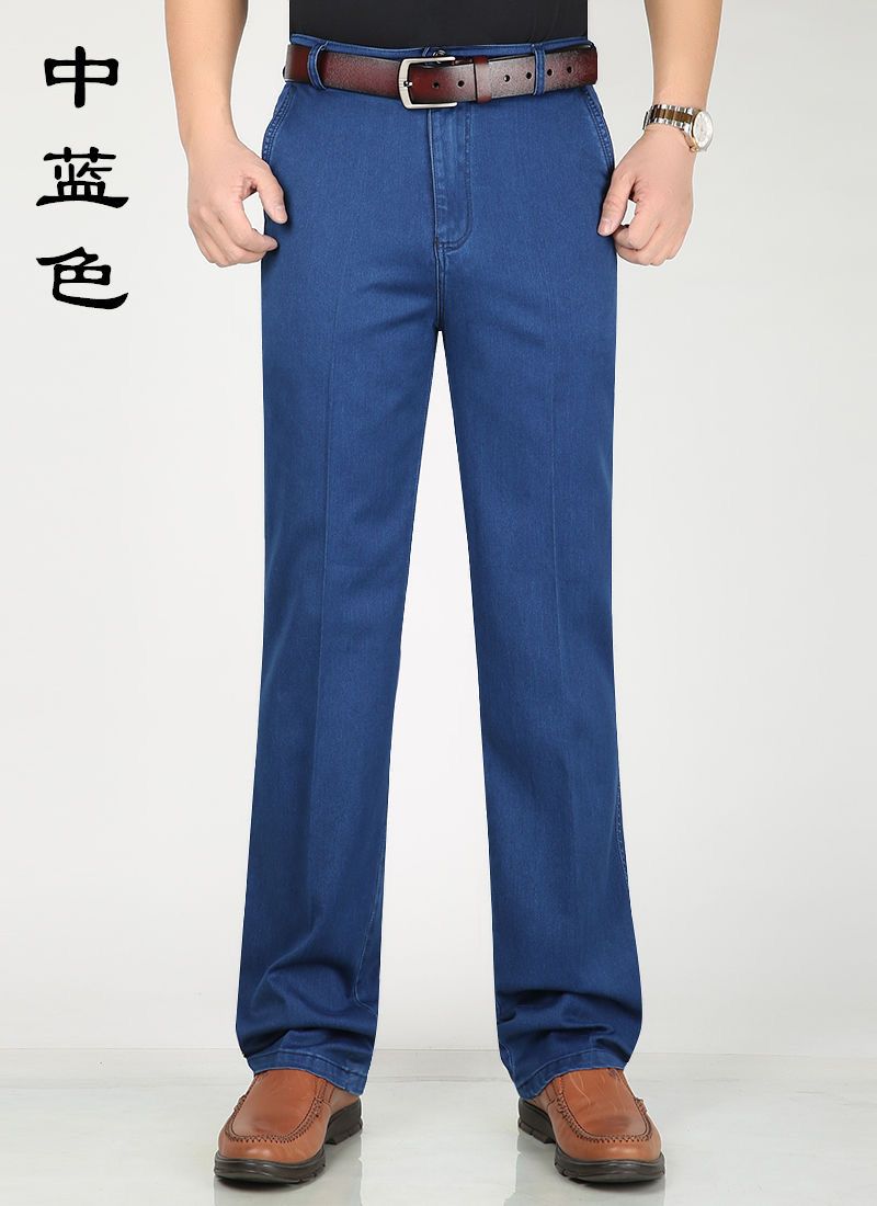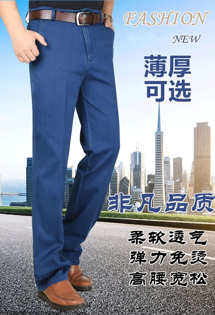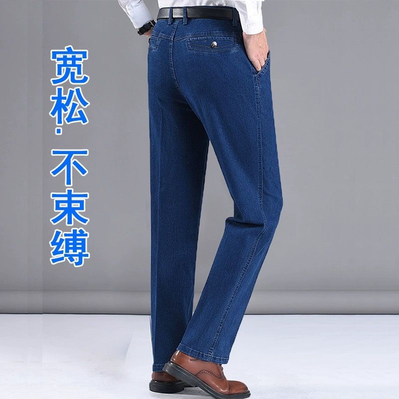 • New Men's Thin Jeans Spring and Summer High-end Casual Men's Pants Loose High-waisted Straight Elastic Jeans