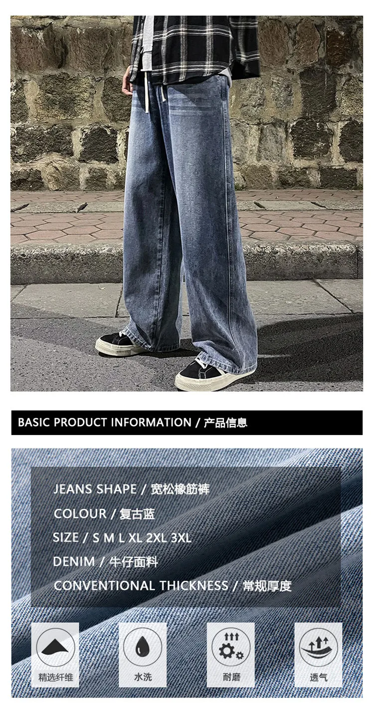 • Spring and Autumn New Men's Jeans High Street Wide Leg Pants Pants Washed Drawstring Pants Trend Baggy Jeans 2024 jeans