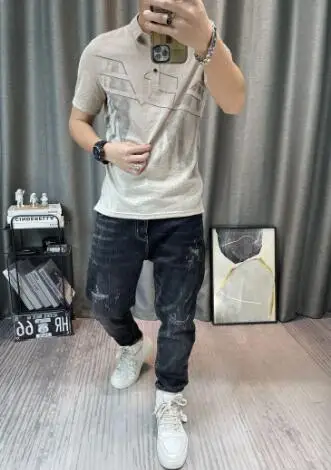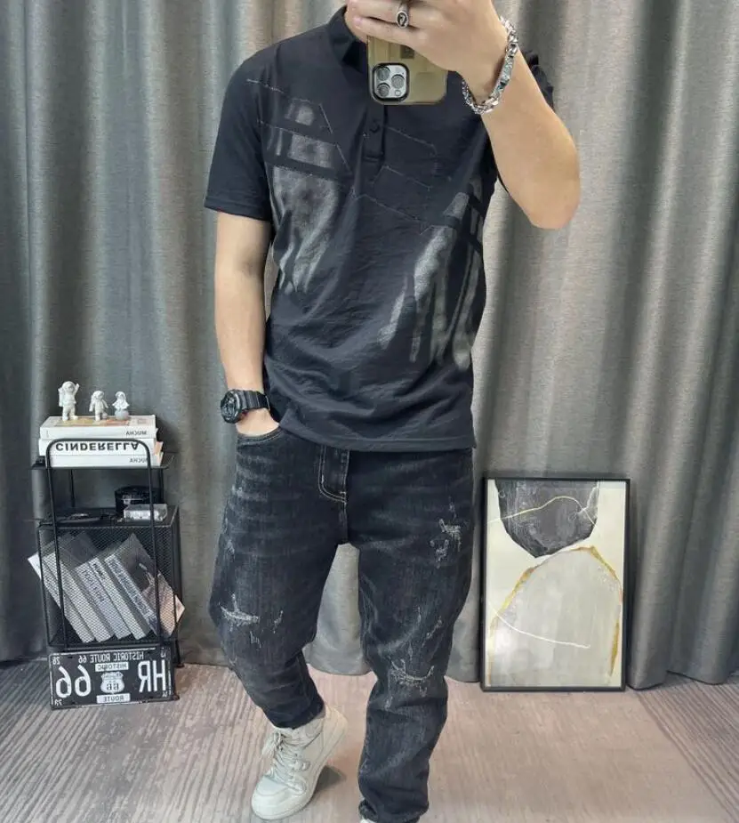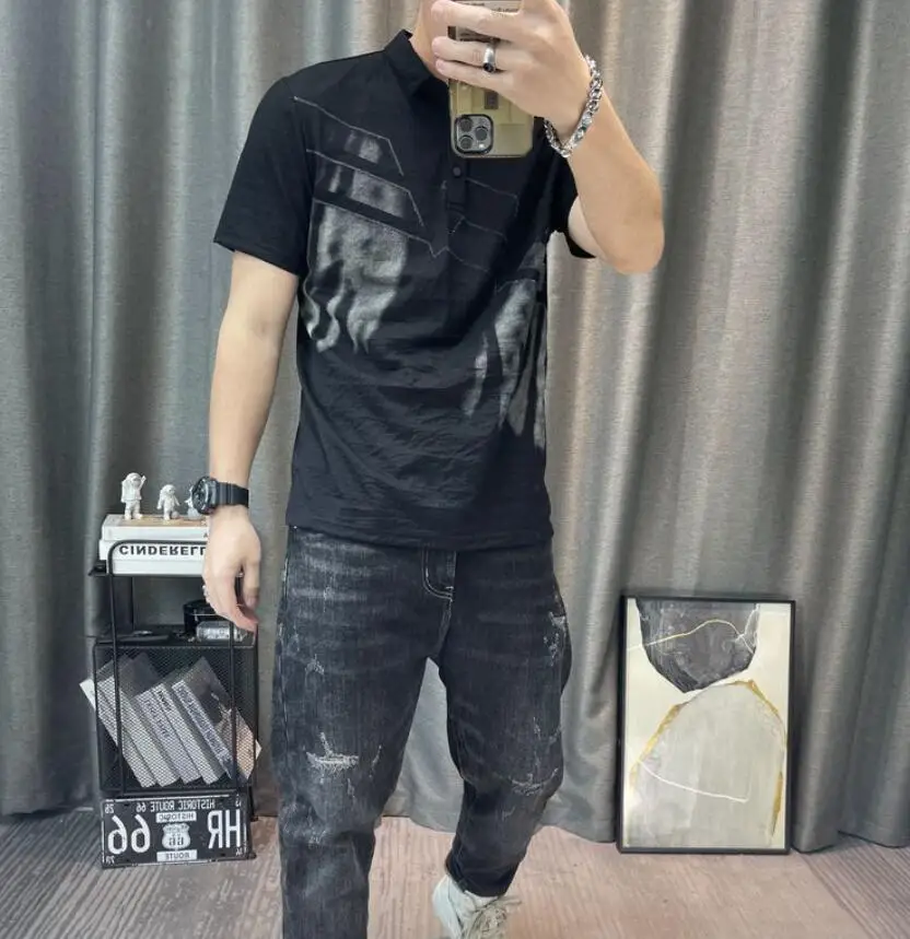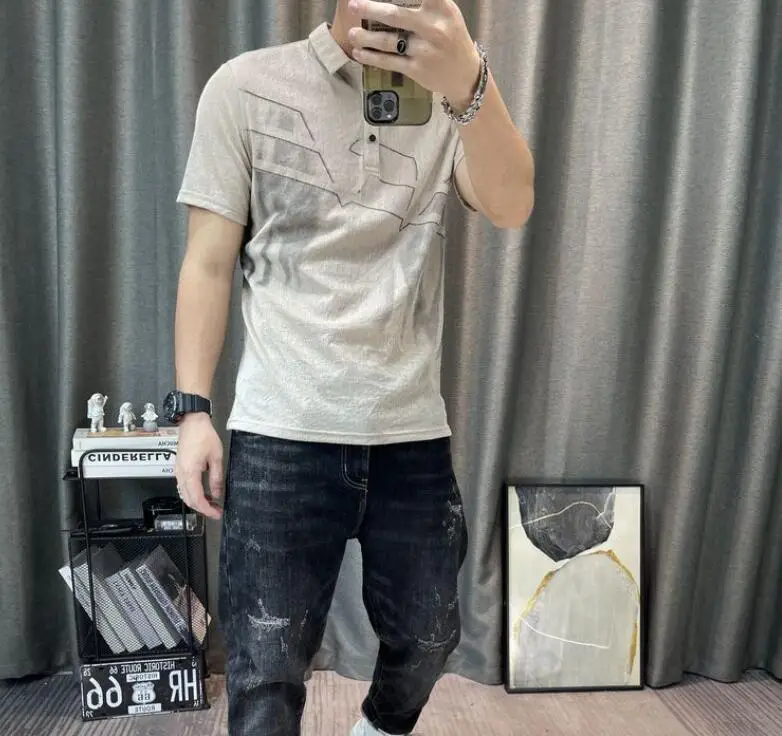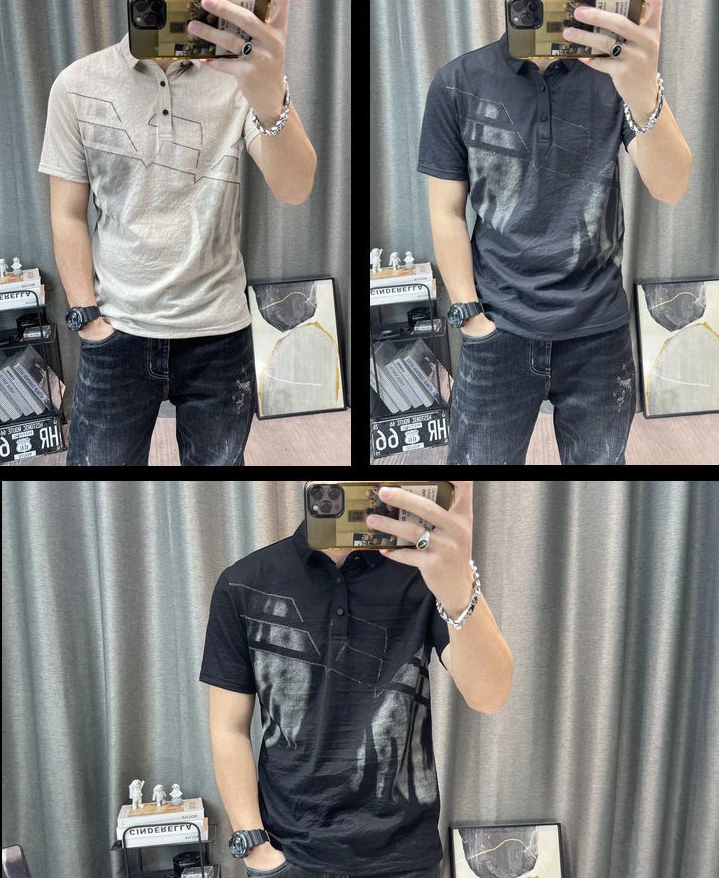 • Top Watercolor Clothes Print with Collar Male Tee Shirts Graphic Streetwear Fashion Polo Men's T-shirt Xl Wholesale Slim Fit Hot