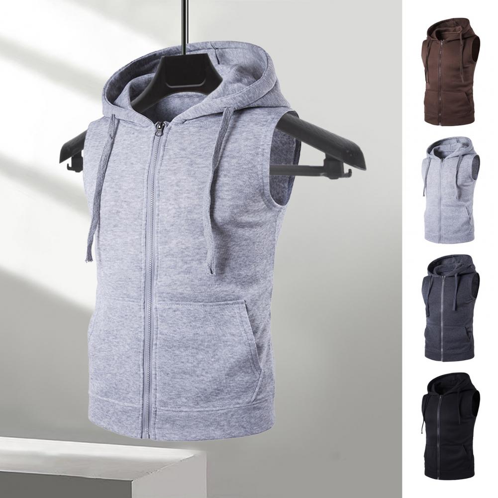 • 2024 New Men's Hooded Zipper Pocket Sleeveless Vest Coat Hoodie with a Zipper Clothes for Men Waistcoat