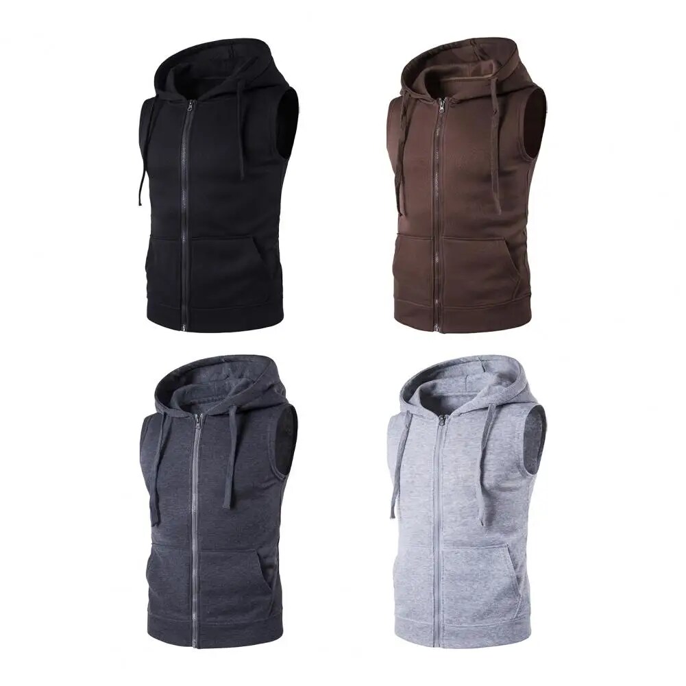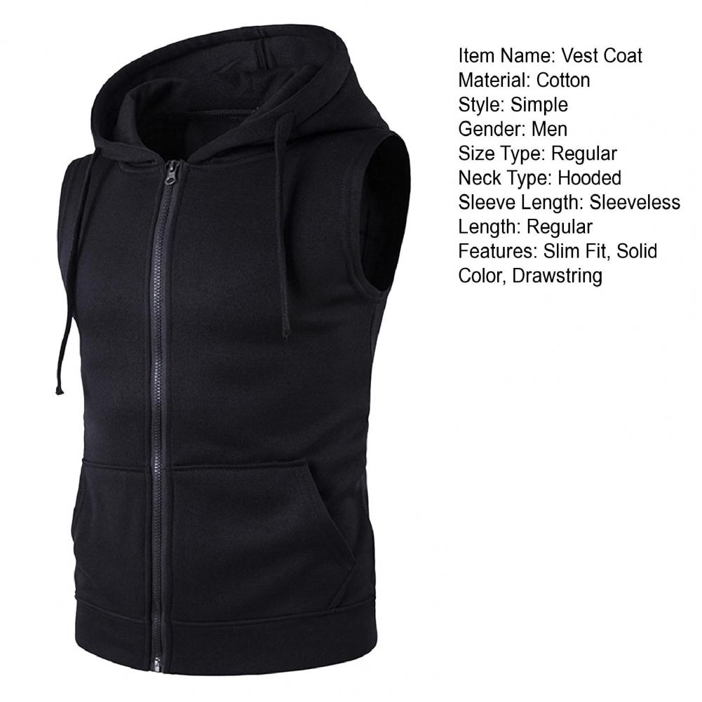 Men Summer Vest Jacket Hooded Drawstring Sleeveless Zipper Placket Vest Coat Solid Color Pockets Zipper Placket Waistcoat