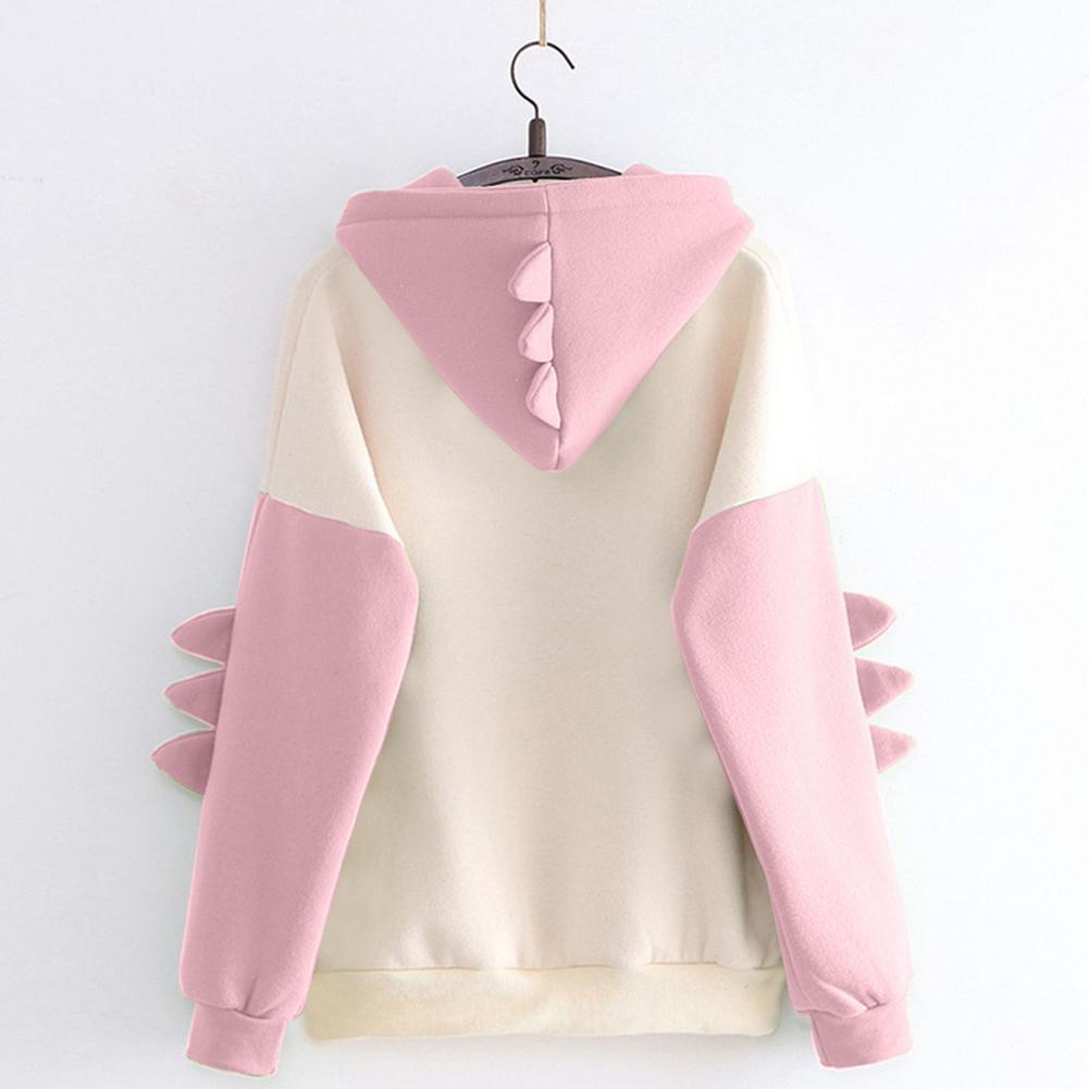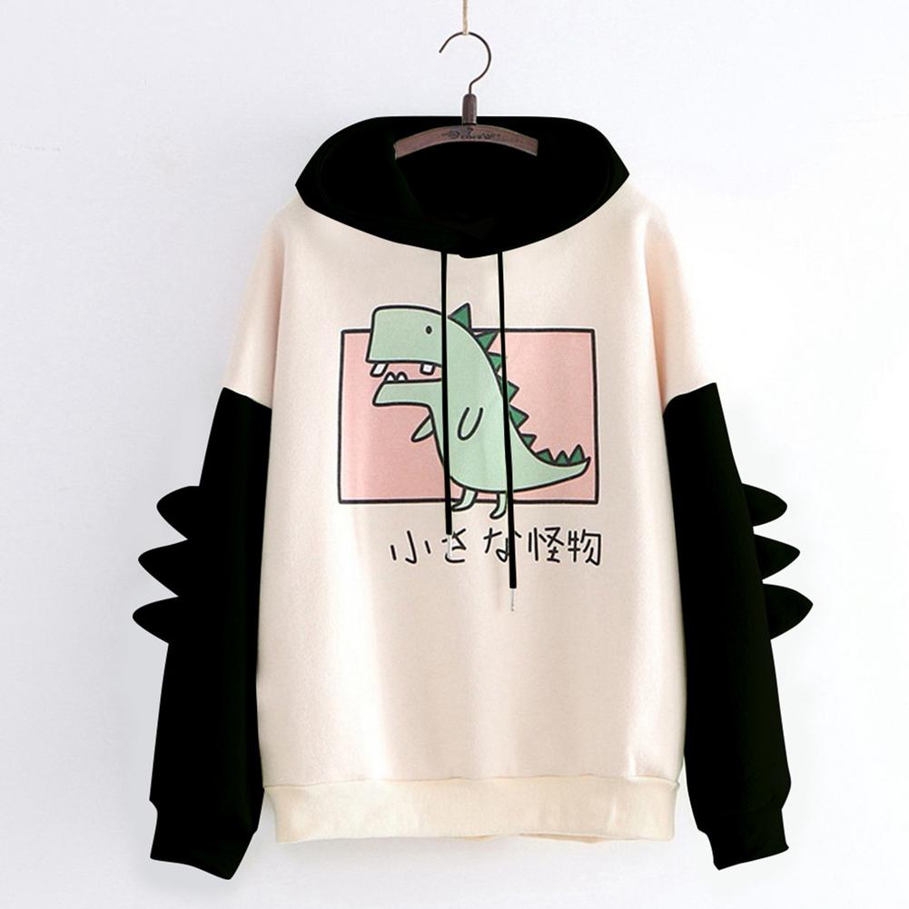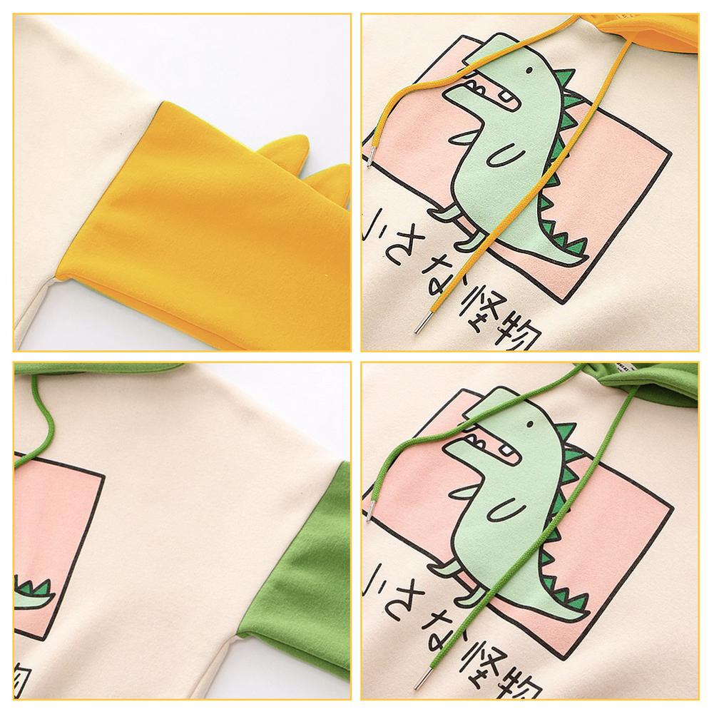 Cute Dinosaur Cartoon Hoodie Women Fashion Sweatshirt Casual Print Long Sleeve Korean Style Splice Tops Kawaii Clothes