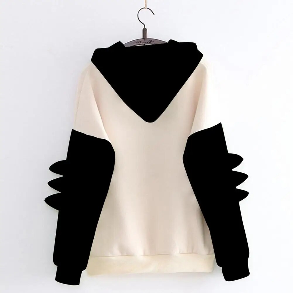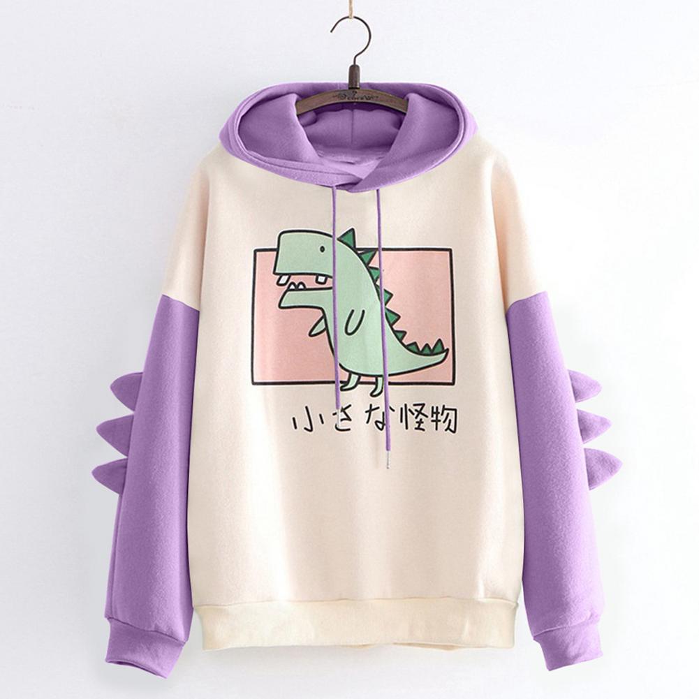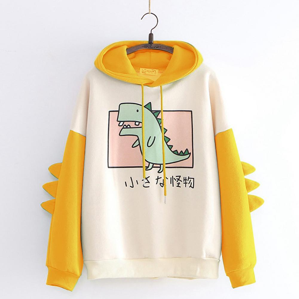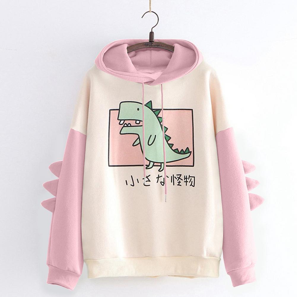 Cute Dinosaur Cartoon Hoodie Women Fashion Sweatshirt Casual Print Long Sleeve Korean Style Splice Tops Kawaii Clothes