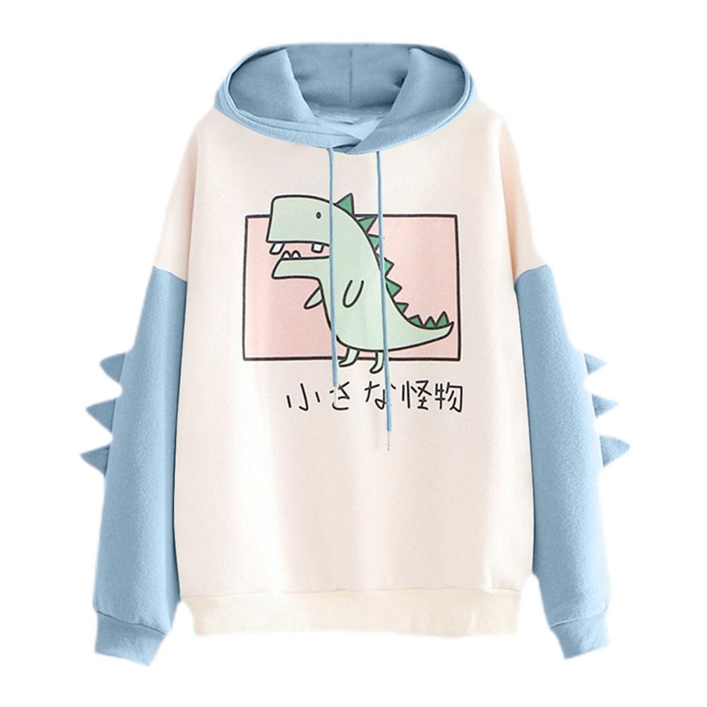 2、Cute Dinosaur Hoodie: Women teen animal anime cute dinosaur role-playing cartoon hoodie top. There are many sizes and colors.