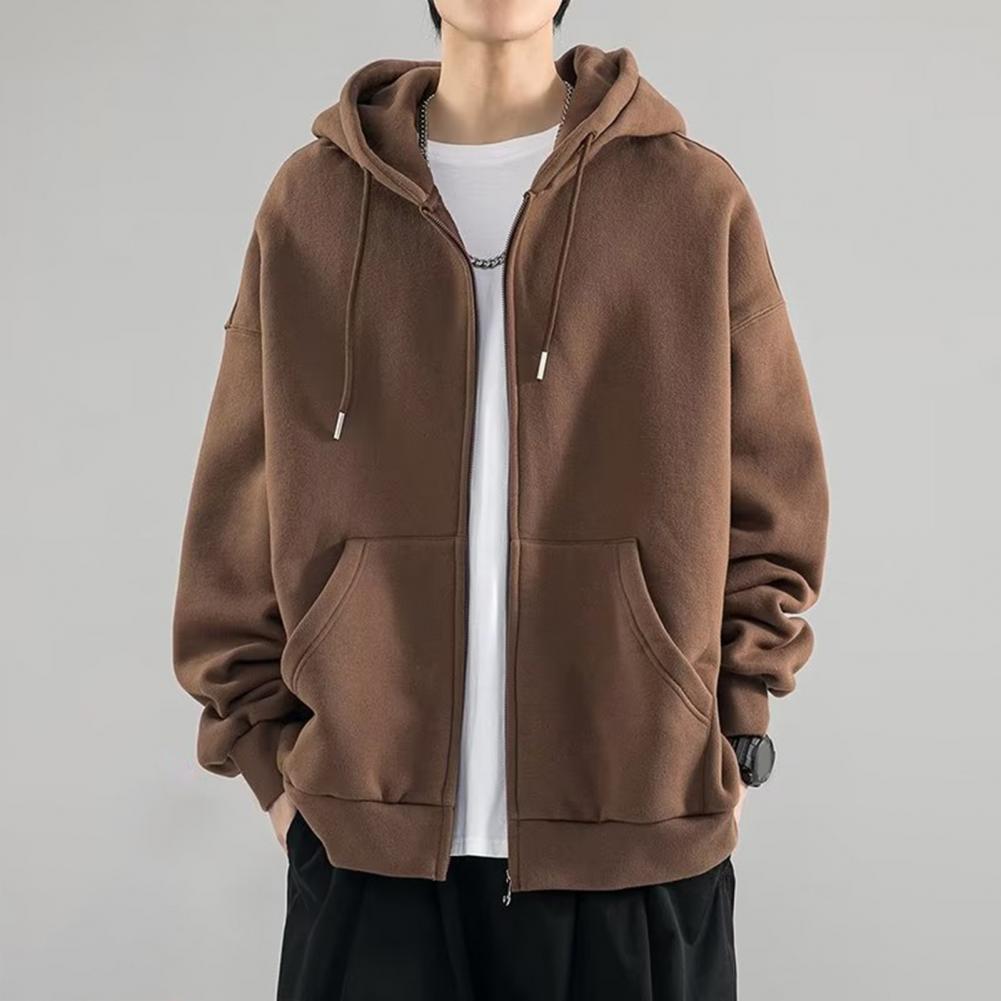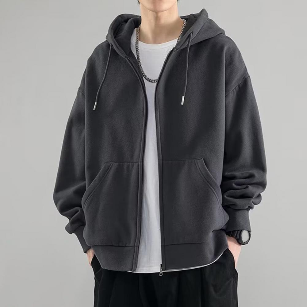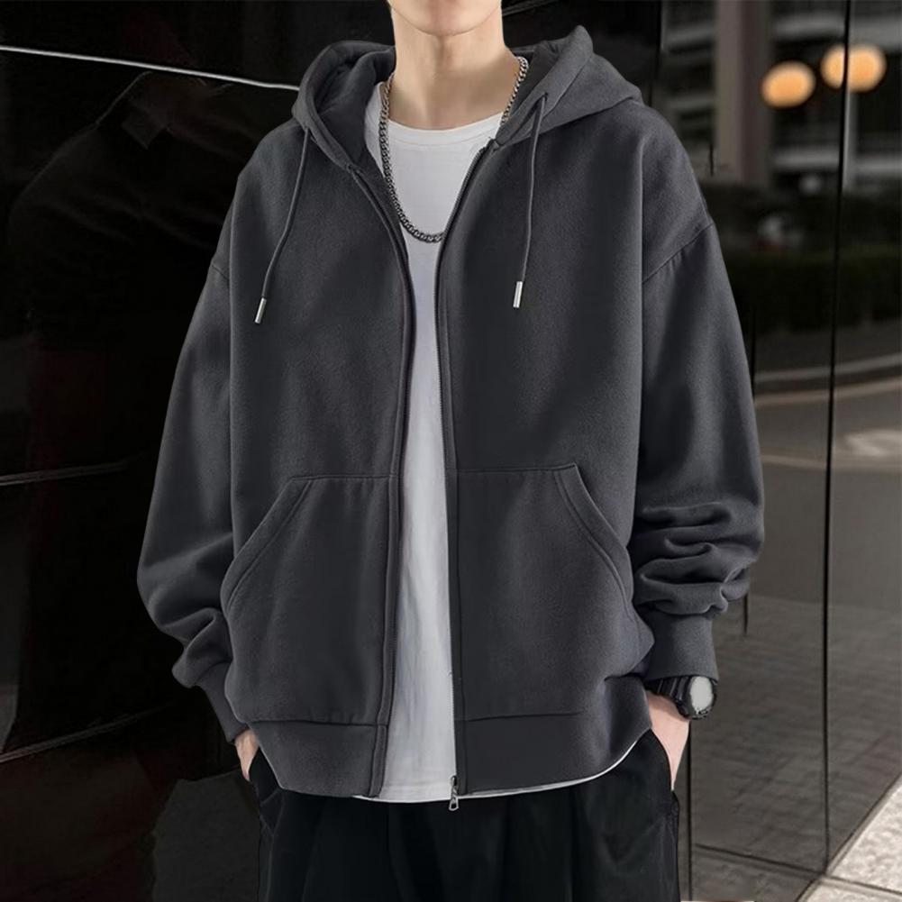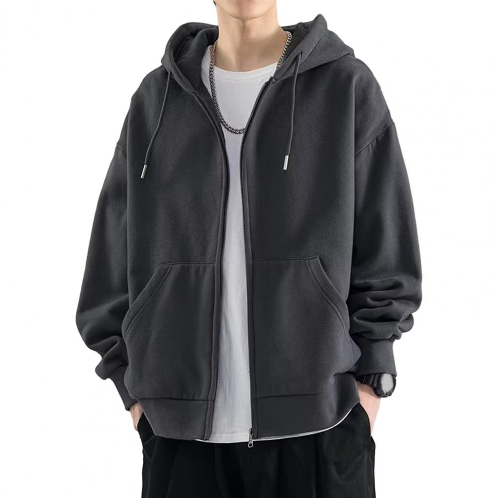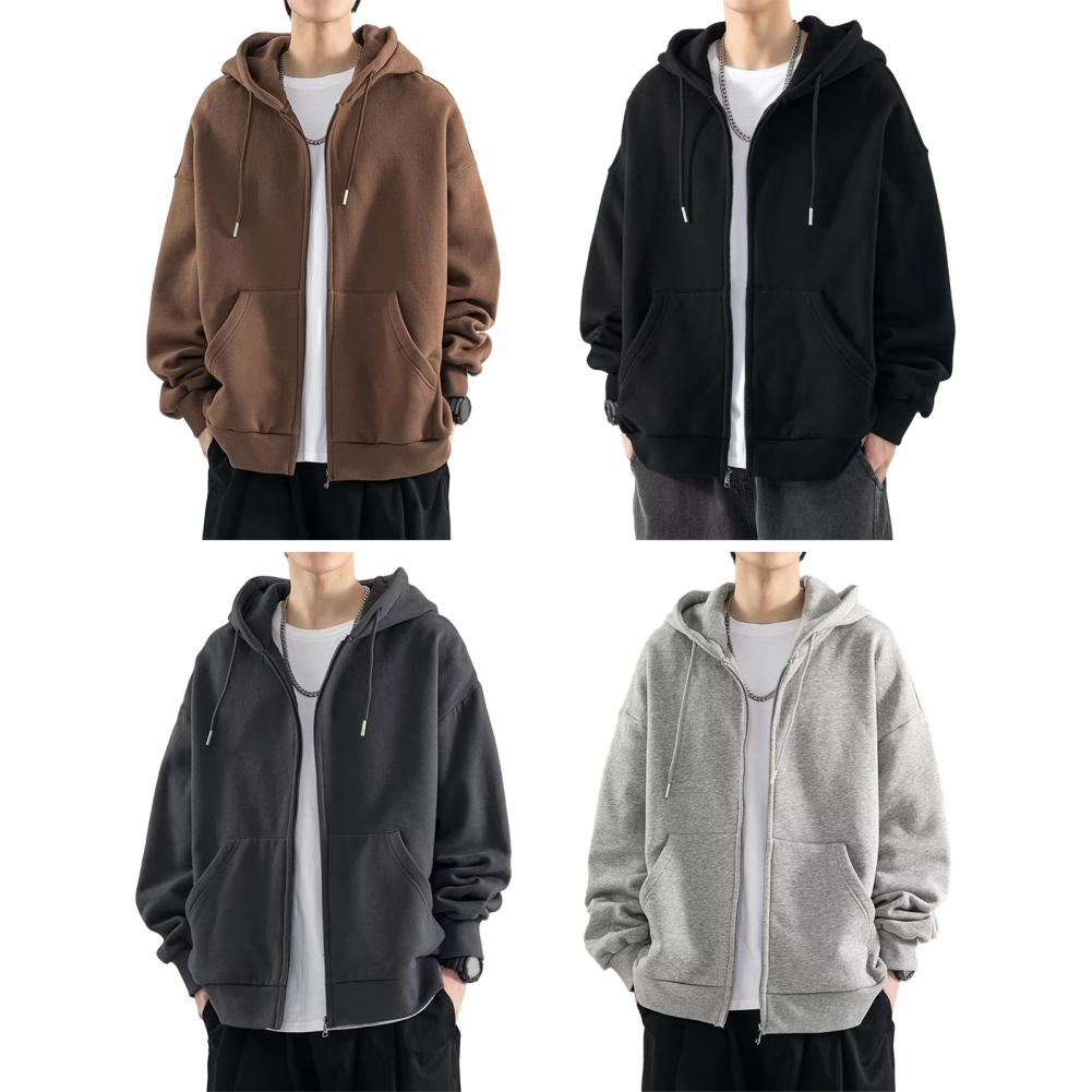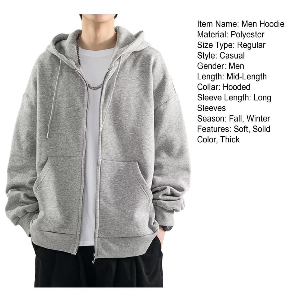 Men Autumn Winter Hoodie with Zipper Solid Color Long Sleeve Hooded Coat Male Cozy Stylish Outerwear