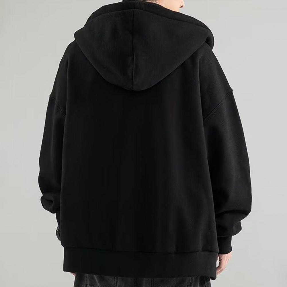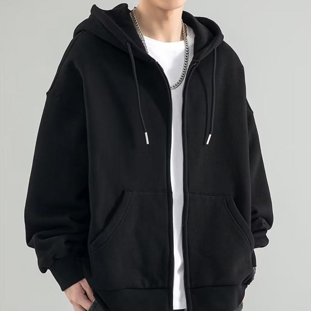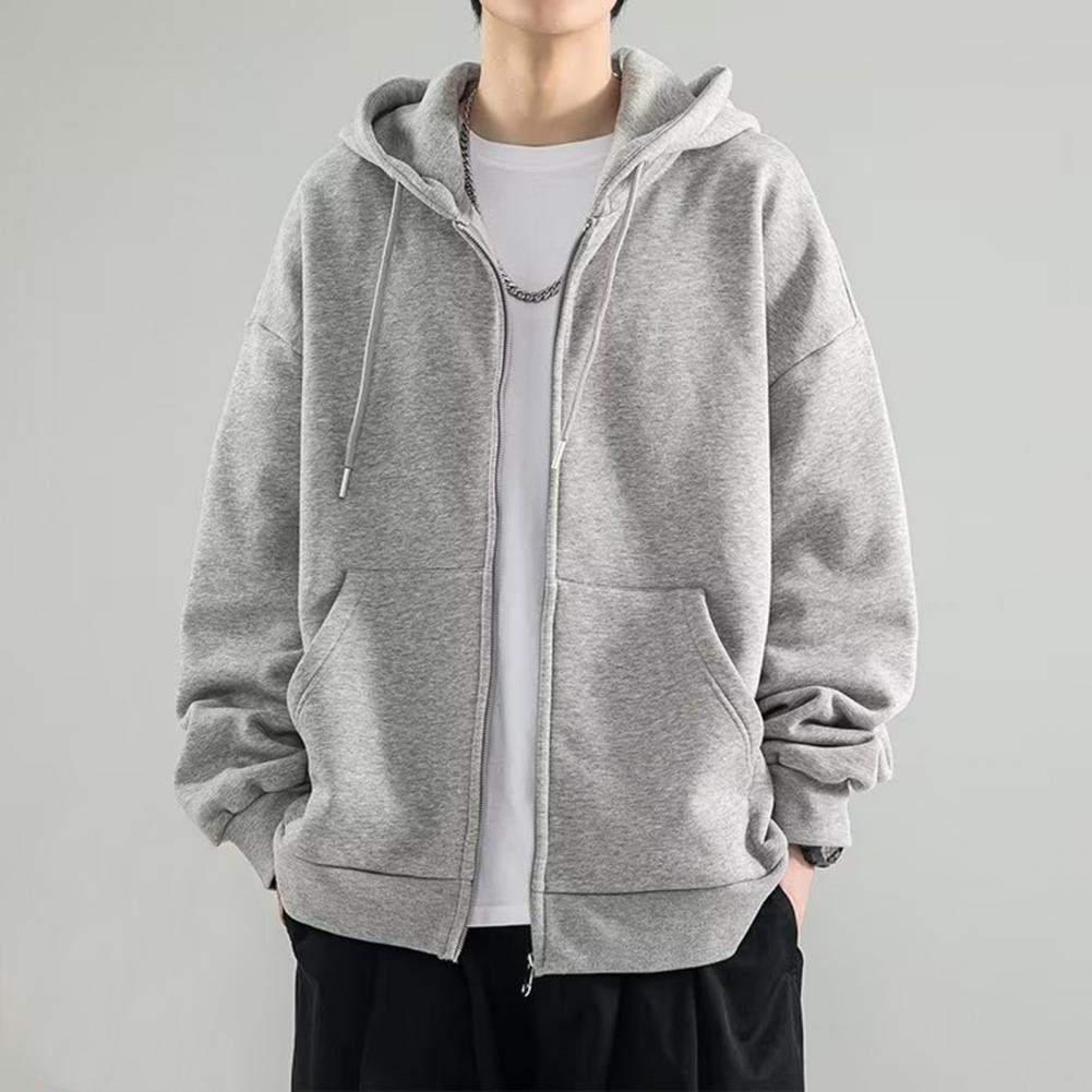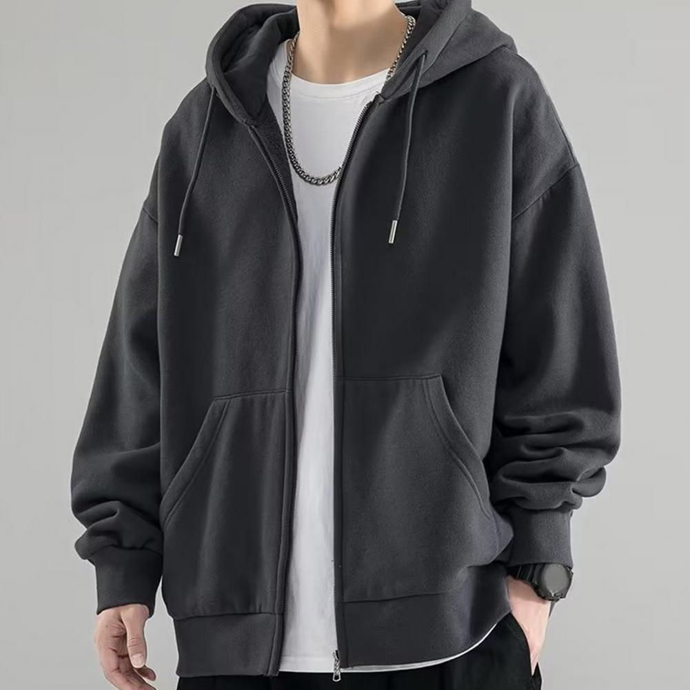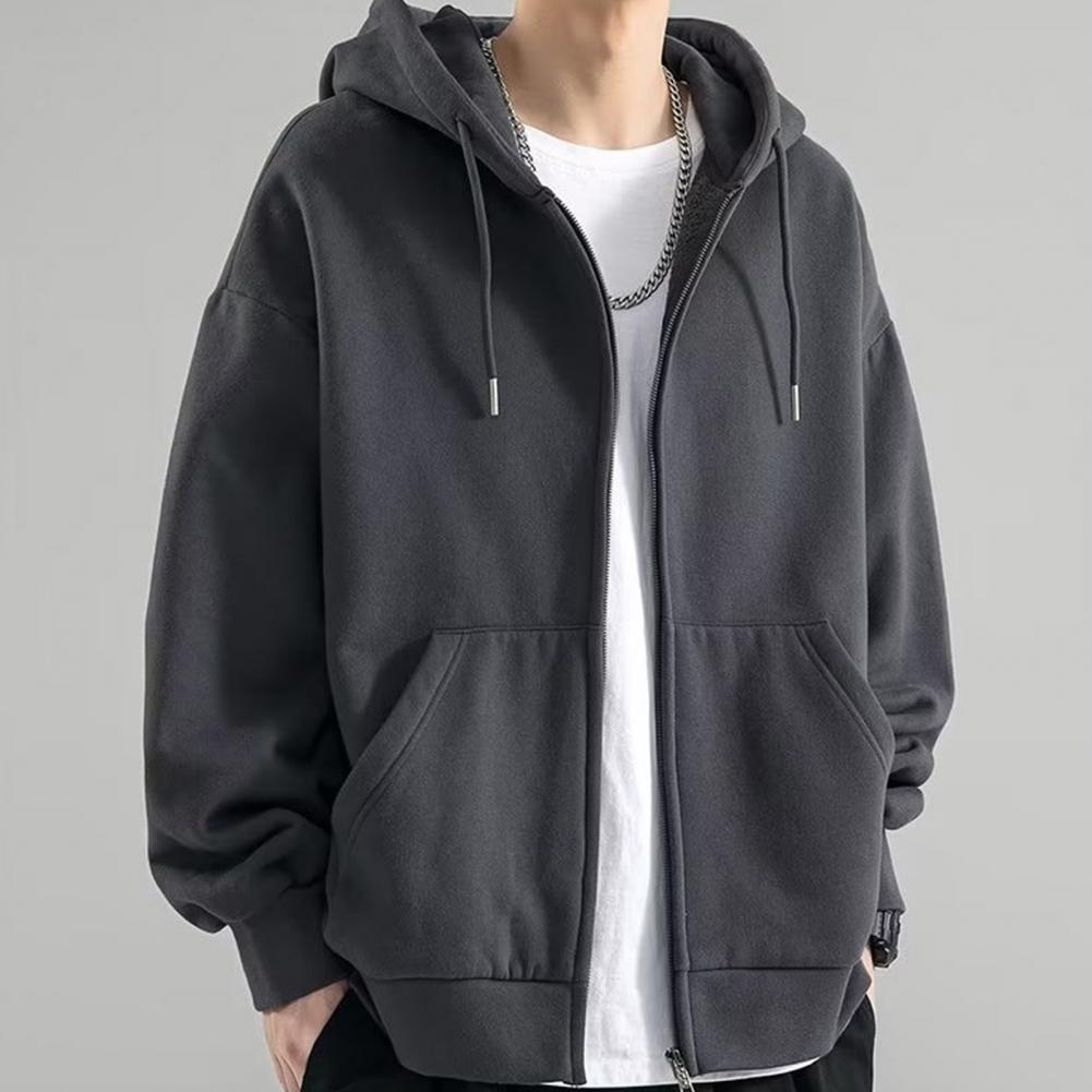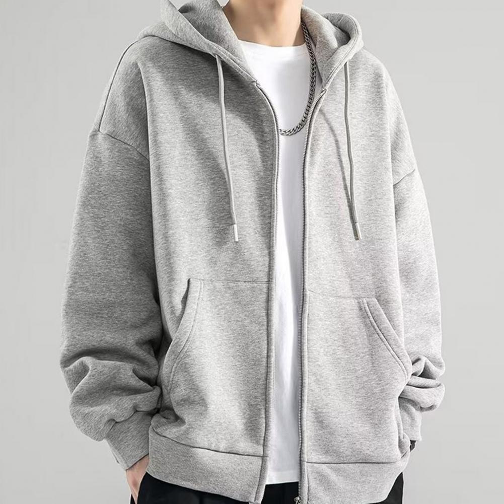 Men Autumn Winter Hoodie with Zipper Solid Color Long Sleeve Hooded Coat Male Cozy Stylish Outerwear
