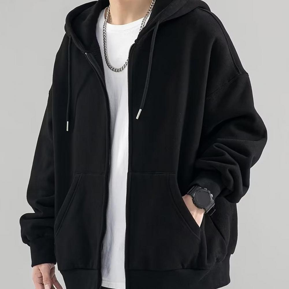 Our stylish hooded coat with a zipper design and solid color that never goes out of style.