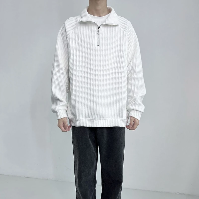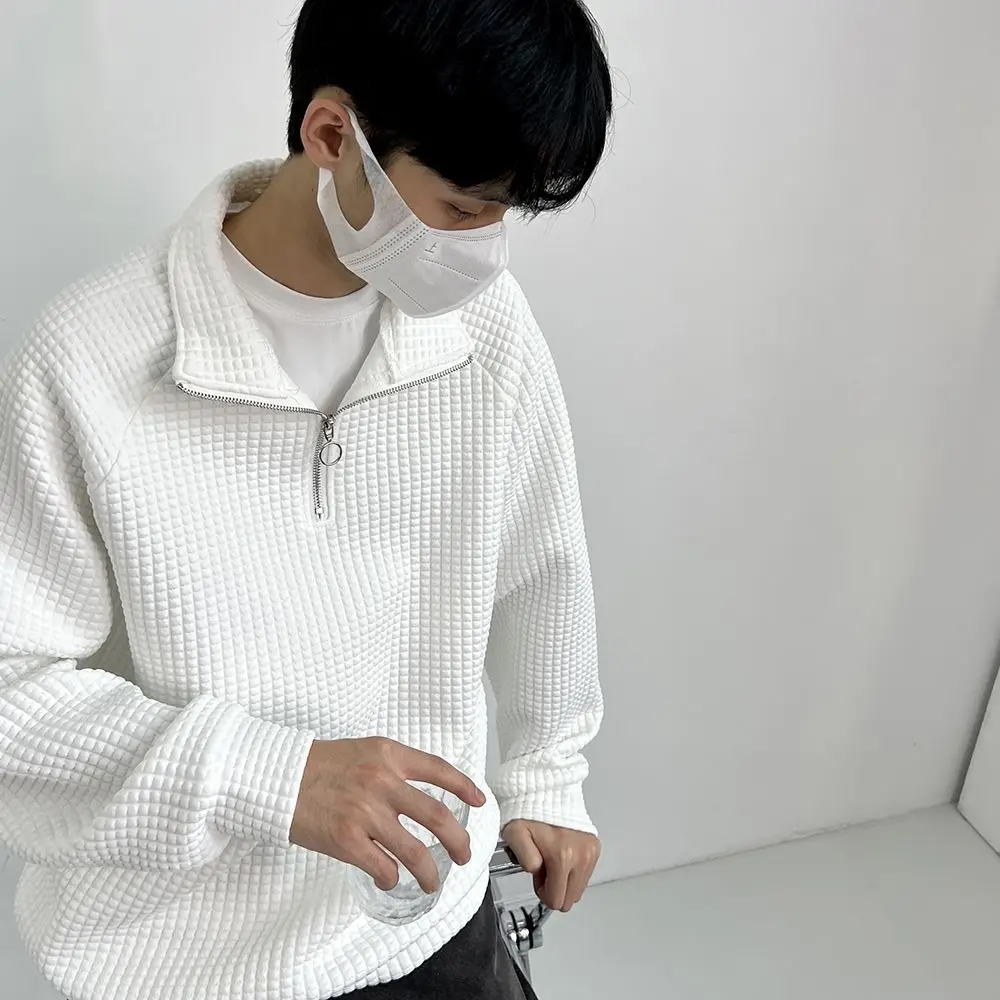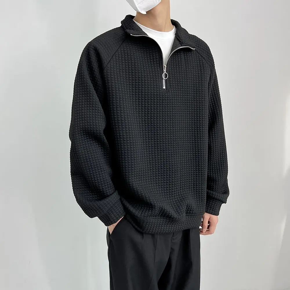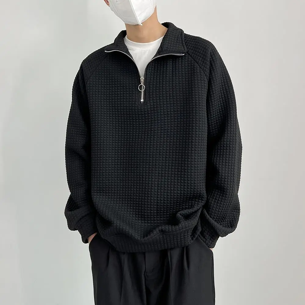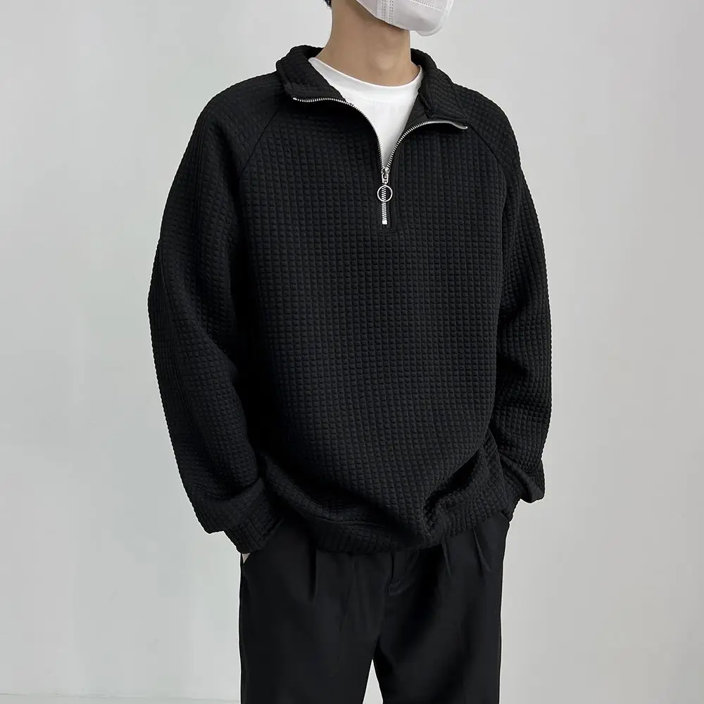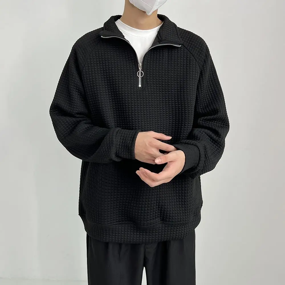 • Male Clothes Hoodieless Half Zip Top Sweatshirt for Men Solid Pullover Black Overfit No Brand Cotton Designer Sweat Shirt Winter