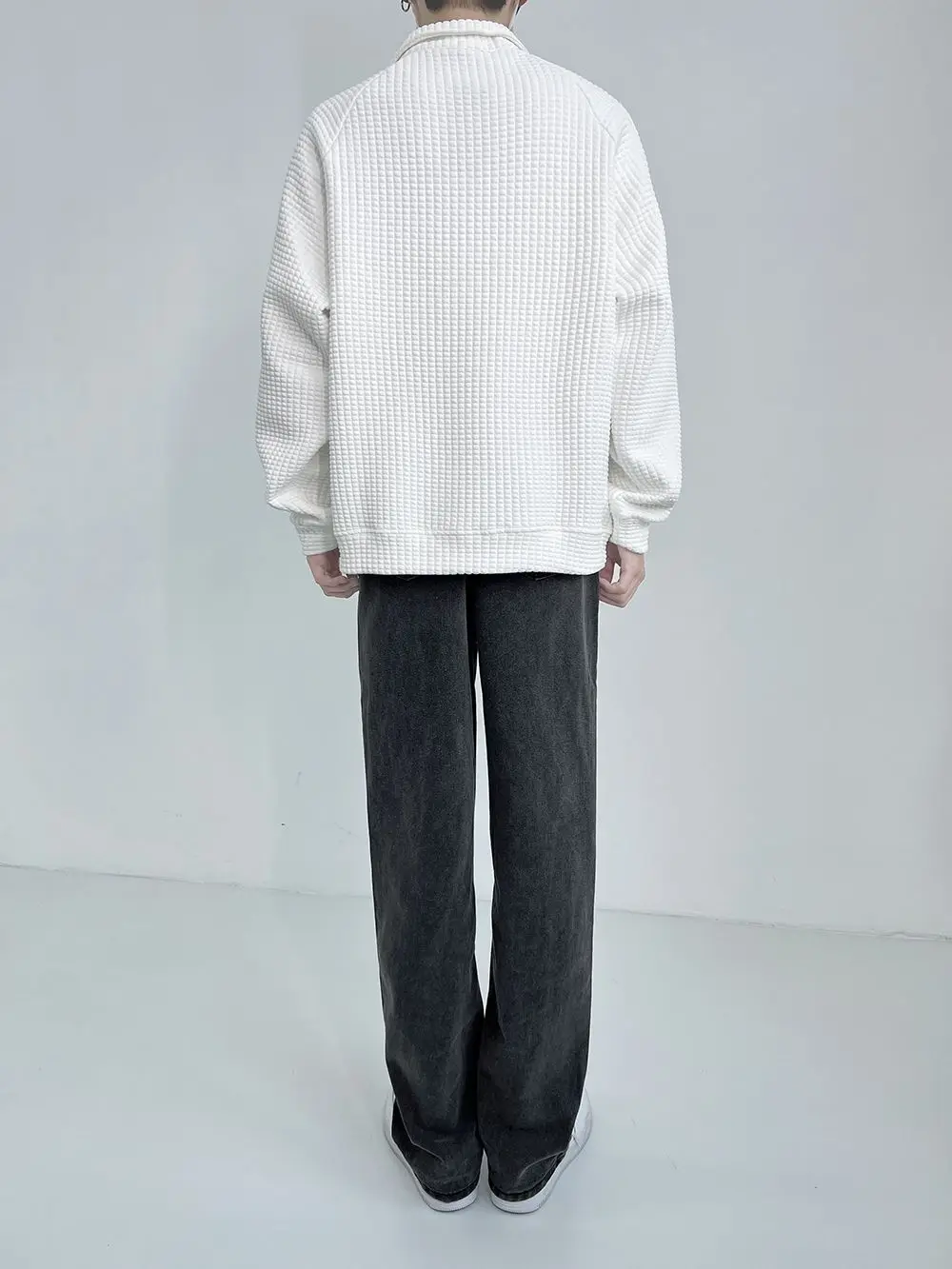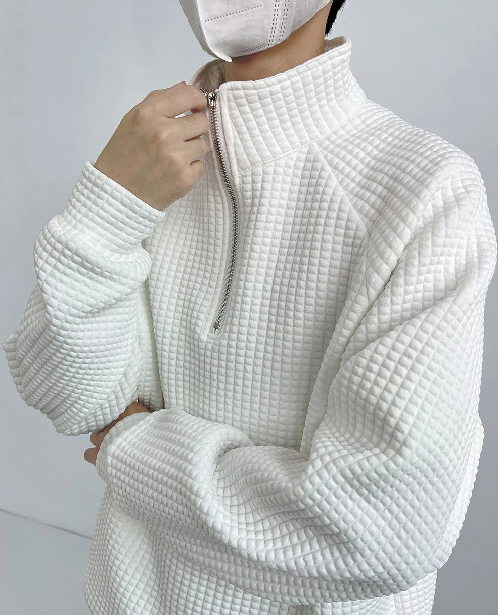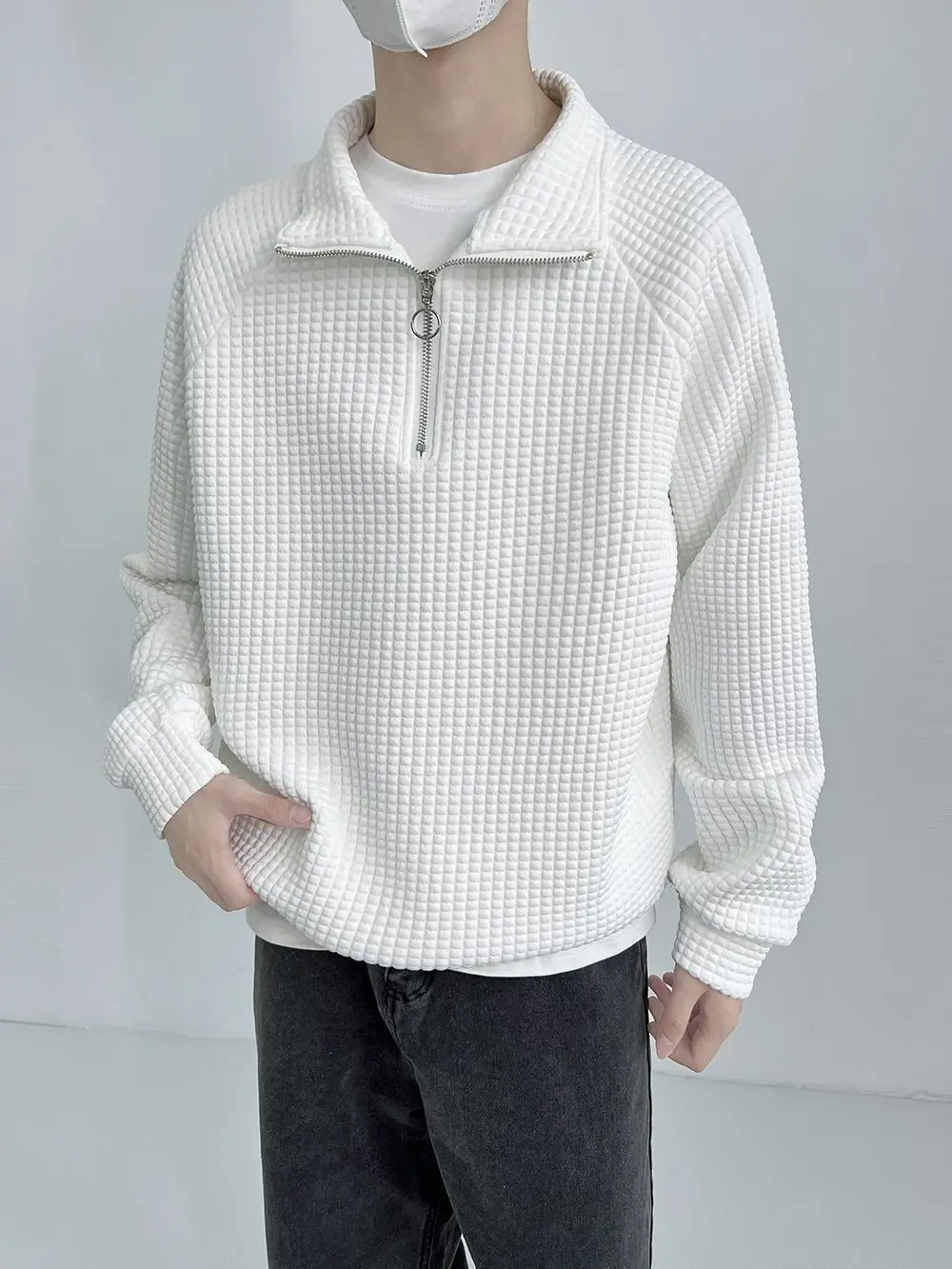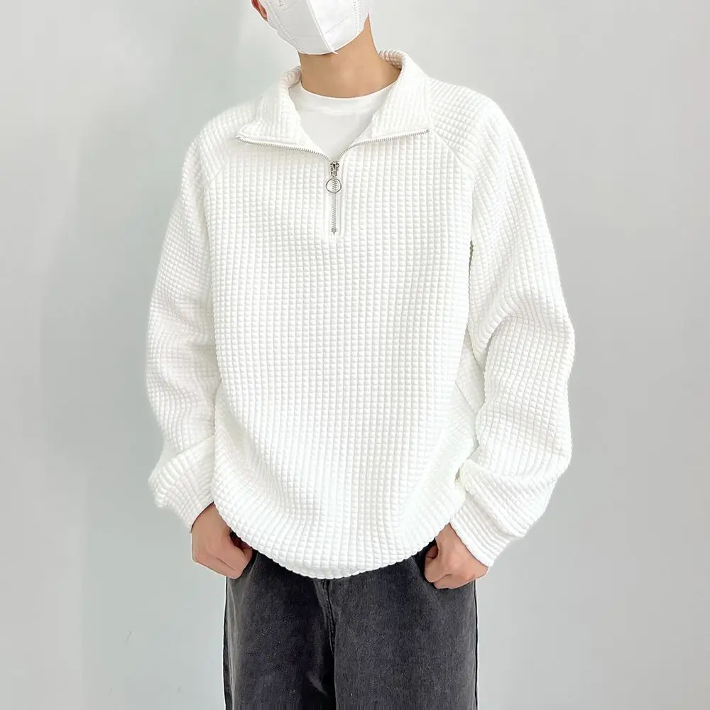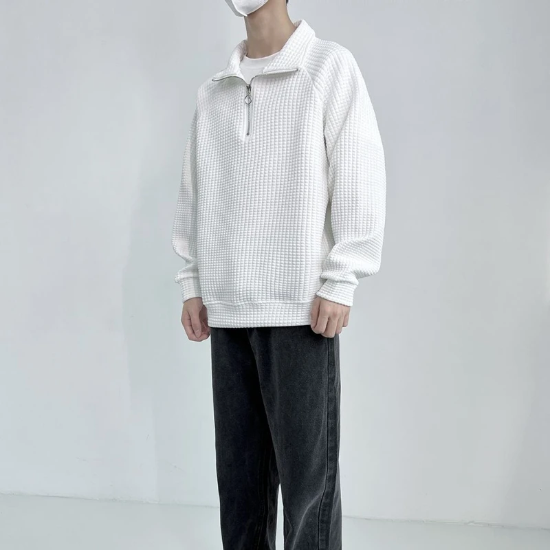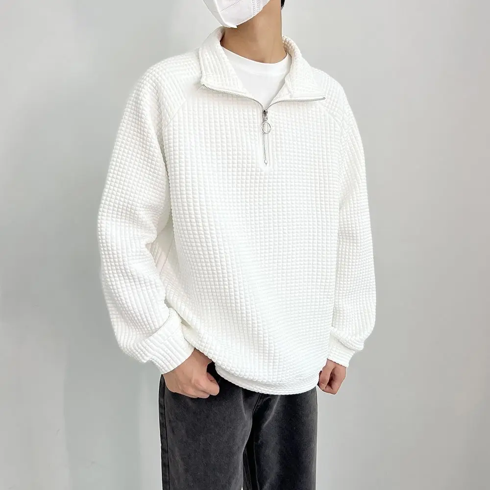 • Male Clothes Hoodieless Half Zip Top Sweatshirt for Men Solid Pullover Black Overfit No Brand Cotton Designer Sweat Shirt Winter