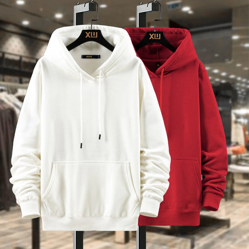 • Sweatshirts for Man Fleeced Hooded Hoodies Simple Men's Clothing No Logo Blue Warm Emo Solid Cheap High Quality Harajuku Fashion