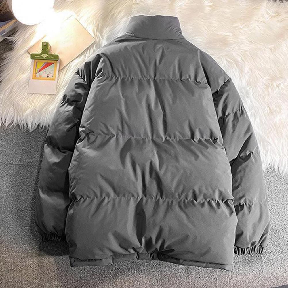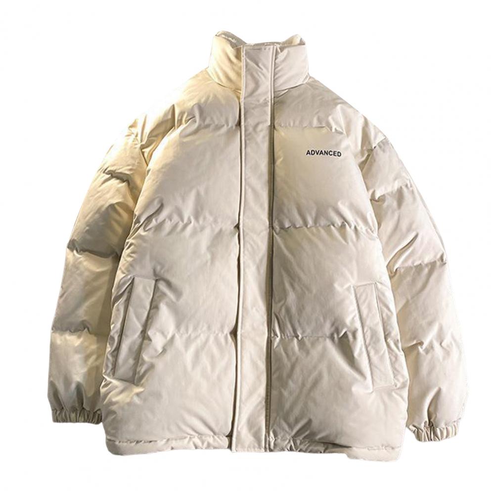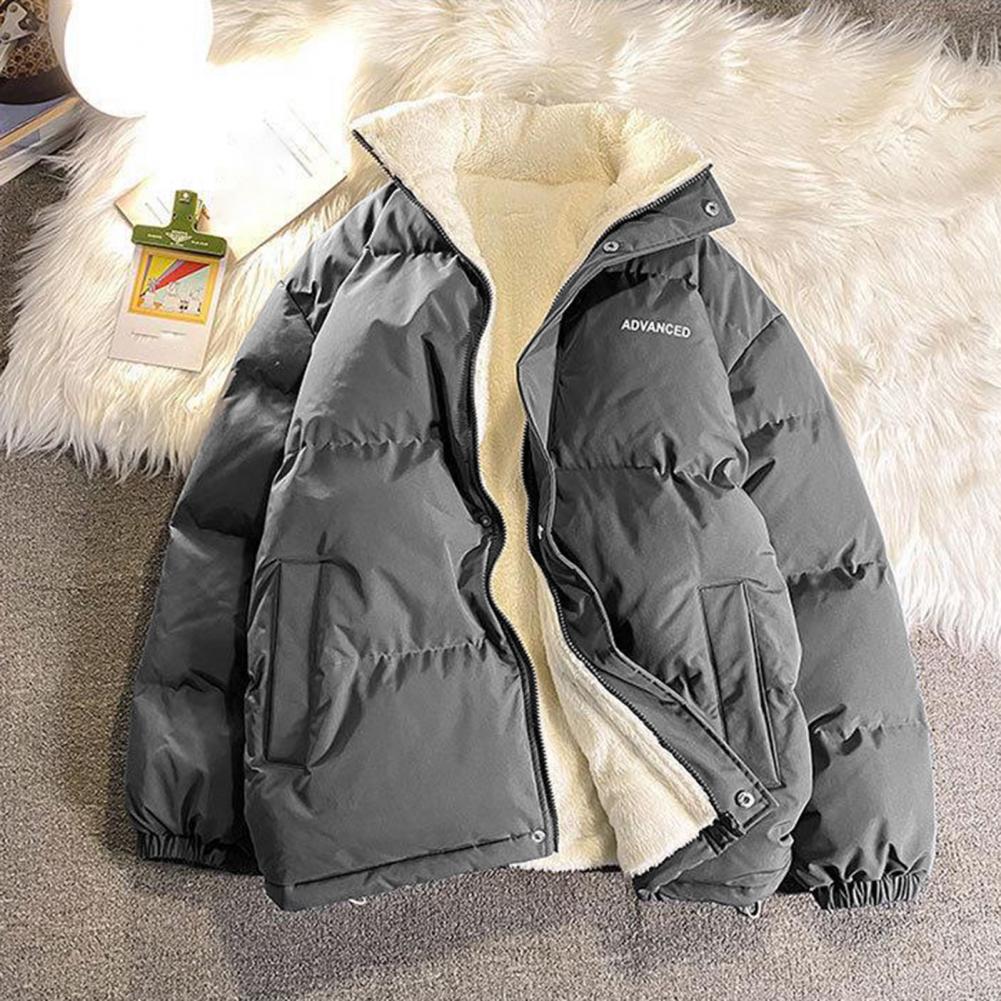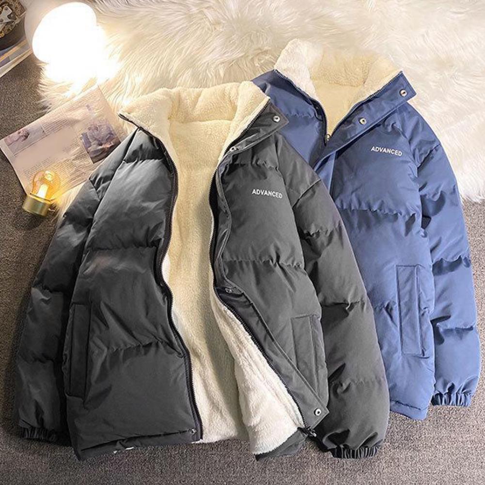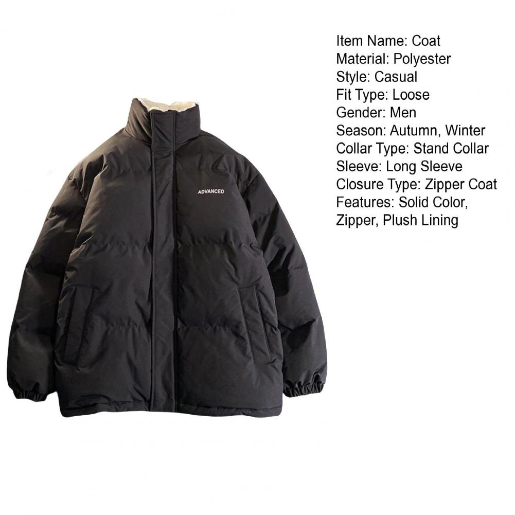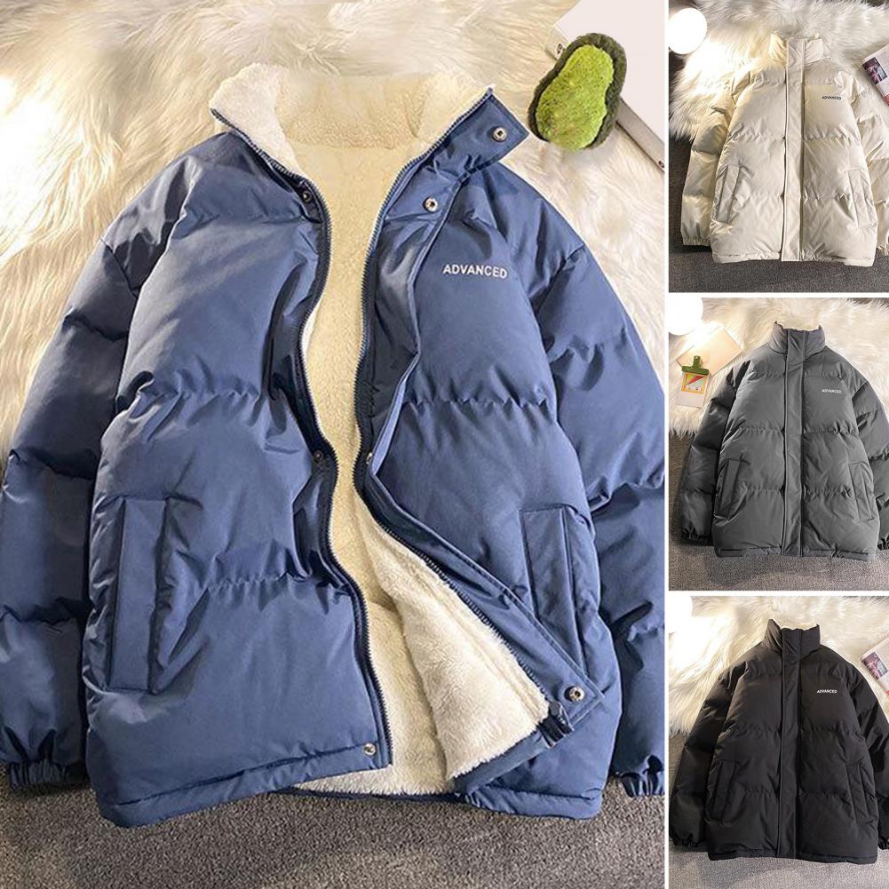 Men Jacket Cotton Padded Solid Color Zipper Windproof Autumn Winter Thicken Plush Lining Windbreaker Overcoat for Working