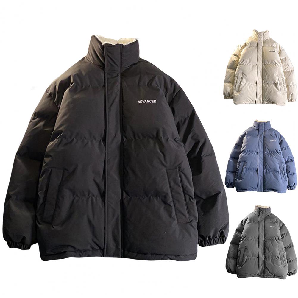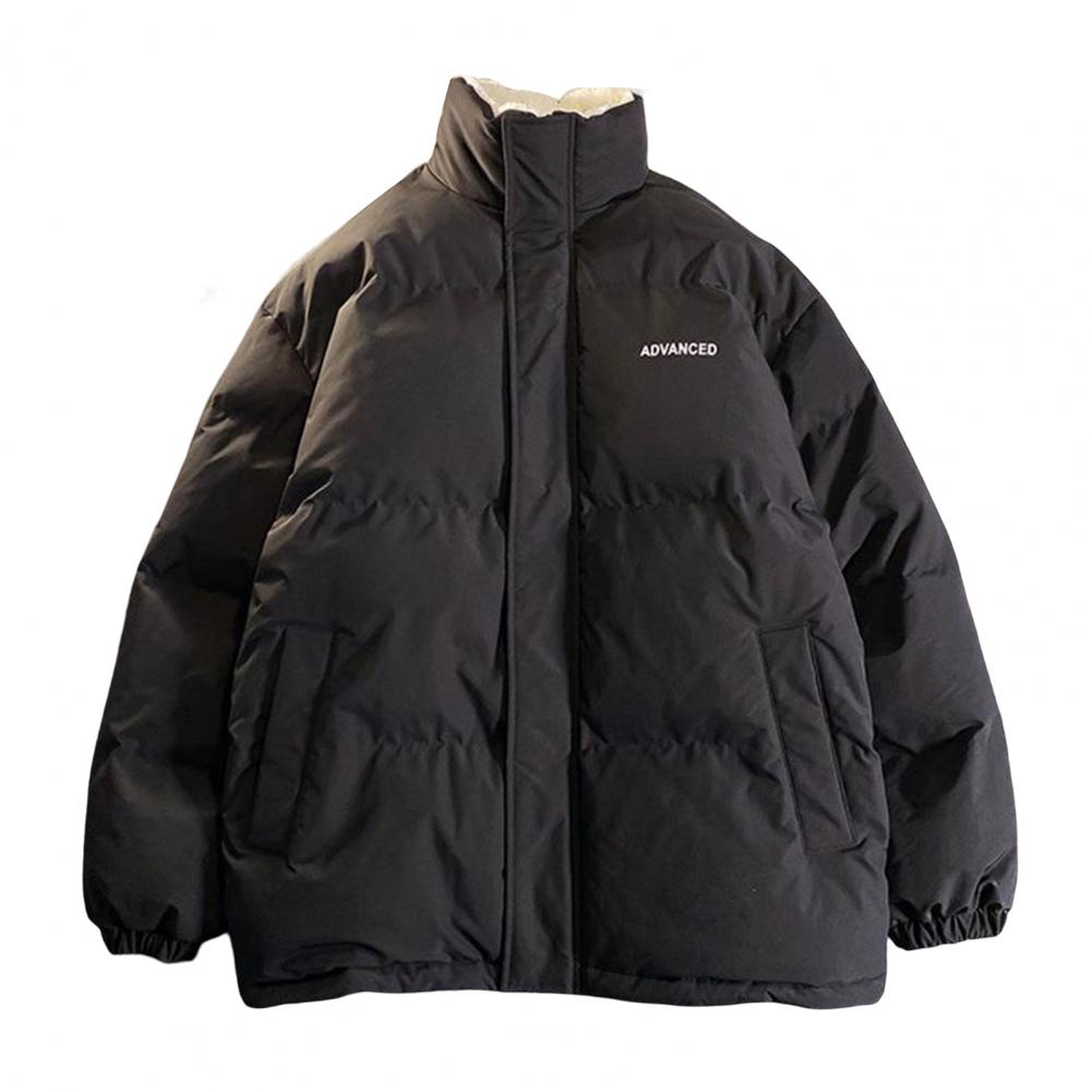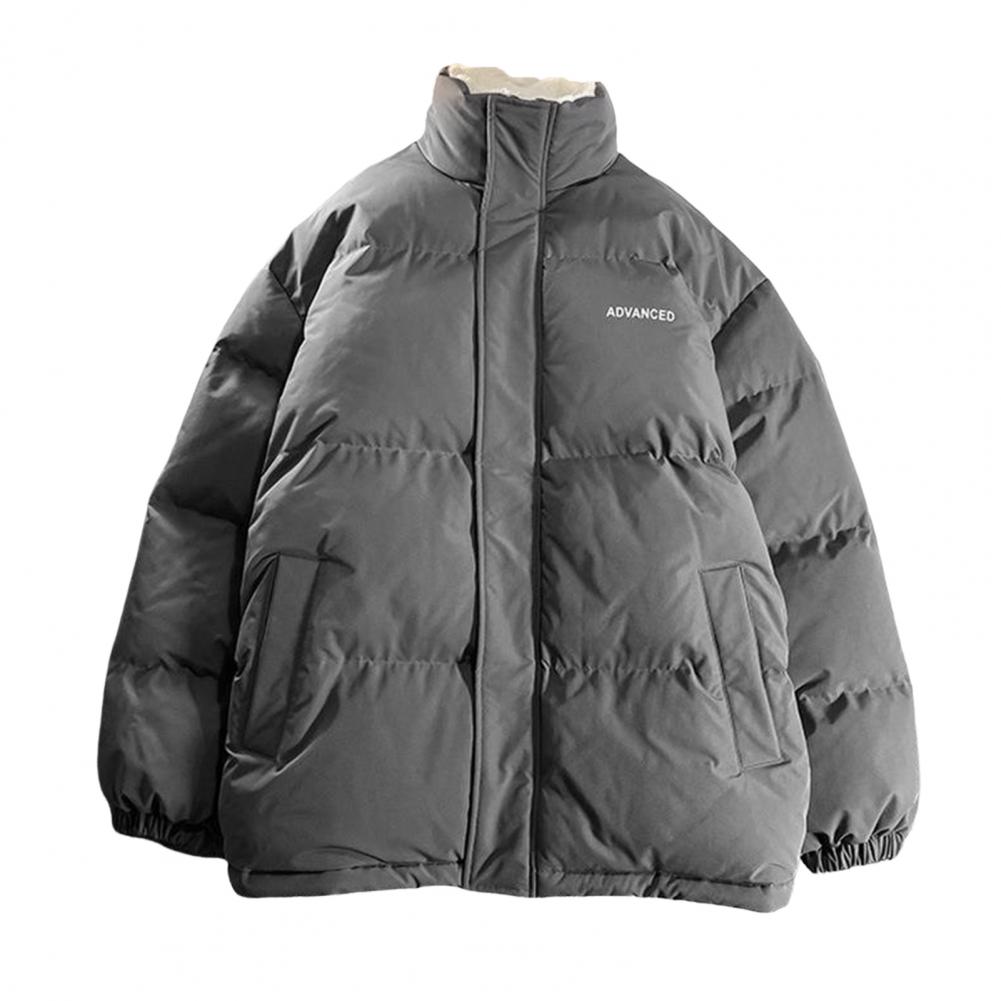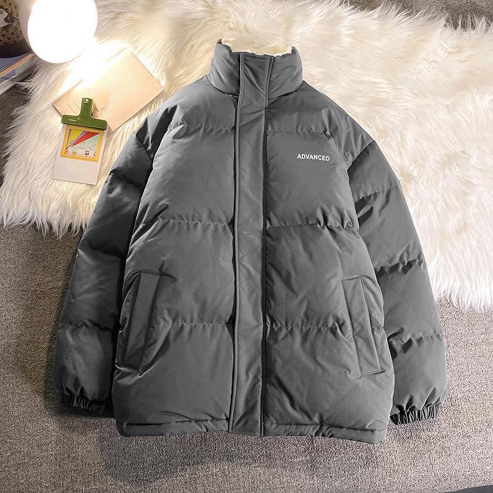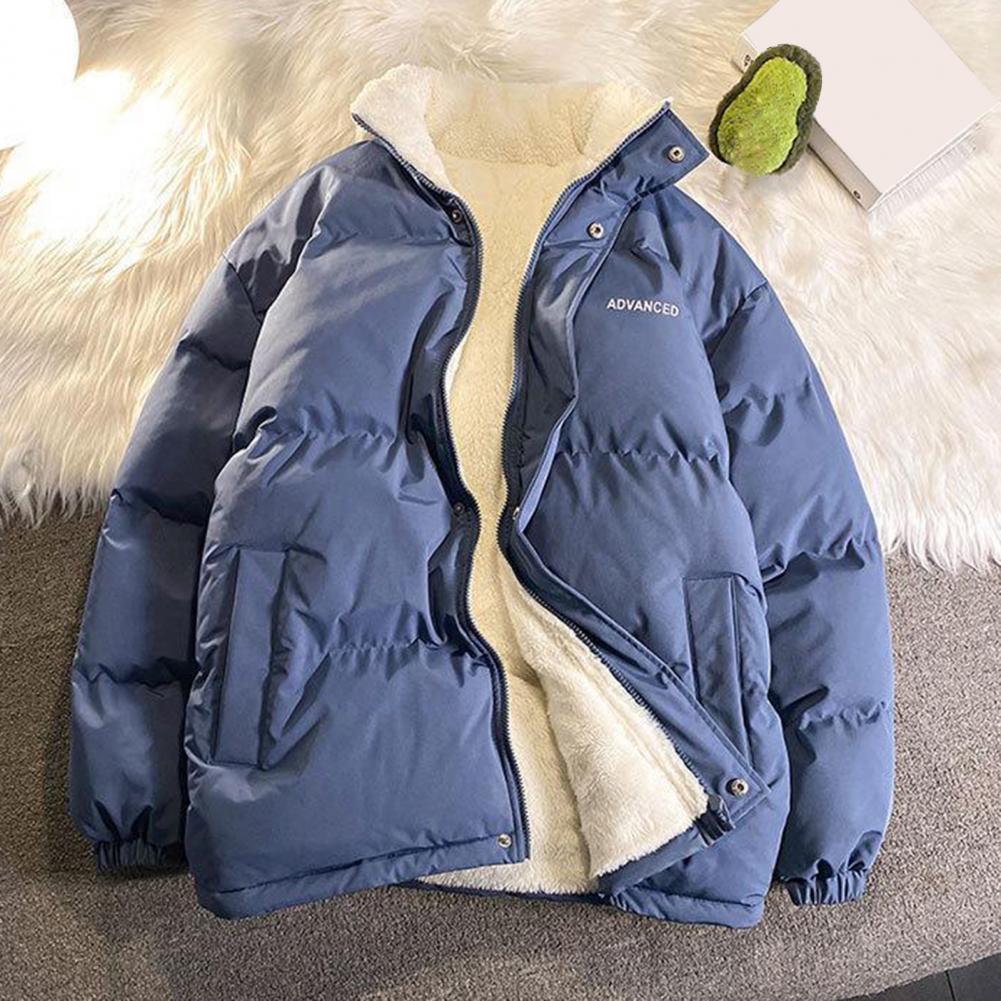 Men Jacket Cotton Padded Solid Color Zipper Windproof Autumn Winter Thicken Plush Lining Windbreaker Overcoat for Working