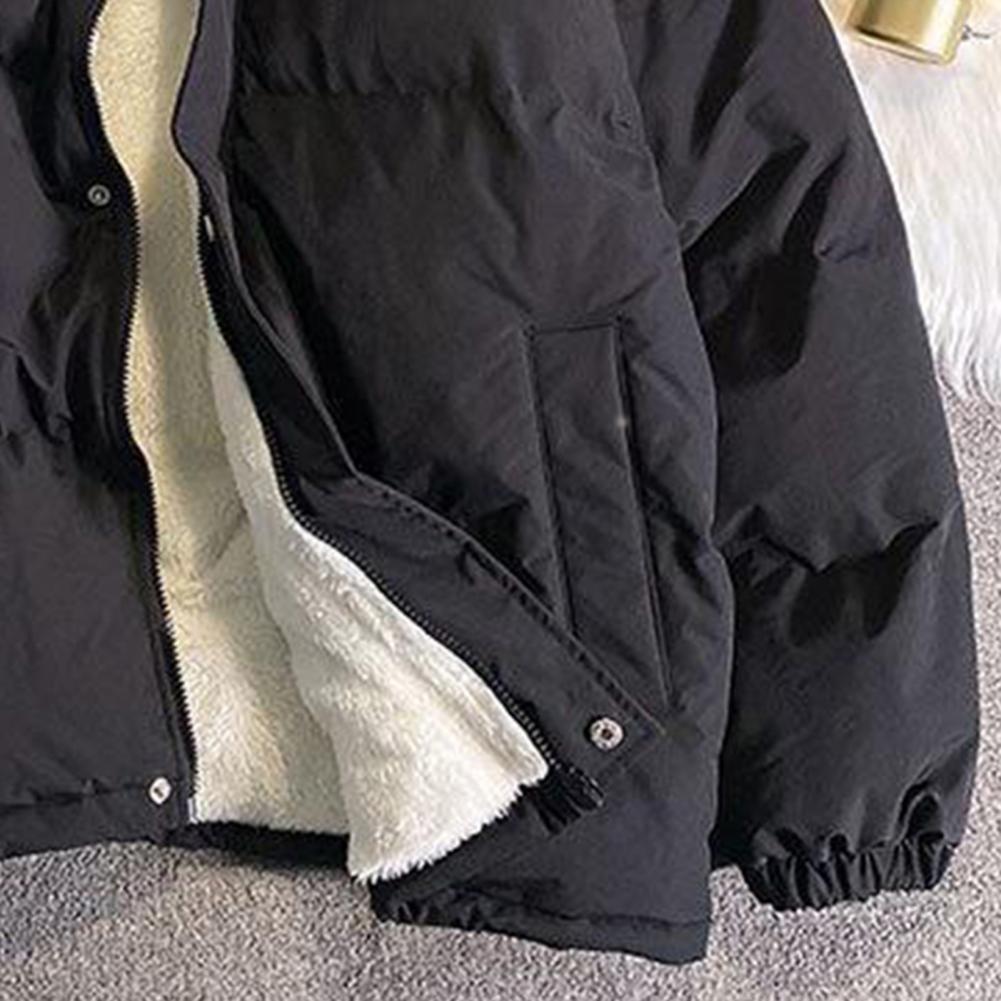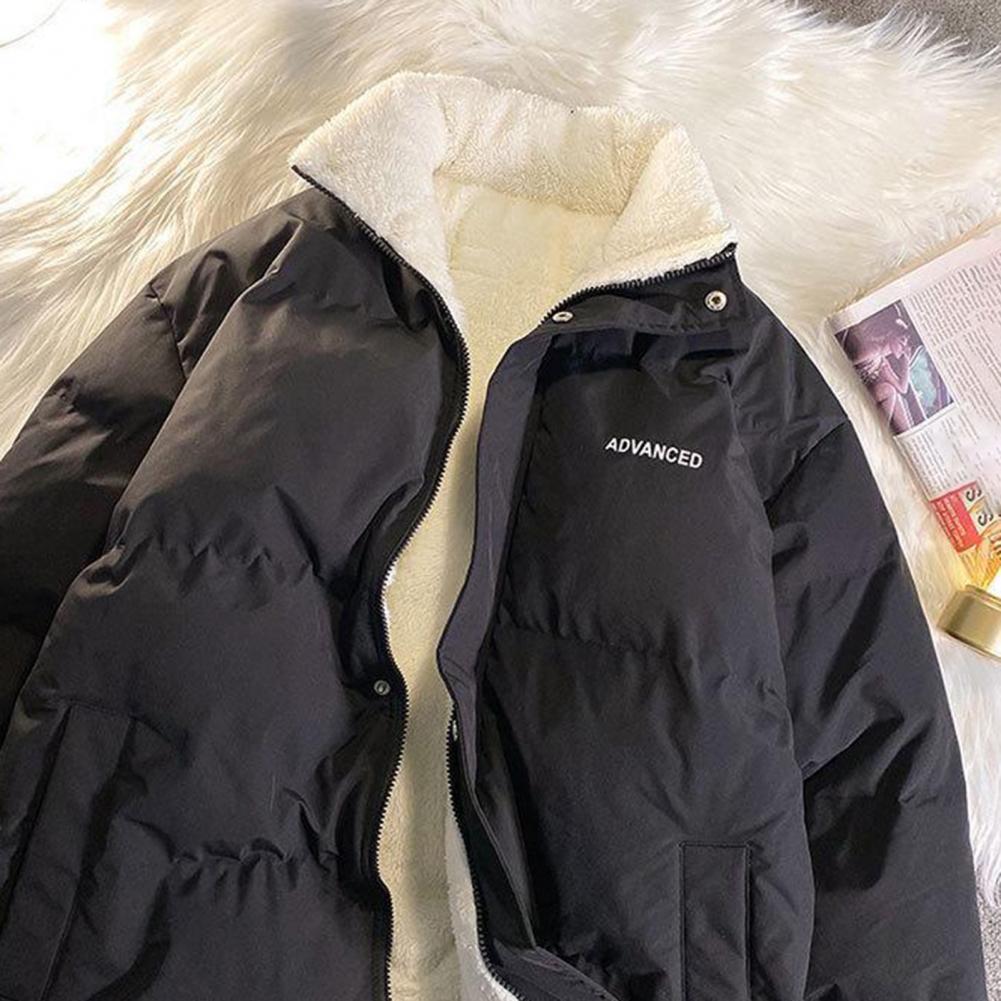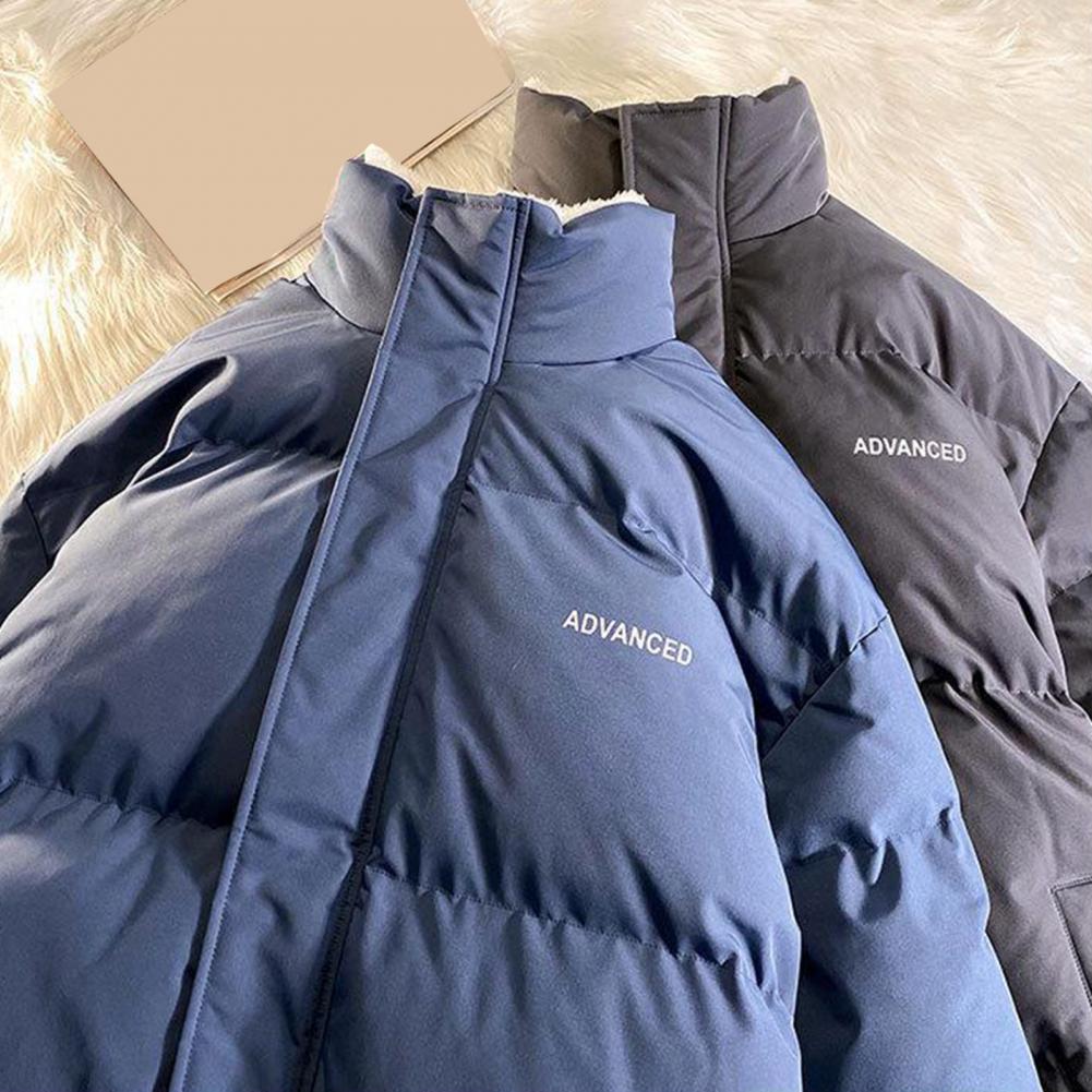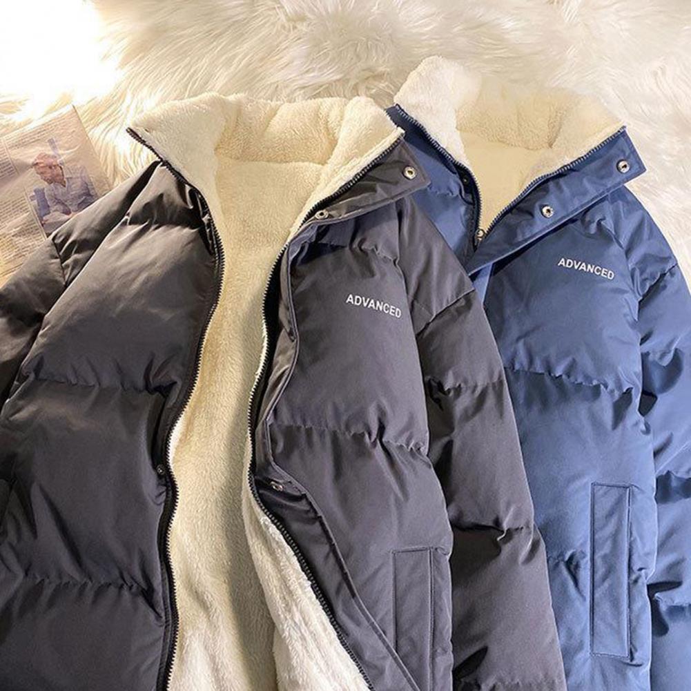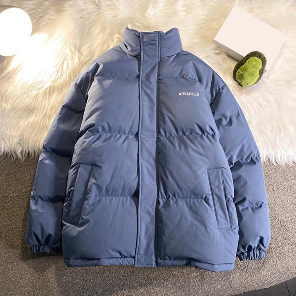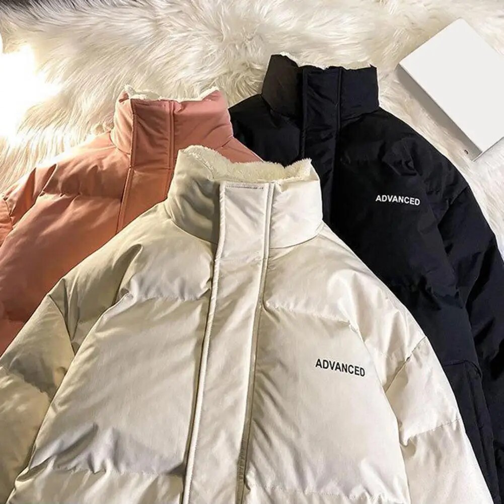 Men Jacket Cotton Padded Solid Color Zipper Windproof Autumn Winter Thicken Plush Lining Windbreaker Overcoat for Working