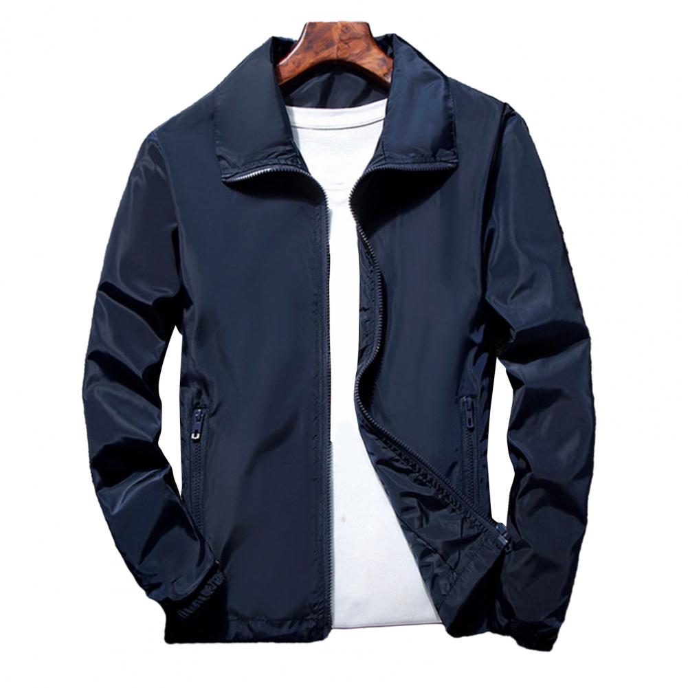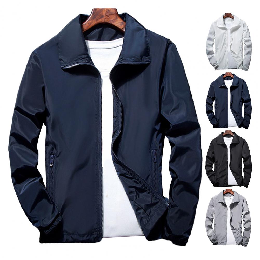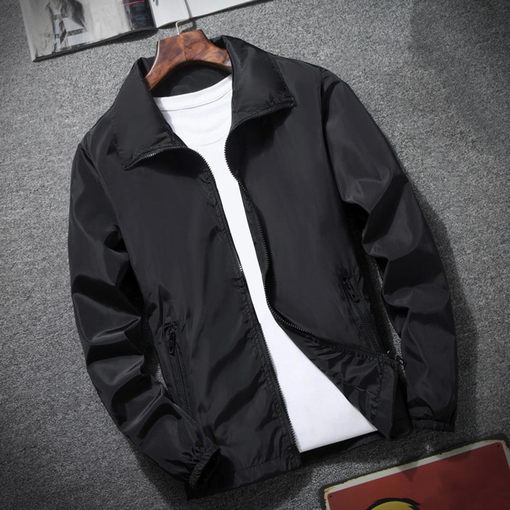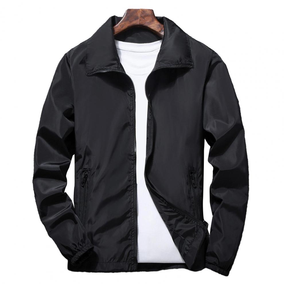 Men Outdoor Windbreaker Lapel Long Sleeve Solid Color Jacket Pockets Zipper Placket Spring Autumn Coat