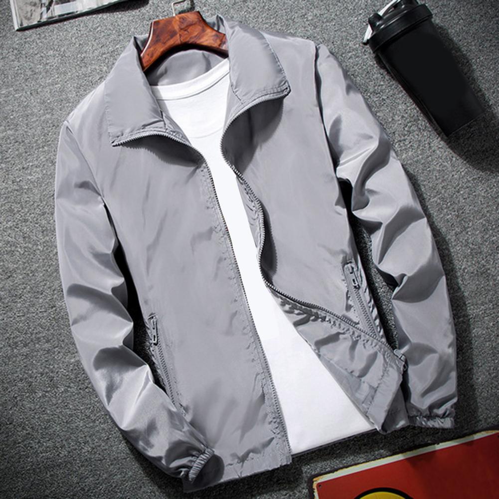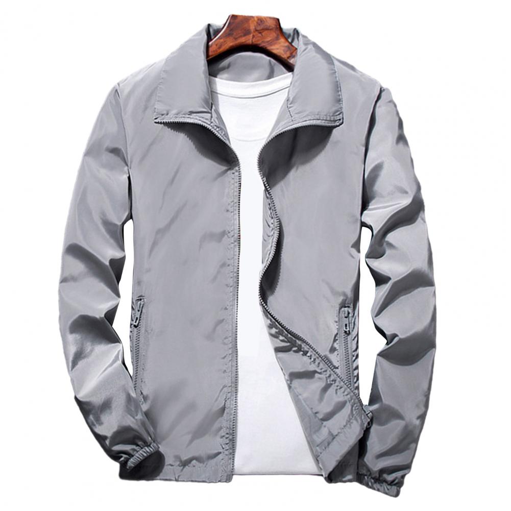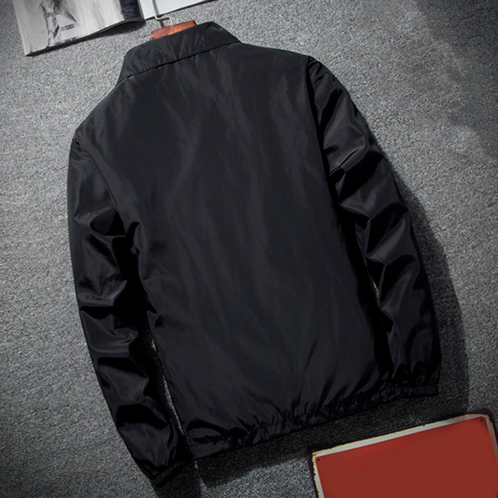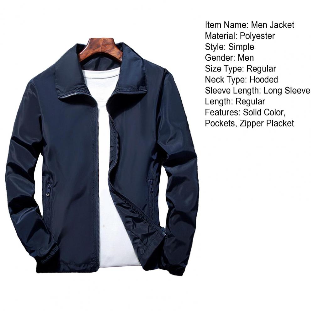 Men Outdoor Windbreaker Lapel Long Sleeve Solid Color Jacket Pockets Zipper Placket Spring Autumn Coat
