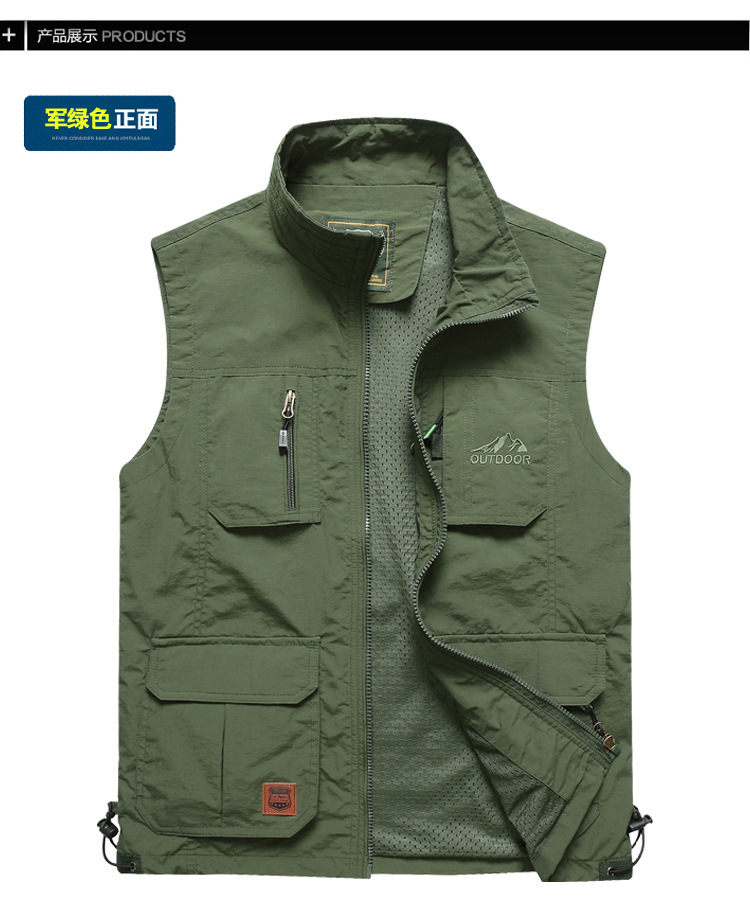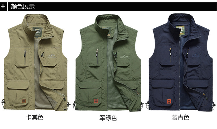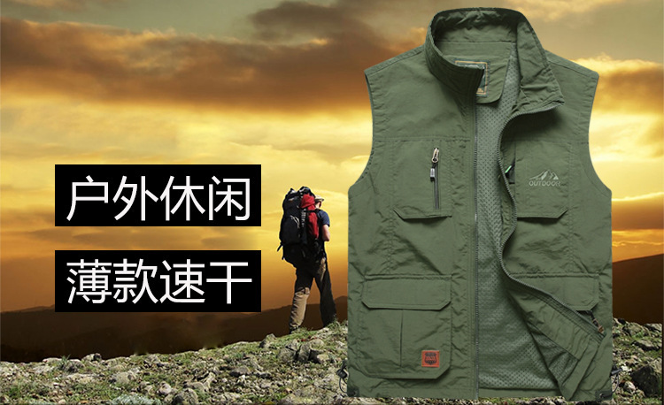 男士速干背心薄款钓鱼马甲大码摄影背心春秋季多口袋网眼休闲坎肩