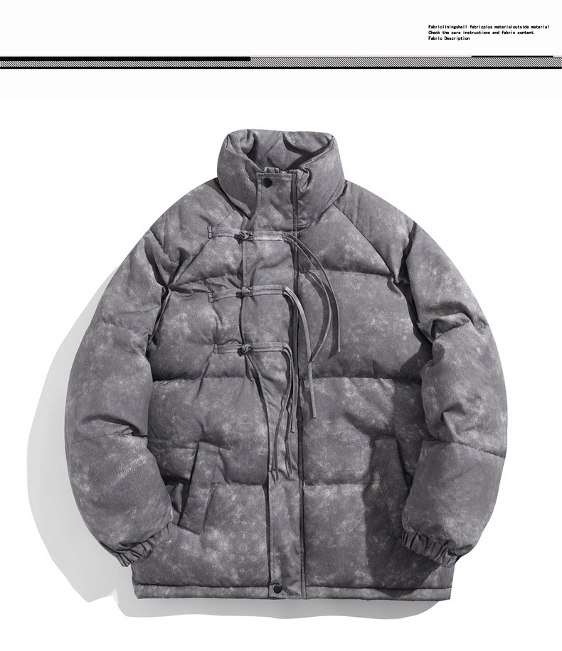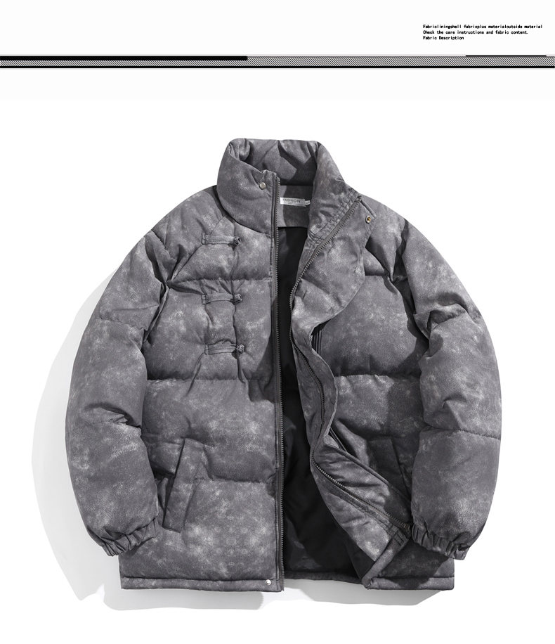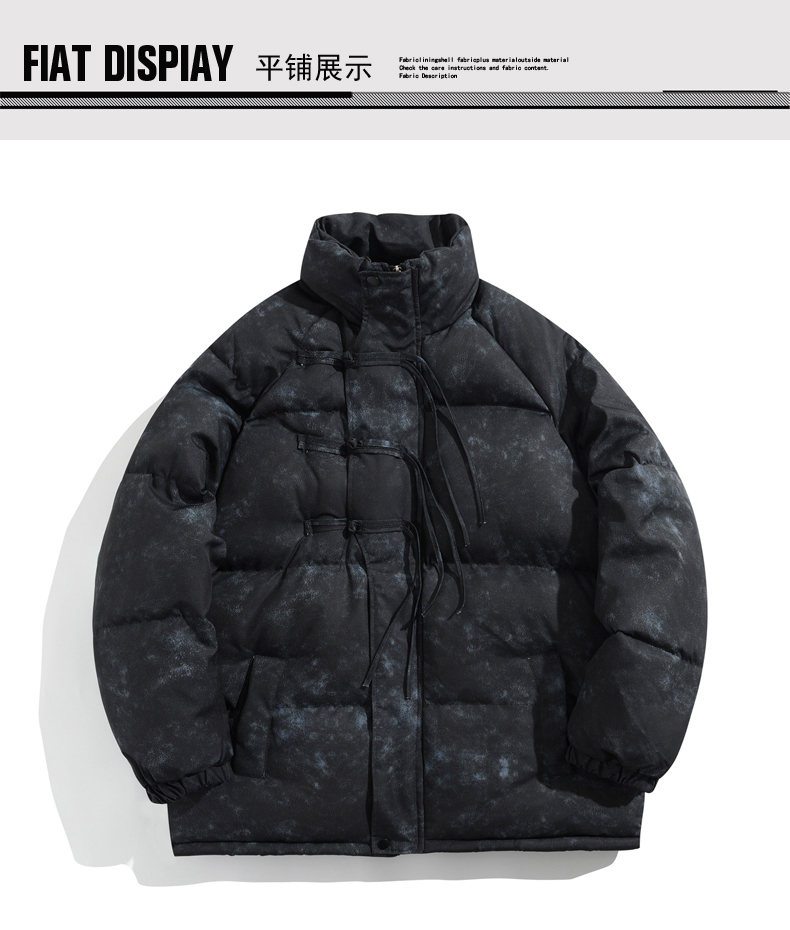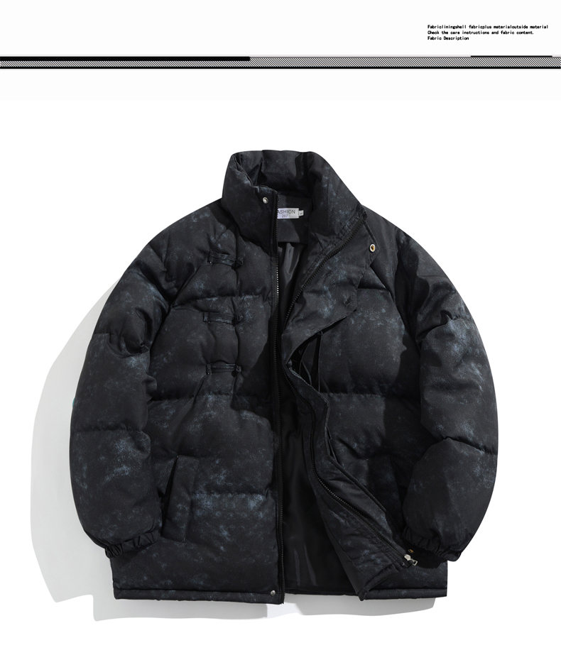 • Mens Winter Chinese Retro Down Jackets Men Loose Stand Collar Print Down Cotton Coats Street Outdoor Thicken Warm Parkas Outwear