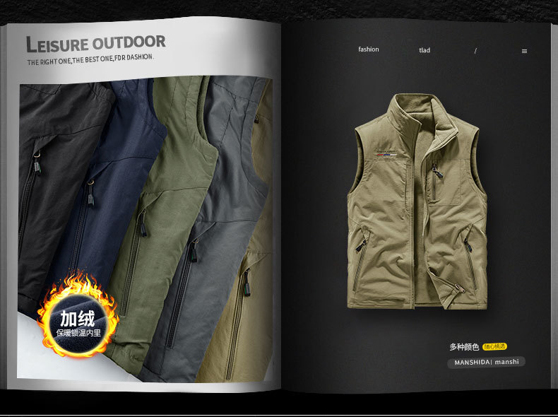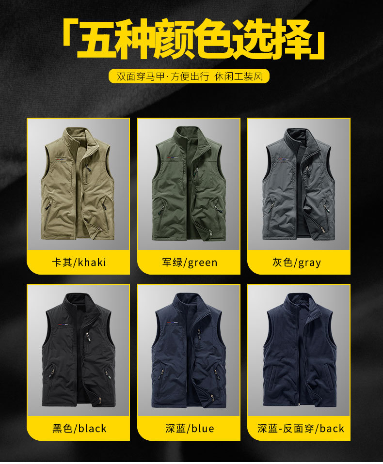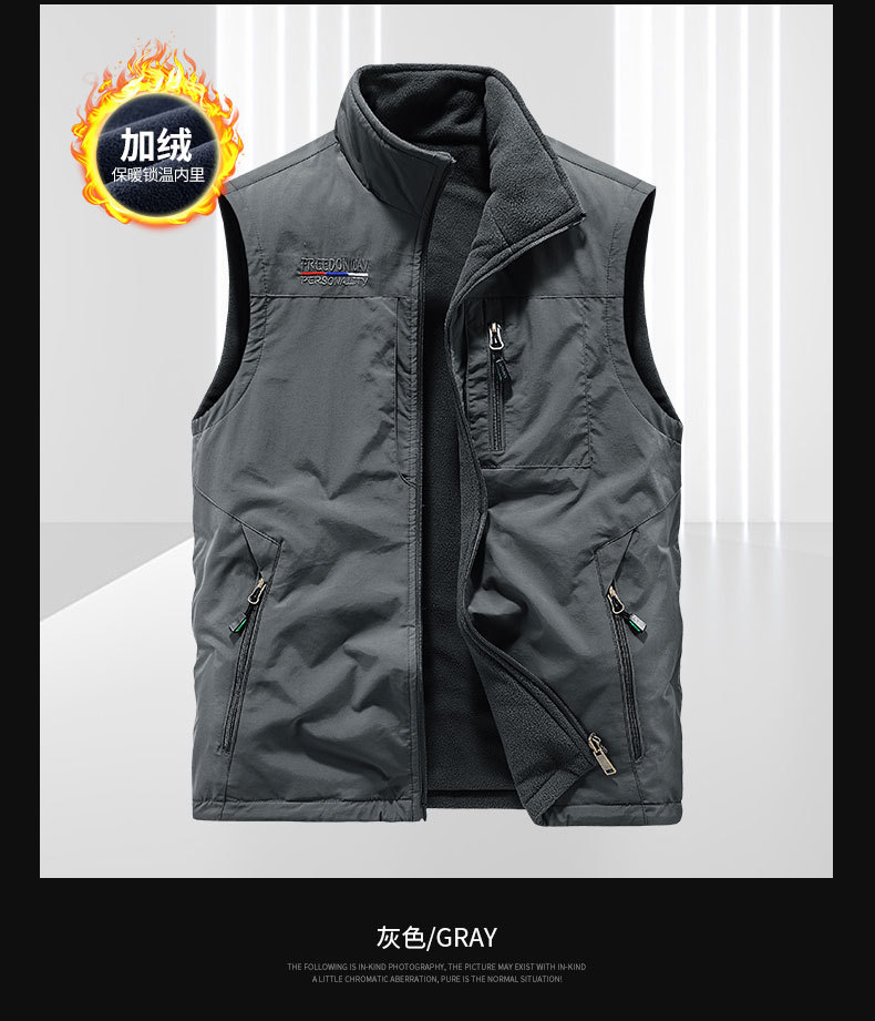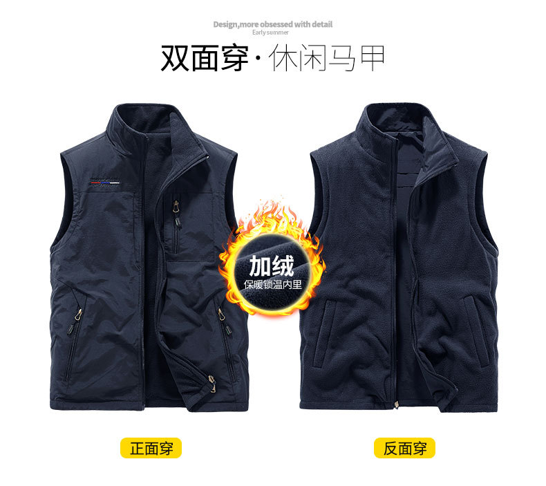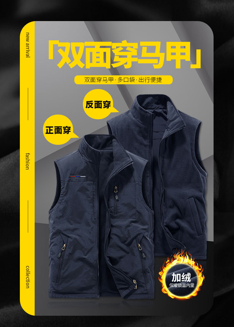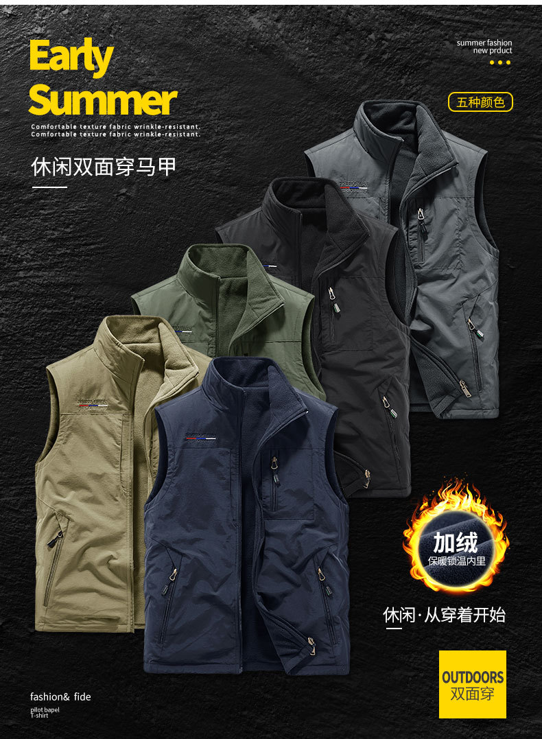 秋冬双面穿马甲男士户外运动抓绒背心摇粒绒坎肩加绒马夹无袖外套