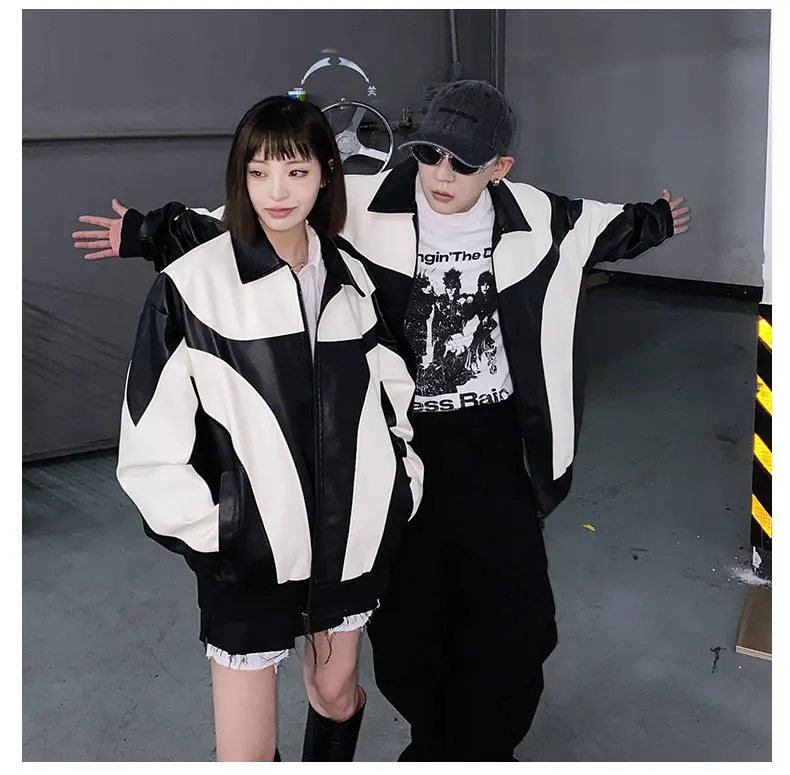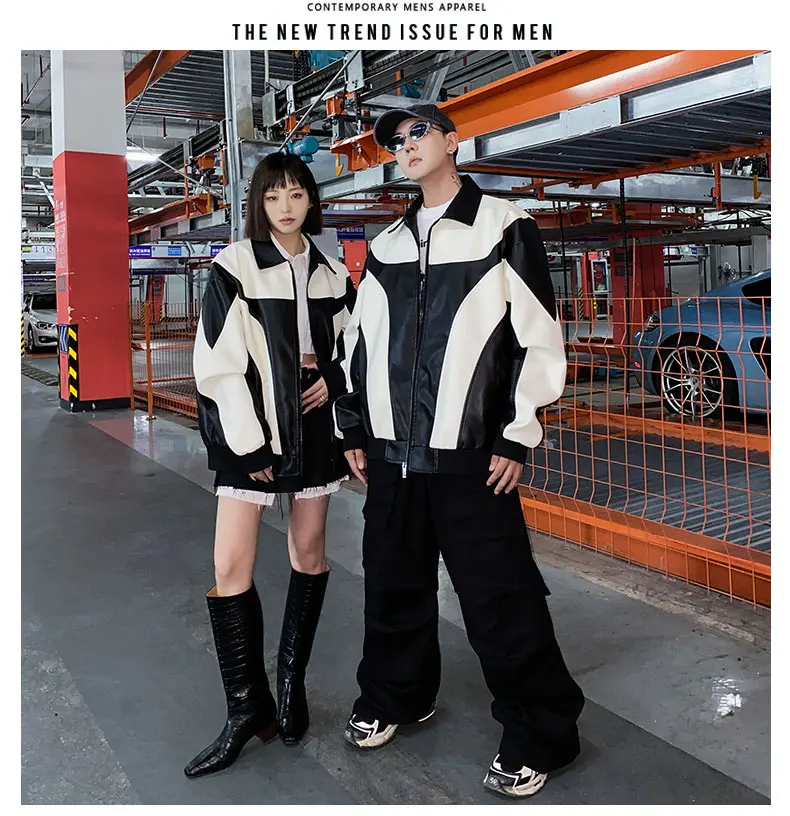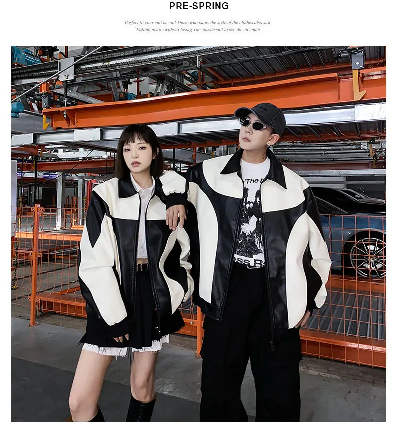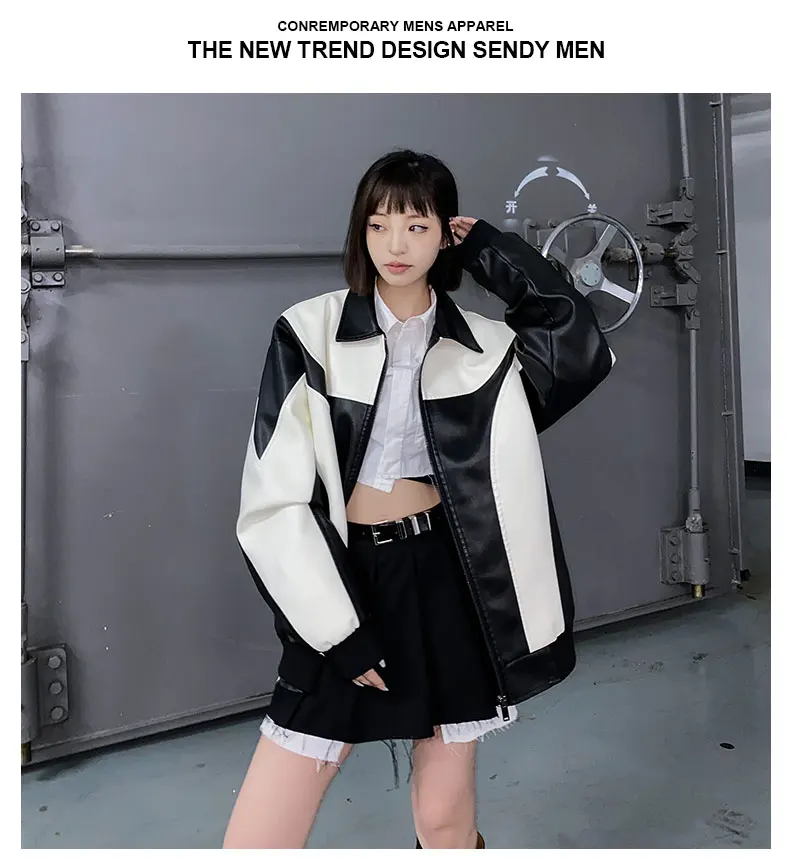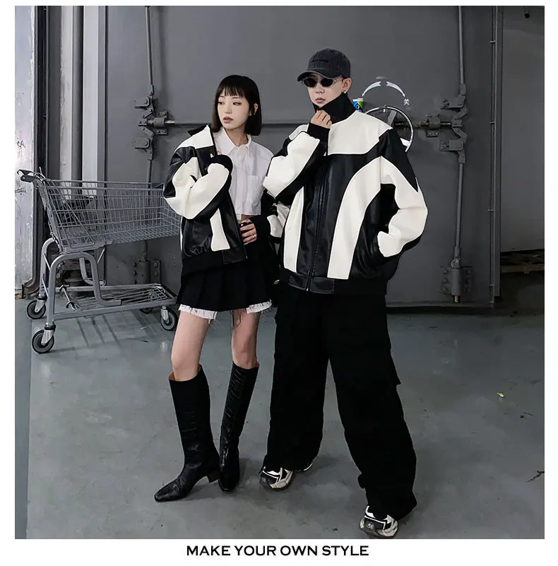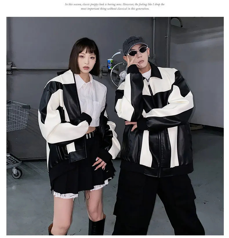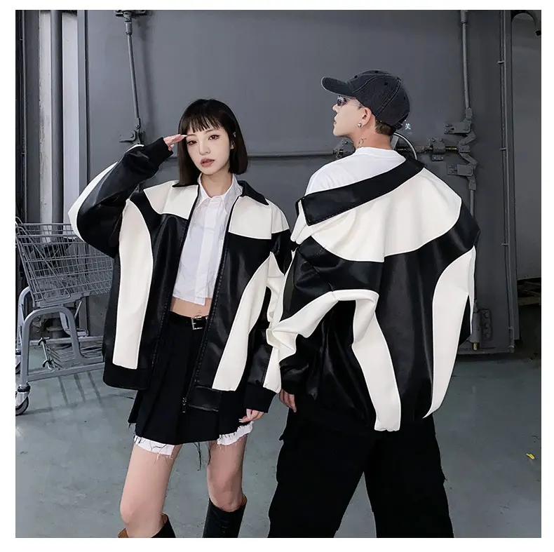 • Mens Women Autumn Winter Leather Jackets Men Casual Loose Motorcycle PU Leather Baseball Coat Street Hip Hop Punk Couple Outwear