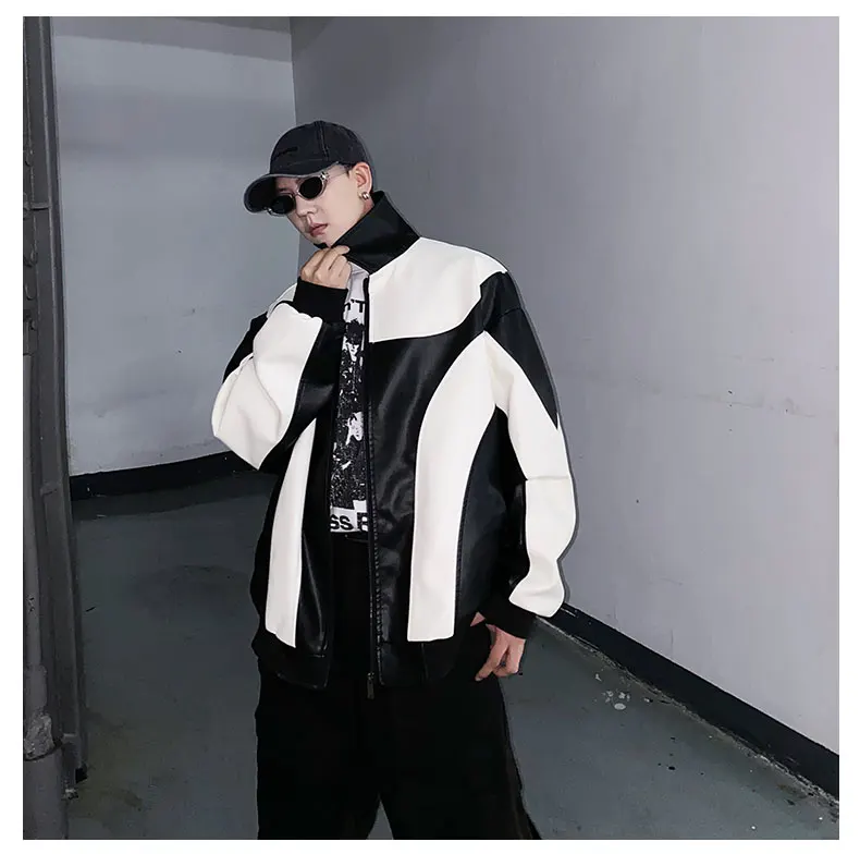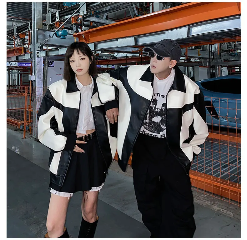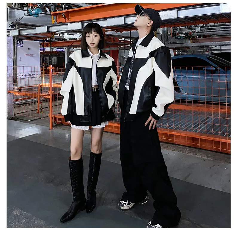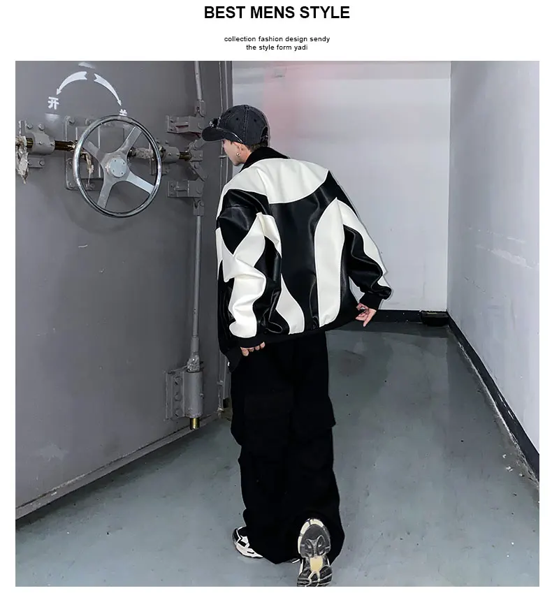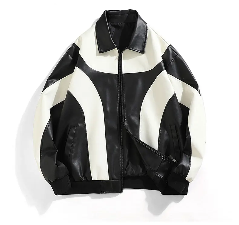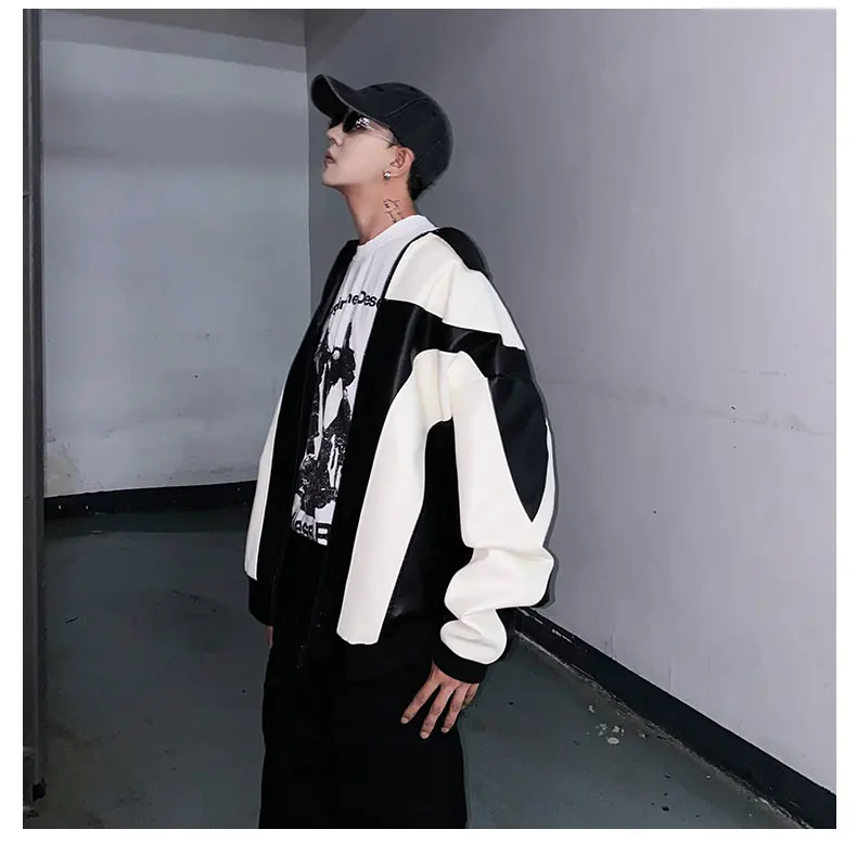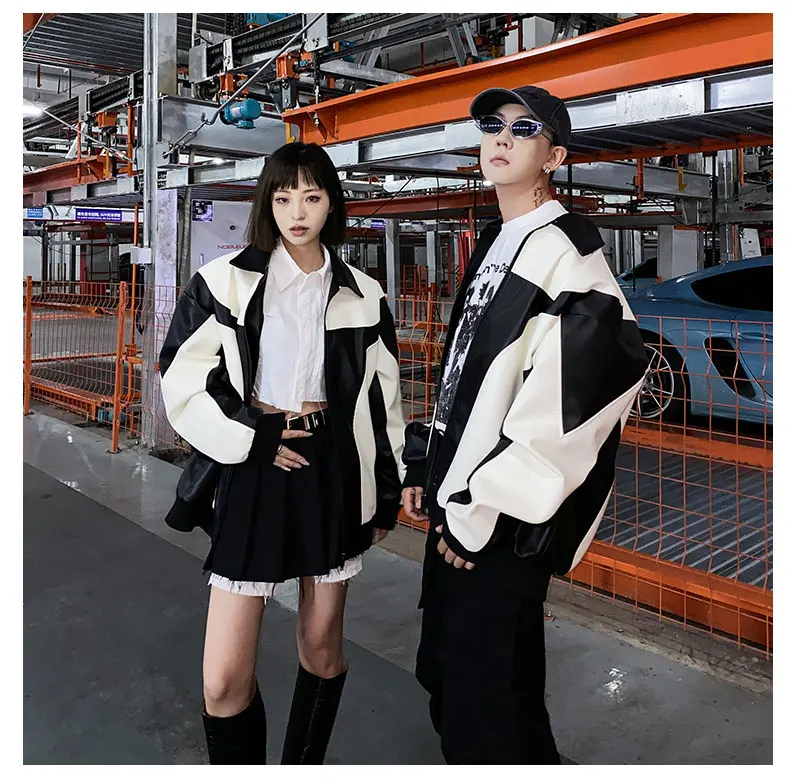 • Mens Women Autumn Winter Leather Jackets Men Casual Loose Motorcycle PU Leather Baseball Coat Street Hip Hop Punk Couple Outwear