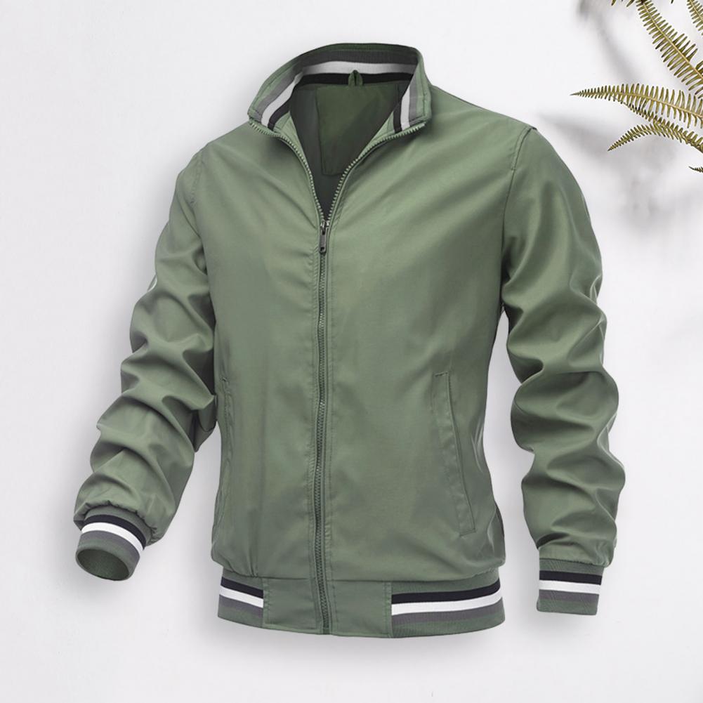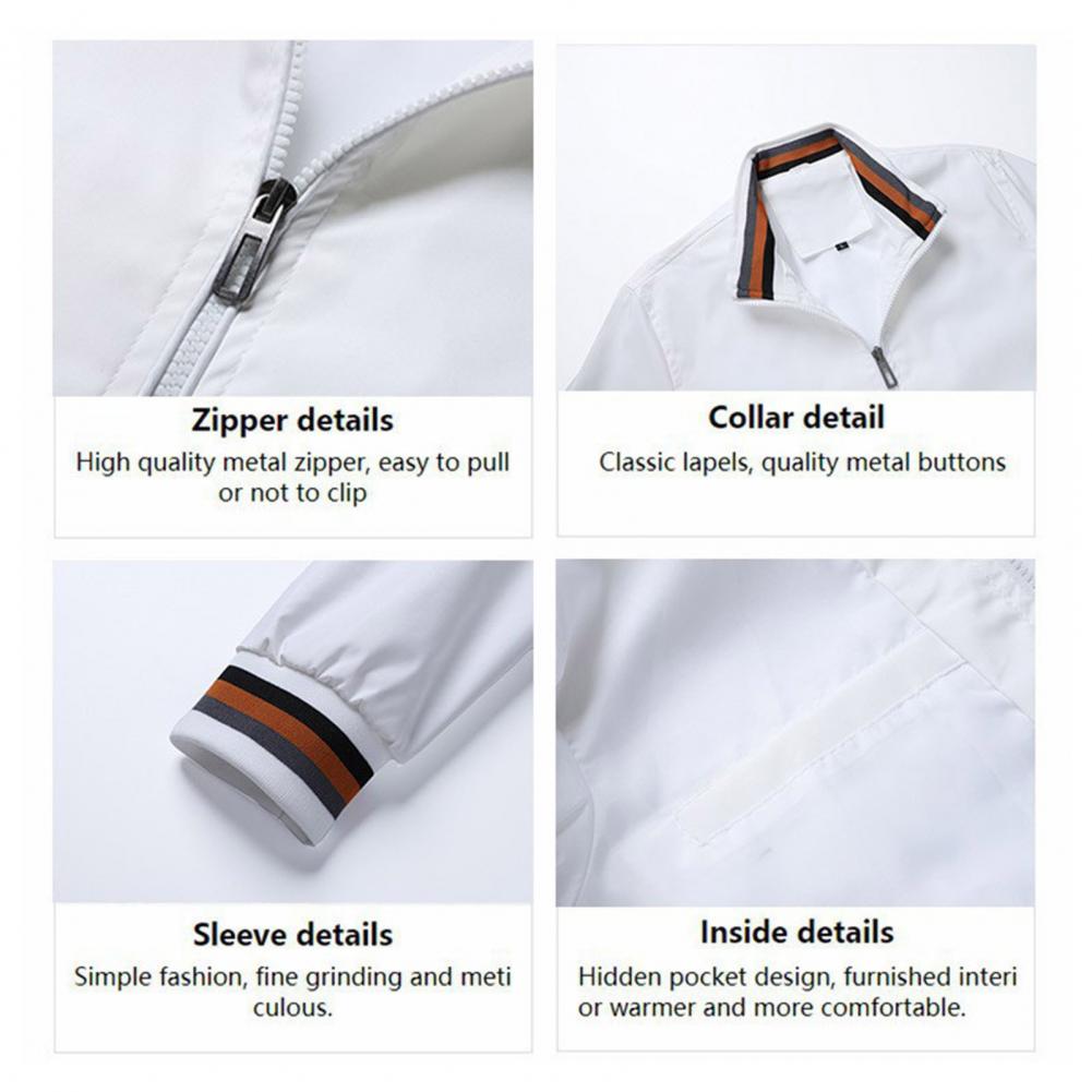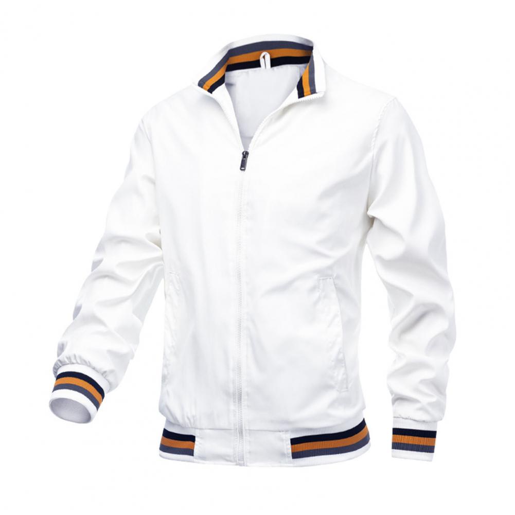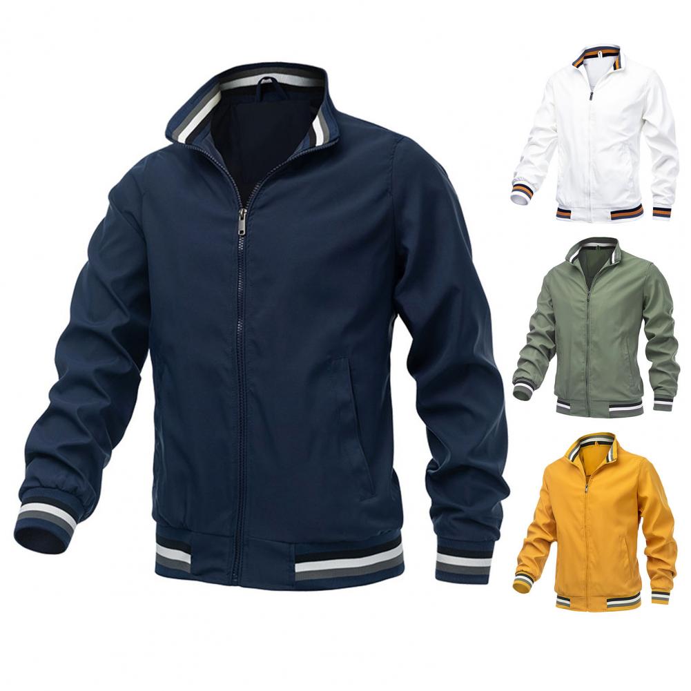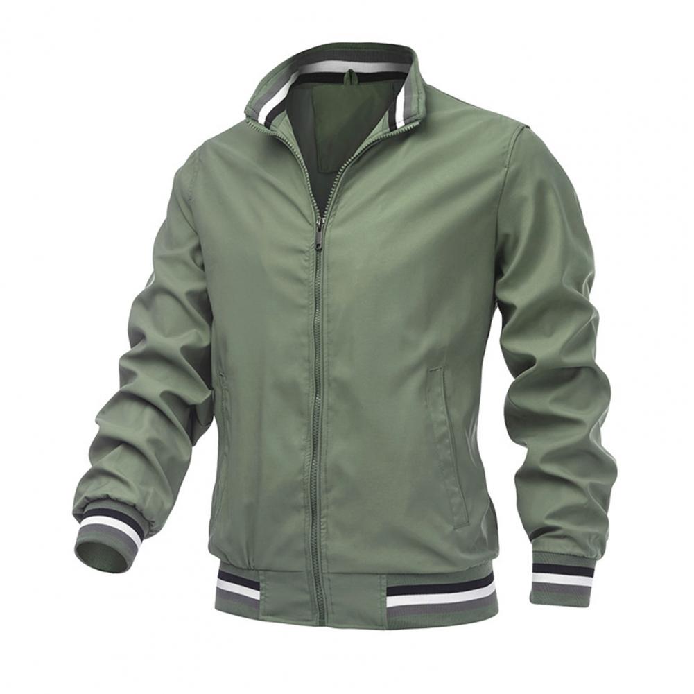 Spring Autumn Men Solid Color Windbreaker Stand Collar Long Sleeve Casual Jacket Side Pockets Zipper Placket Sports Coat