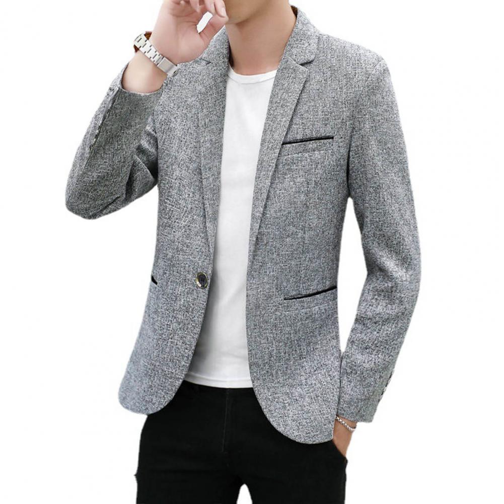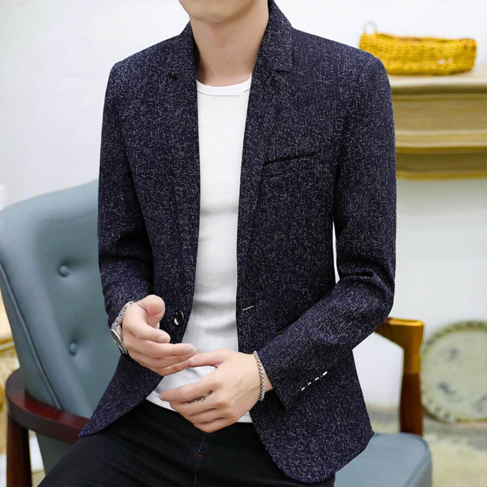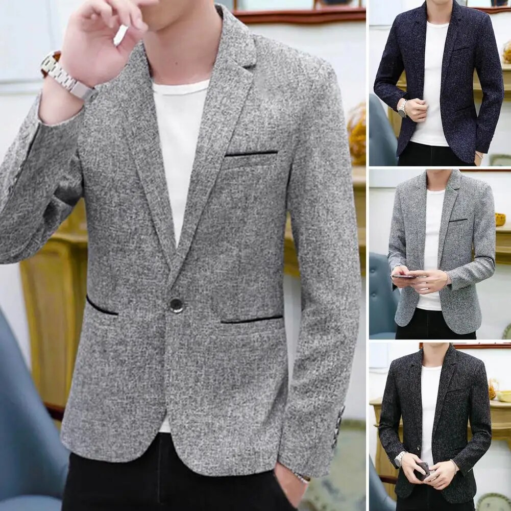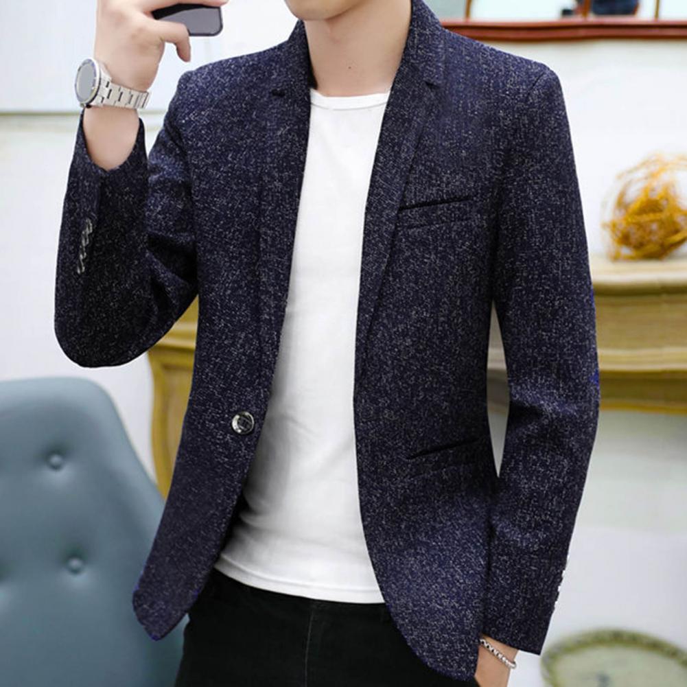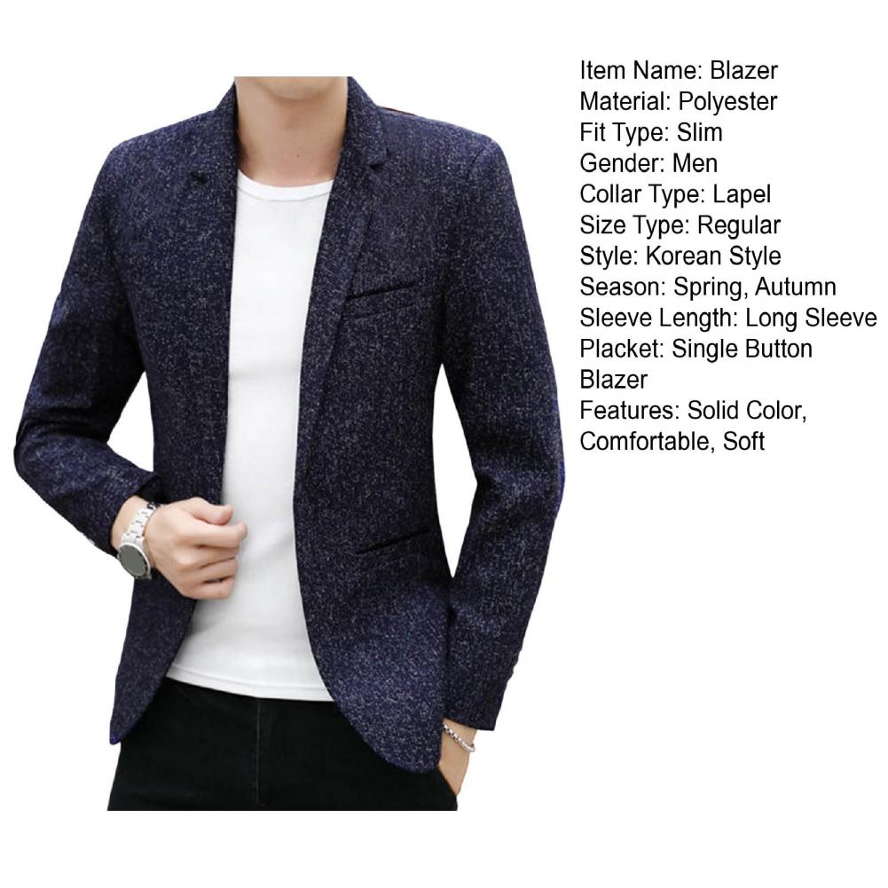 Spring Autumn Men Blazer Solid Color Turndown Collar One Button Slim Fit Korean Style Suit Jacket Streetwear