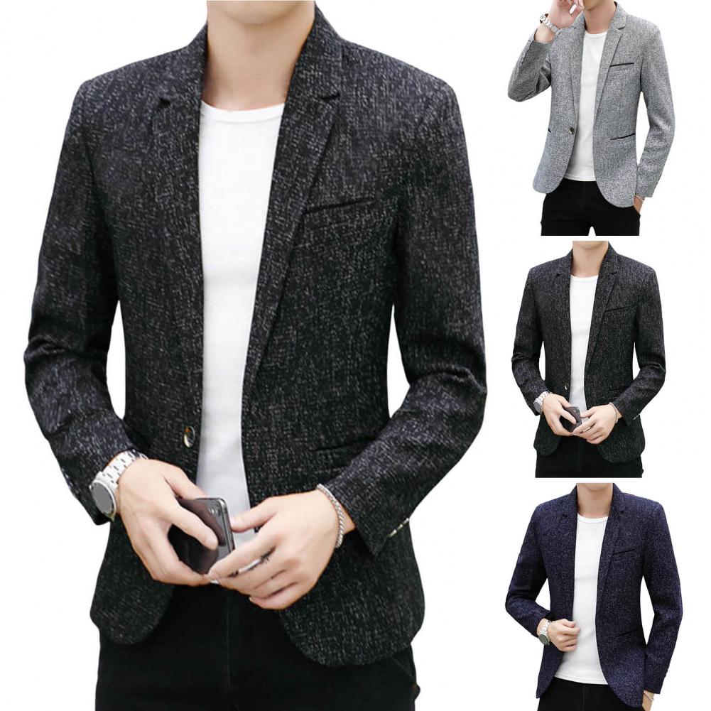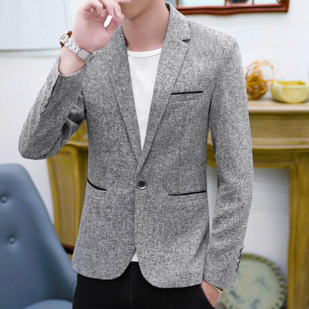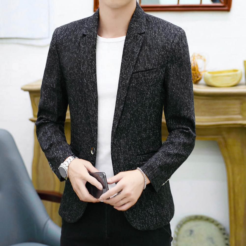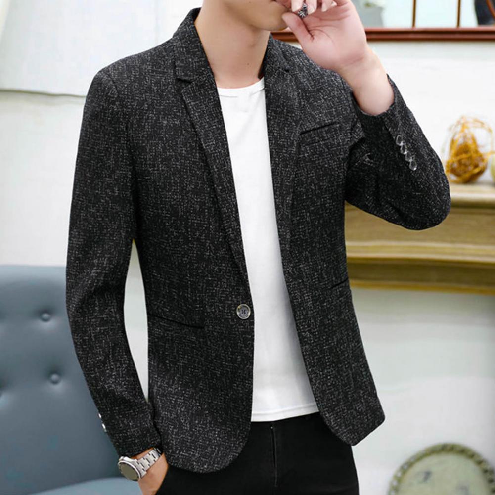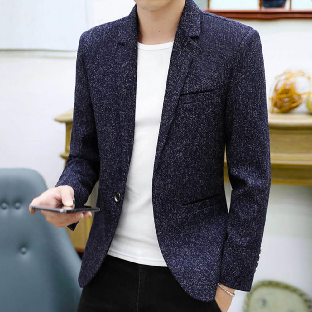 Spring Autumn Men Blazer Solid Color Turndown Collar One Button Slim Fit Korean Style Suit Jacket Streetwear